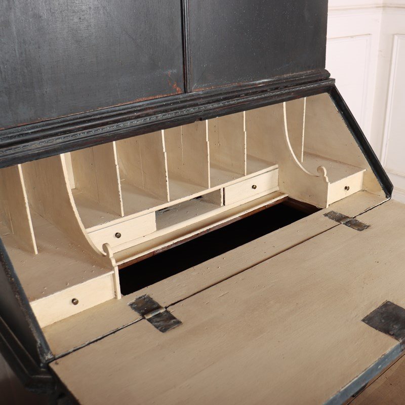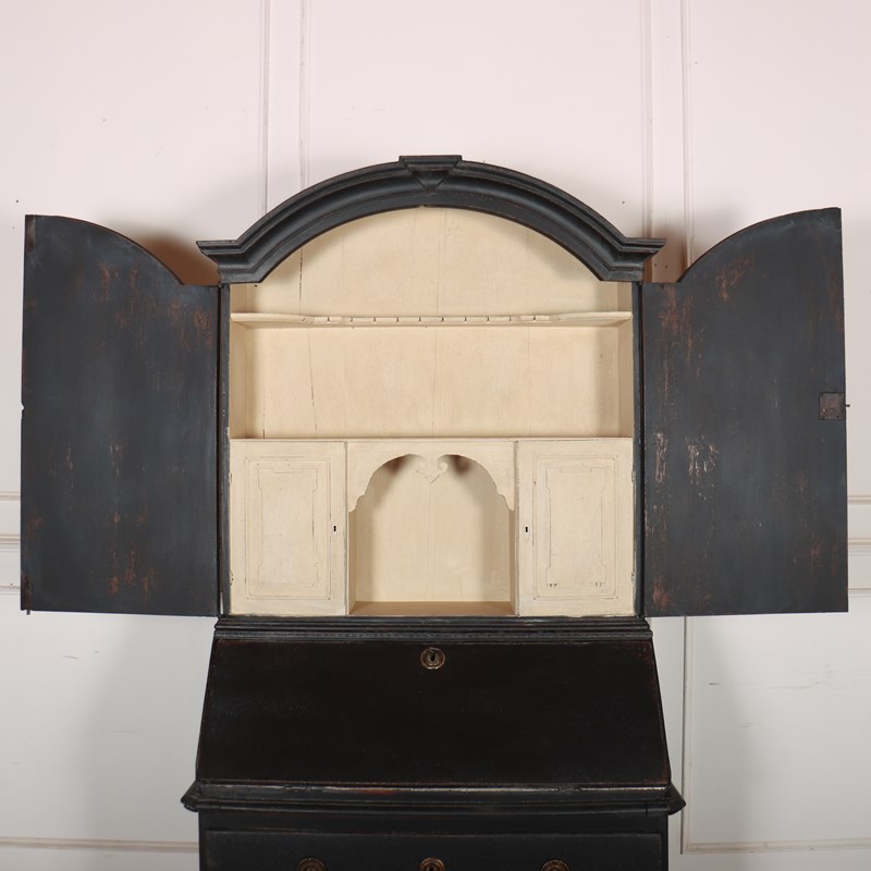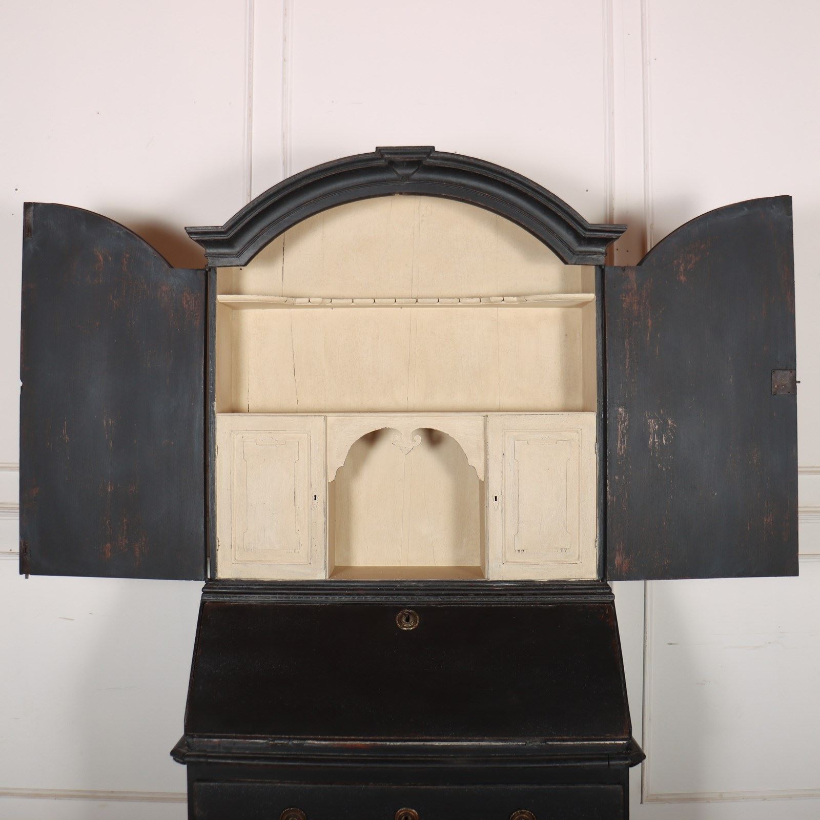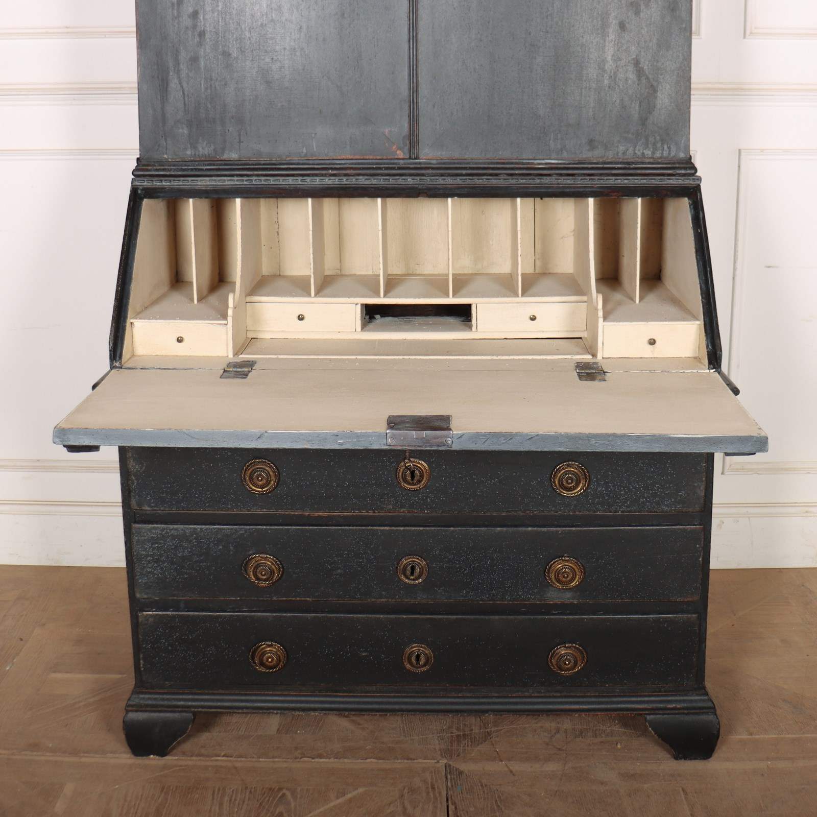 Early 19th century Swedish painted oak bureau bookcase with a fitted interior. 1830.