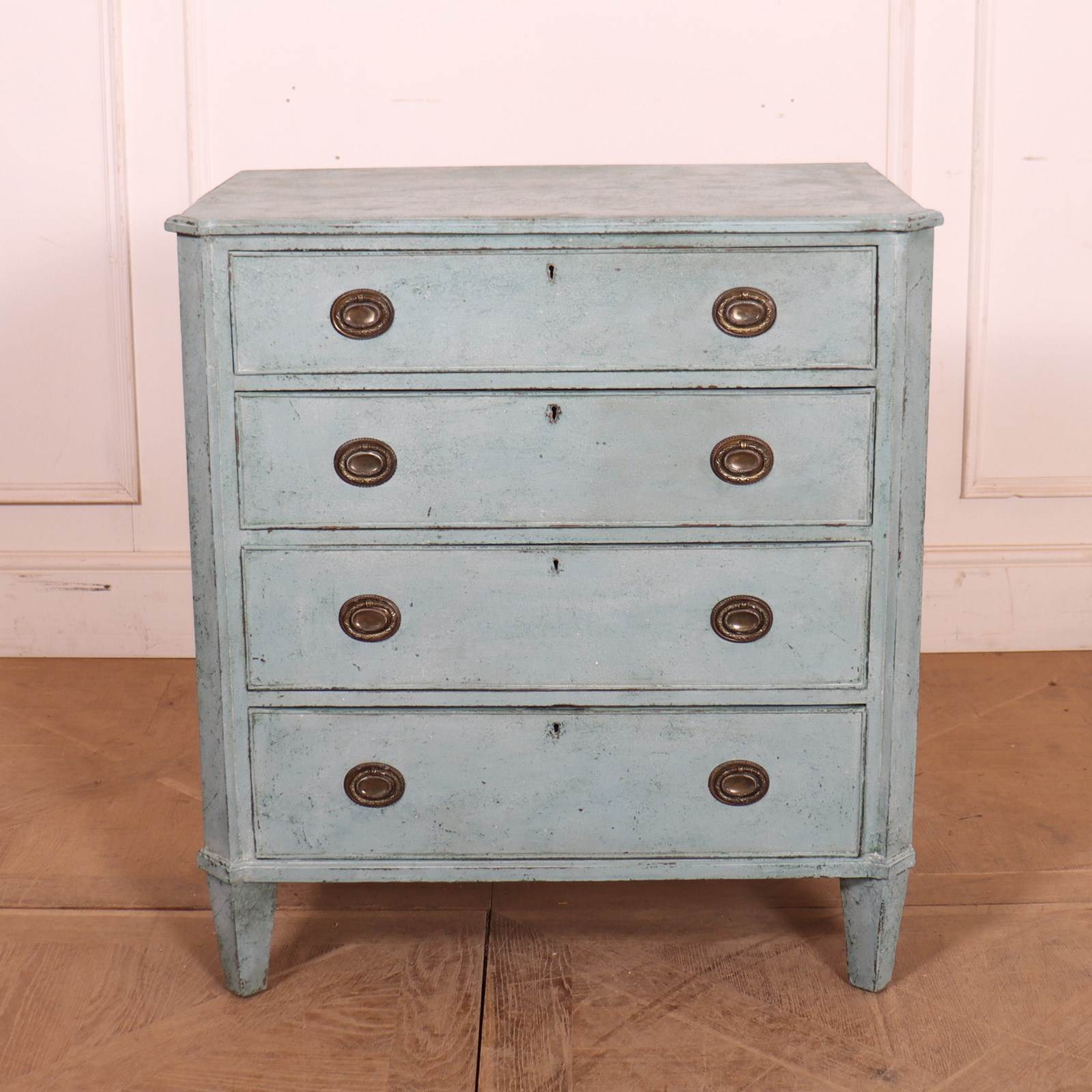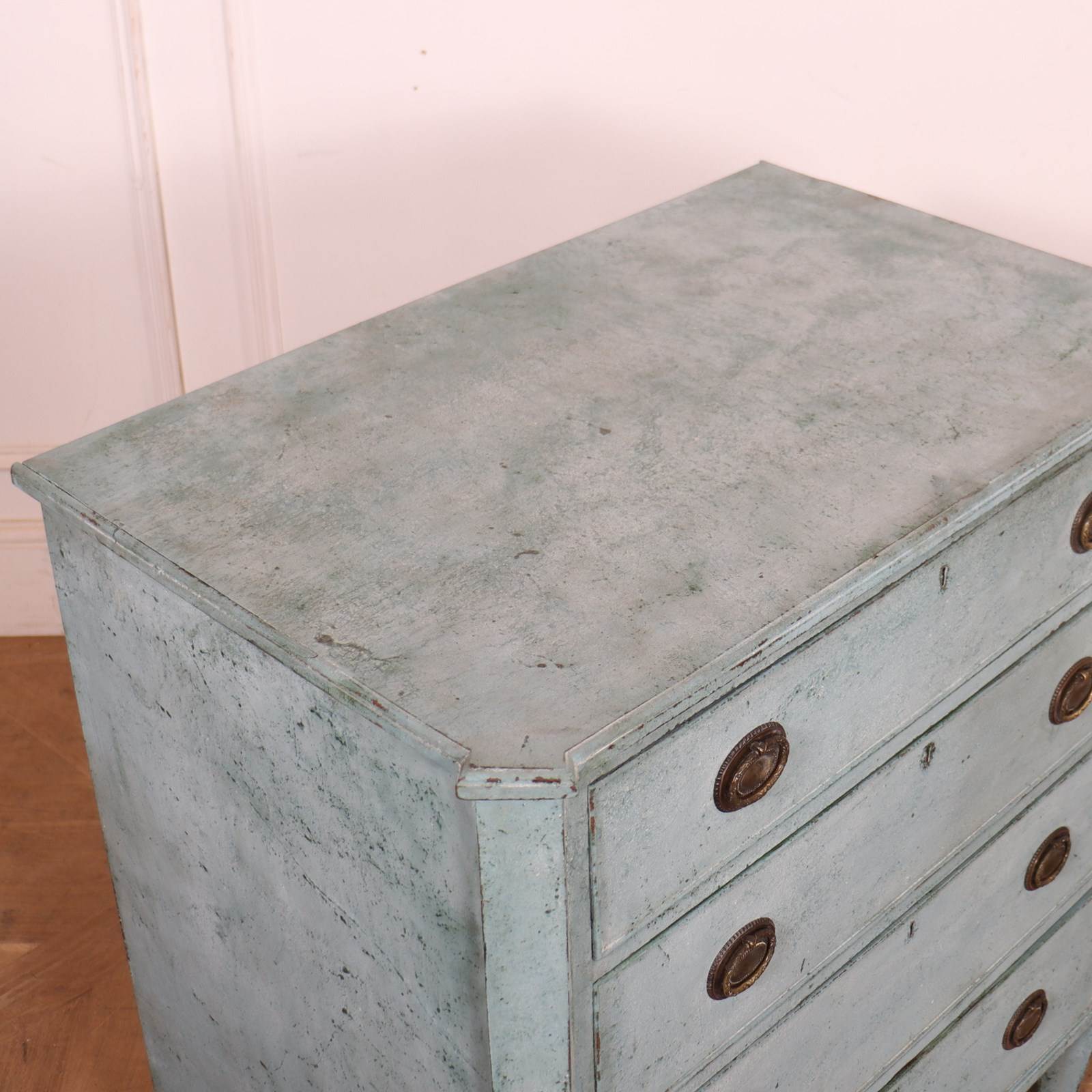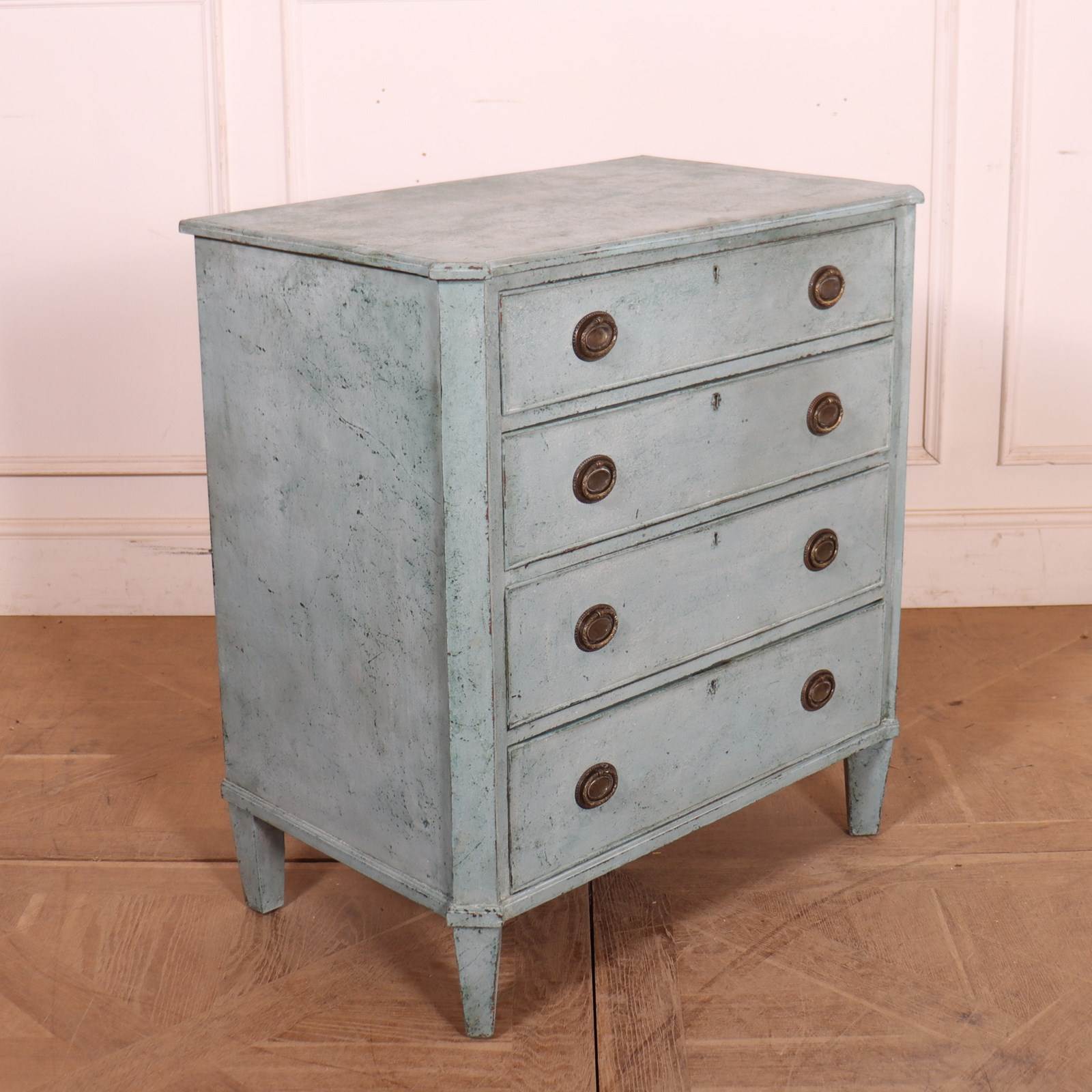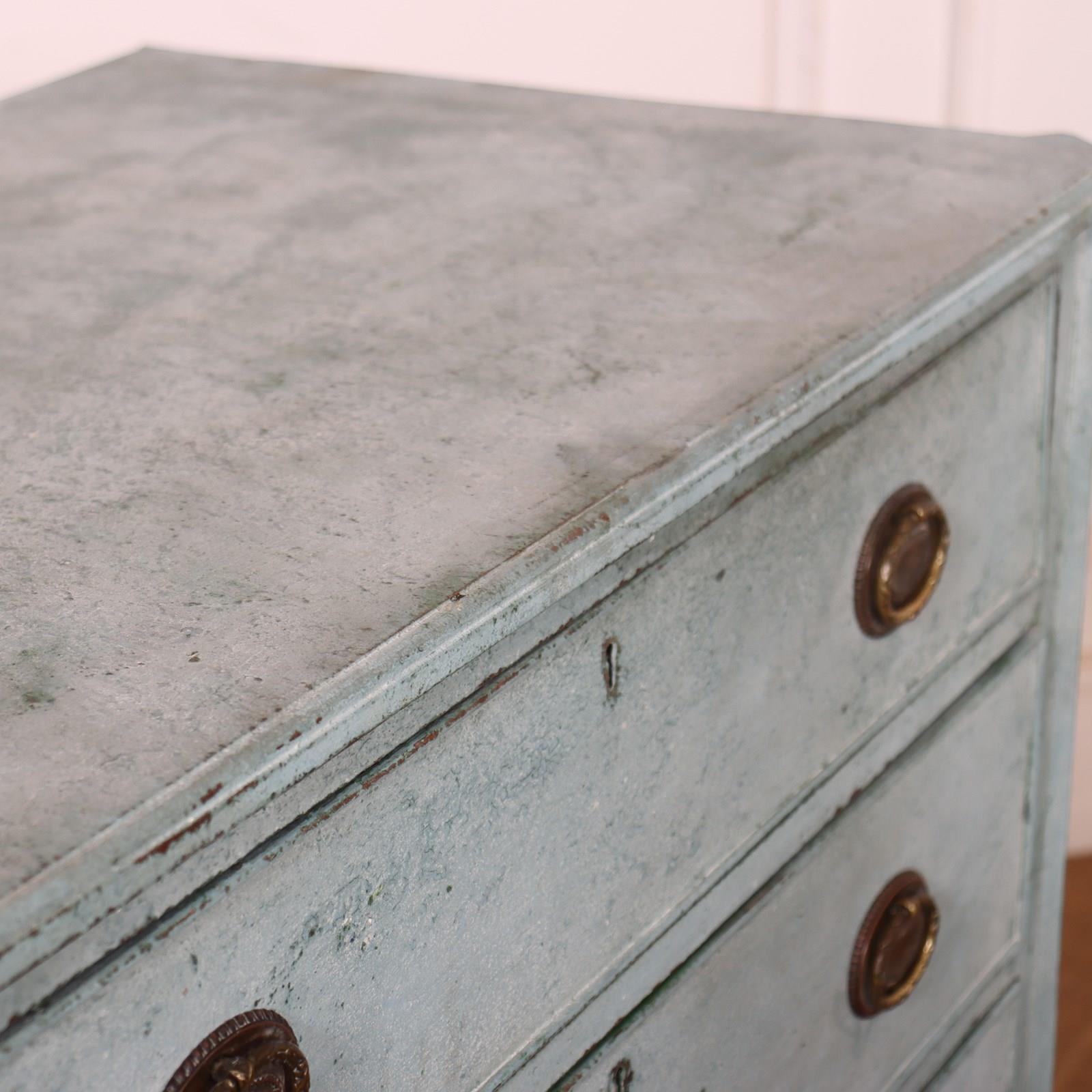 19th C Swedish painted 4 drawer pine commode . 1830