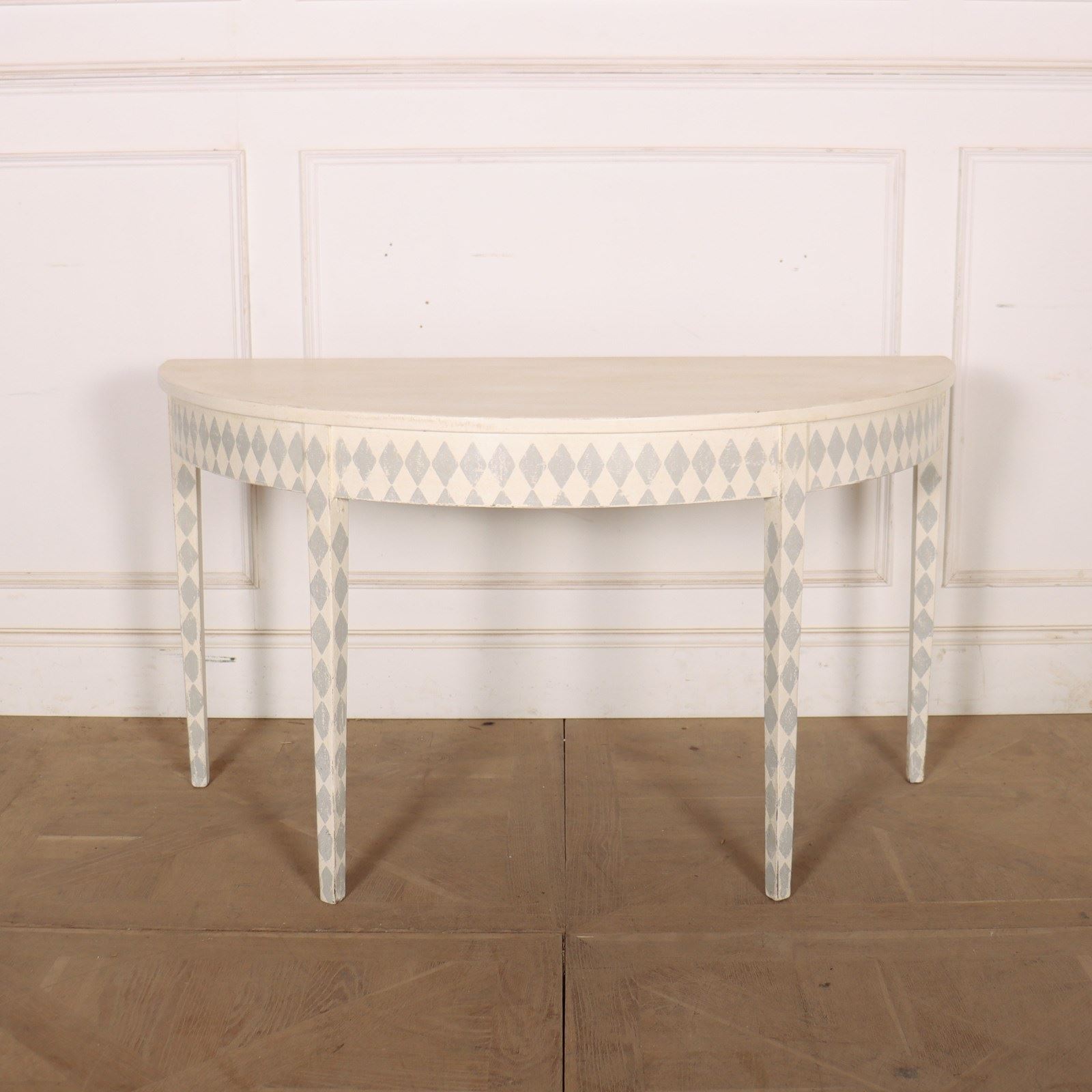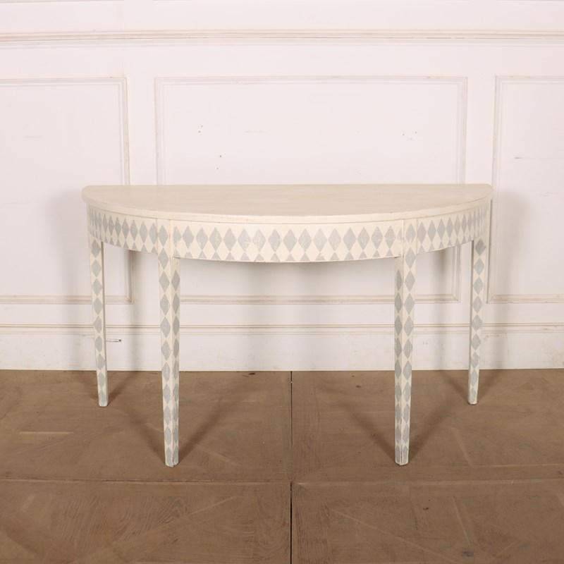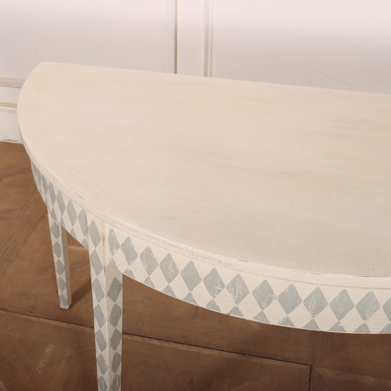 Early 19th century Swedish decorated oak demi-lune console table. 1820.