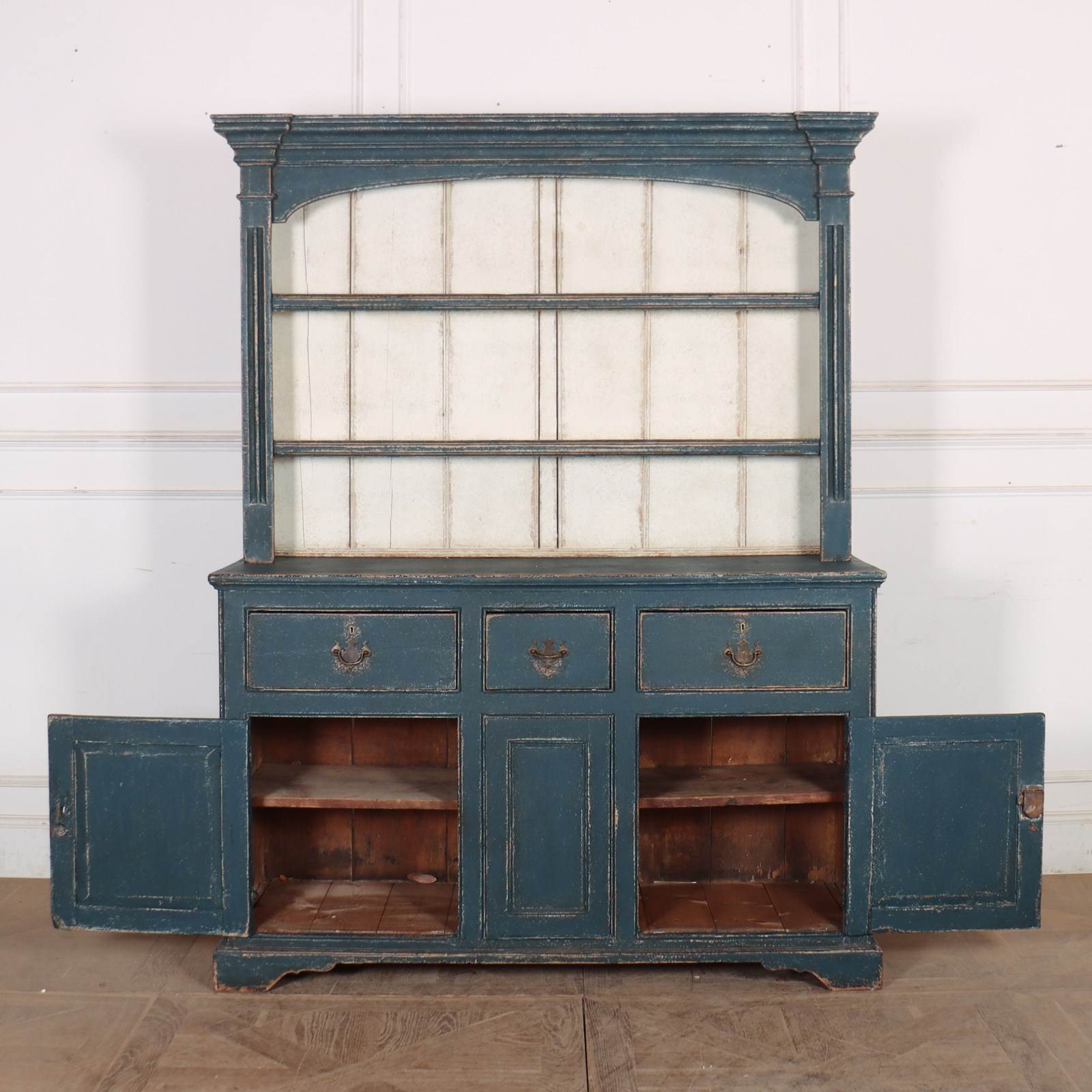 Early 19th C English painted West country pine dresser, lovely proportions. 1820