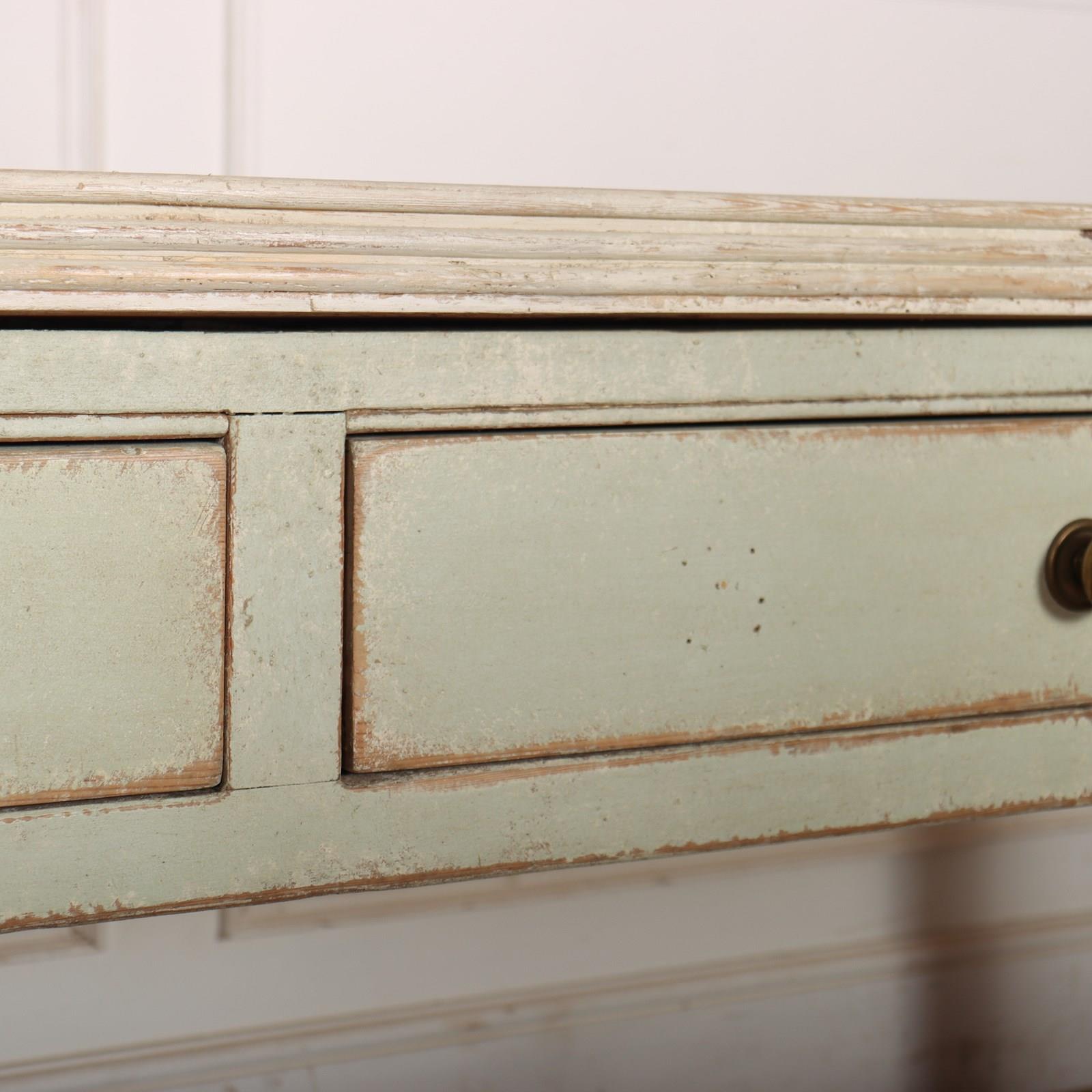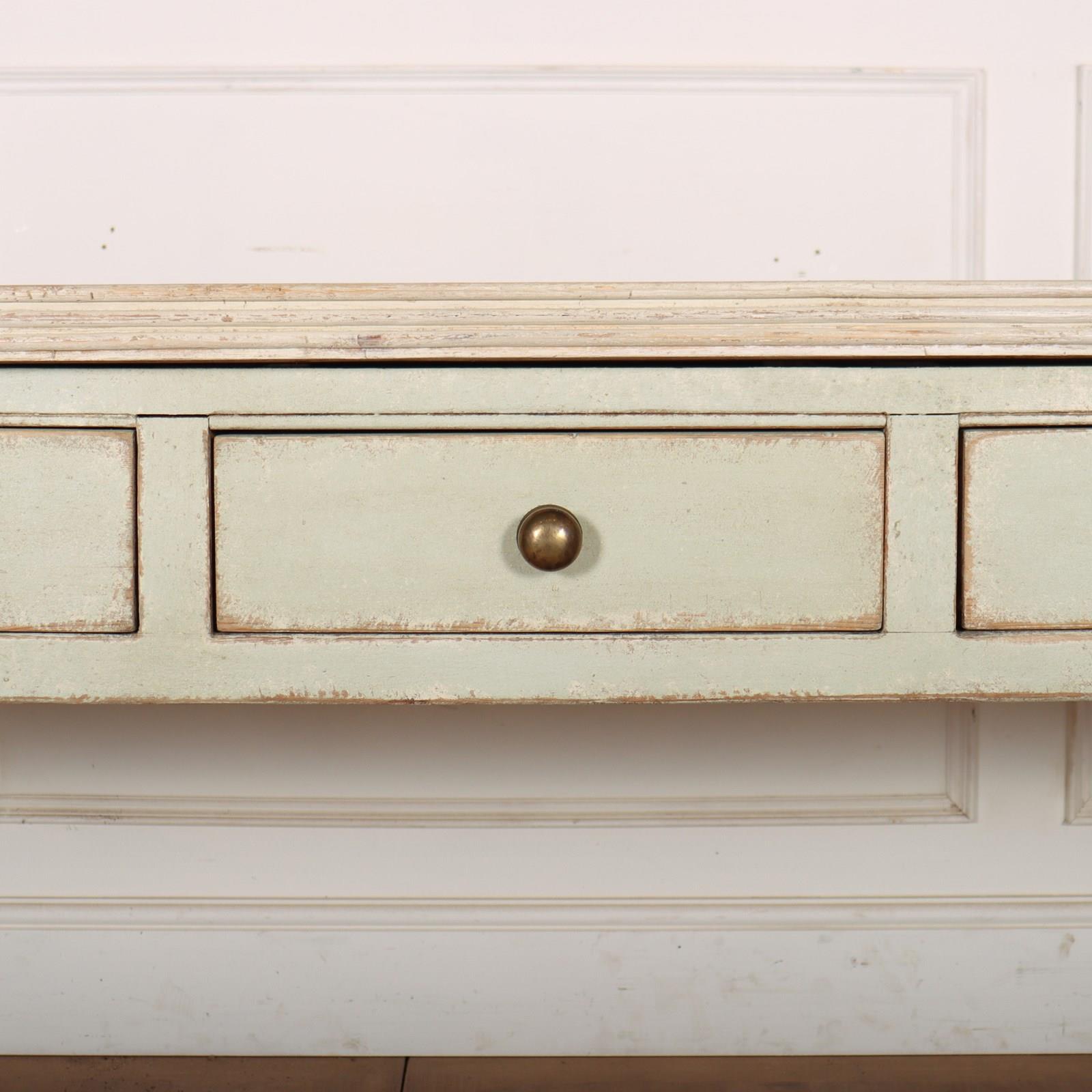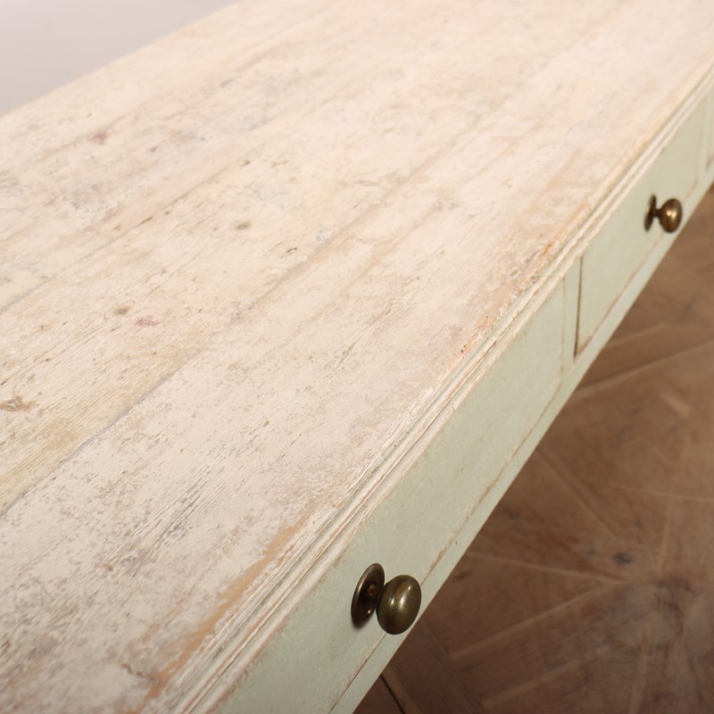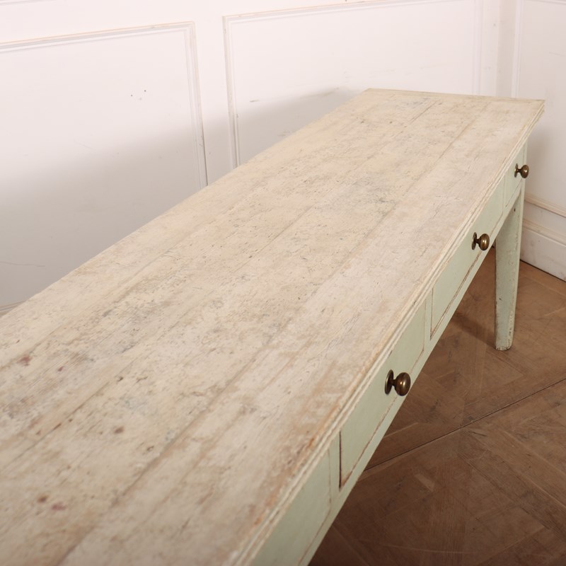 Good 19th century West Country painted three drawer serving table with two faux outer drawers and a good thick washed top. 1840.
