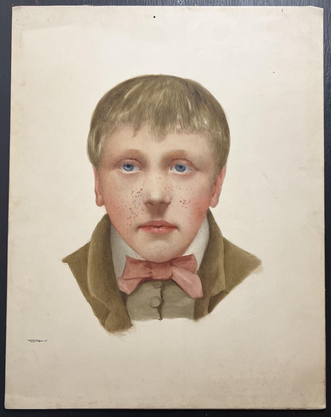 An original watercolour medical skin disease painting of a boy by W. Toogood Hill.