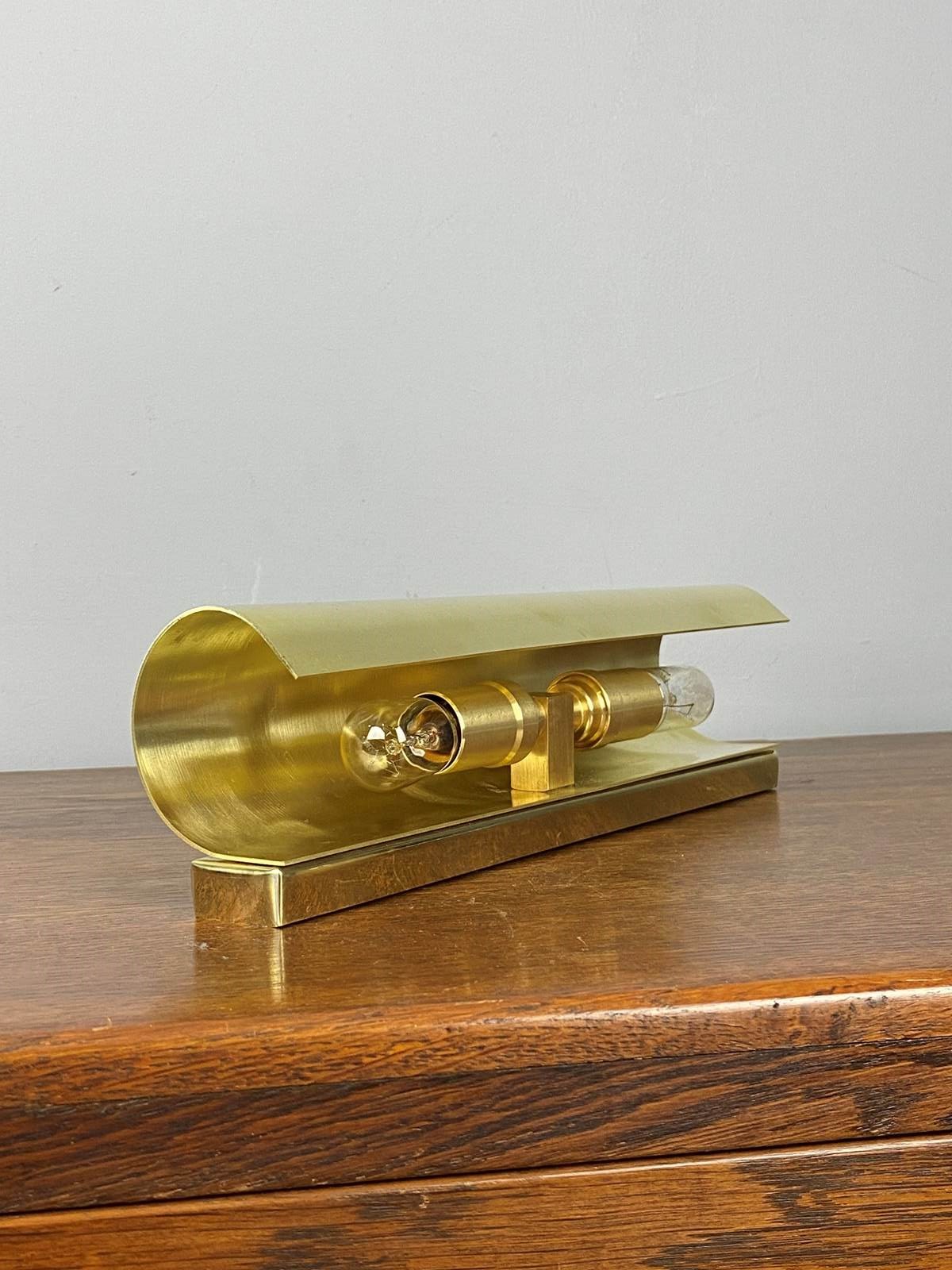 A very simple and sleek picture light made from solid brass. Sitting flush to the wall without the traditional arm, this picture light is delightfully unobtrusive.