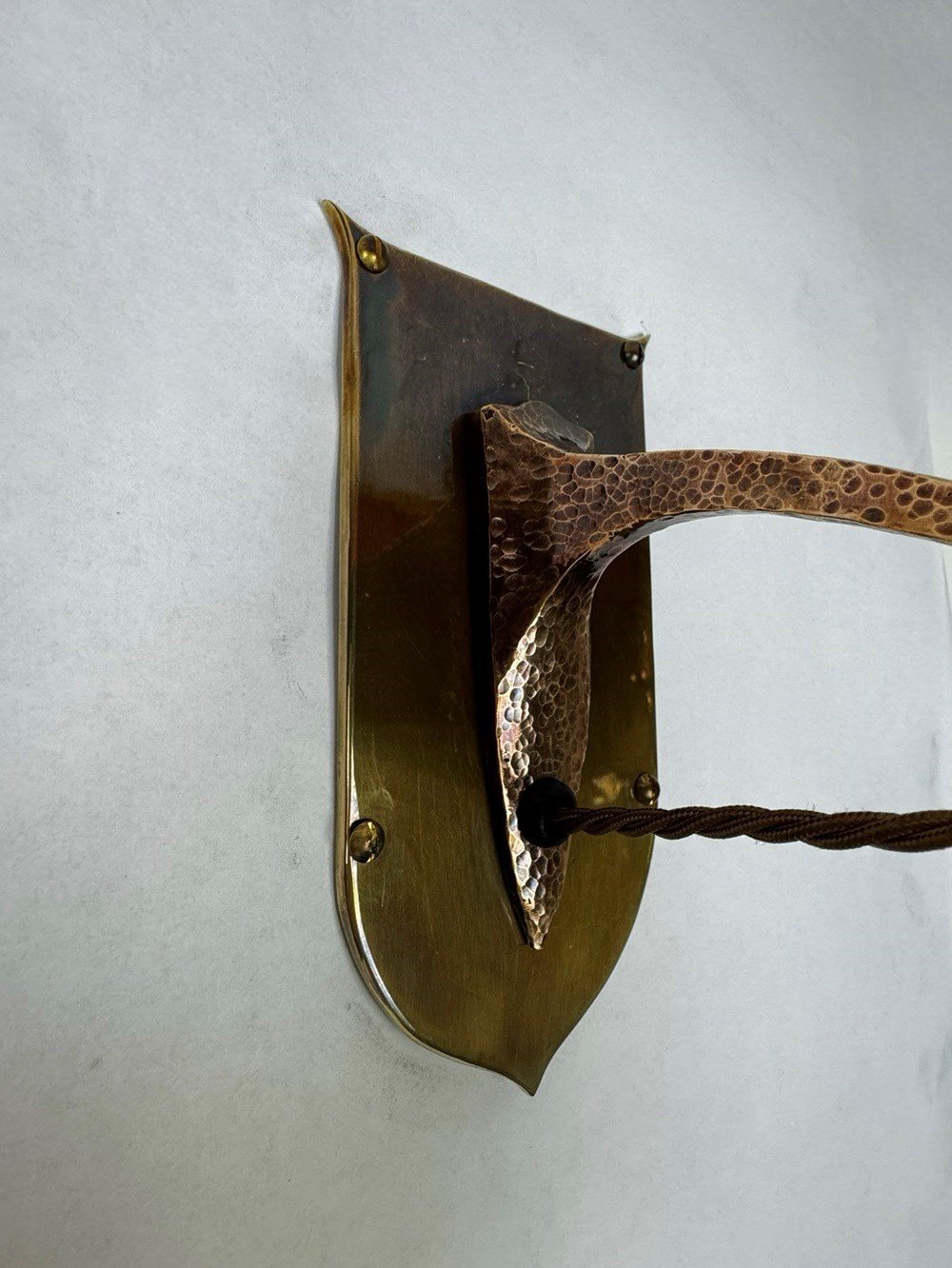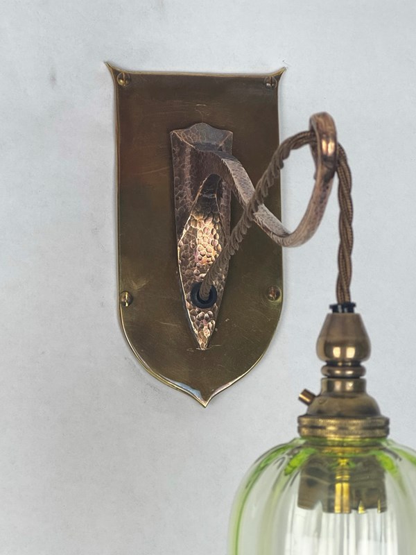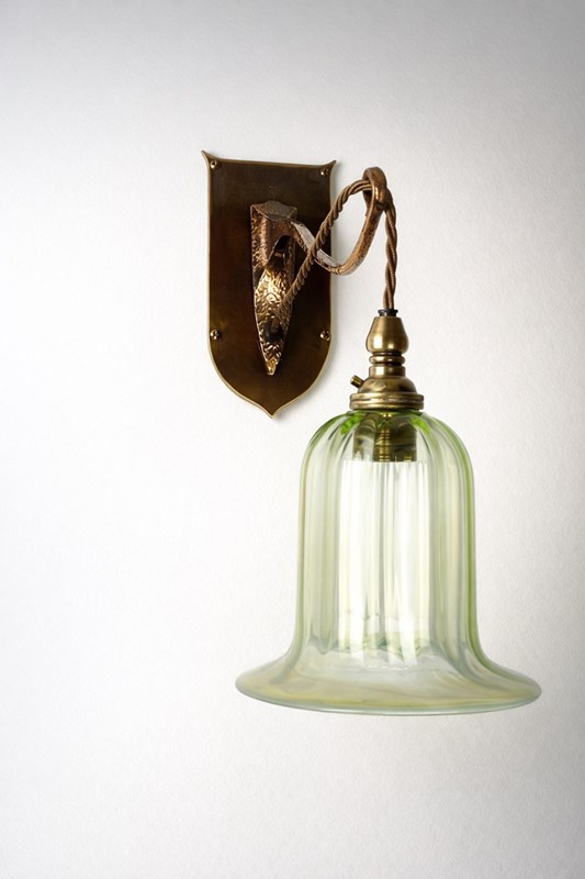 Inspired by the Arts and Crafts Movement this elegant wall bracket is made from bronze with planish work giving a textured surface.