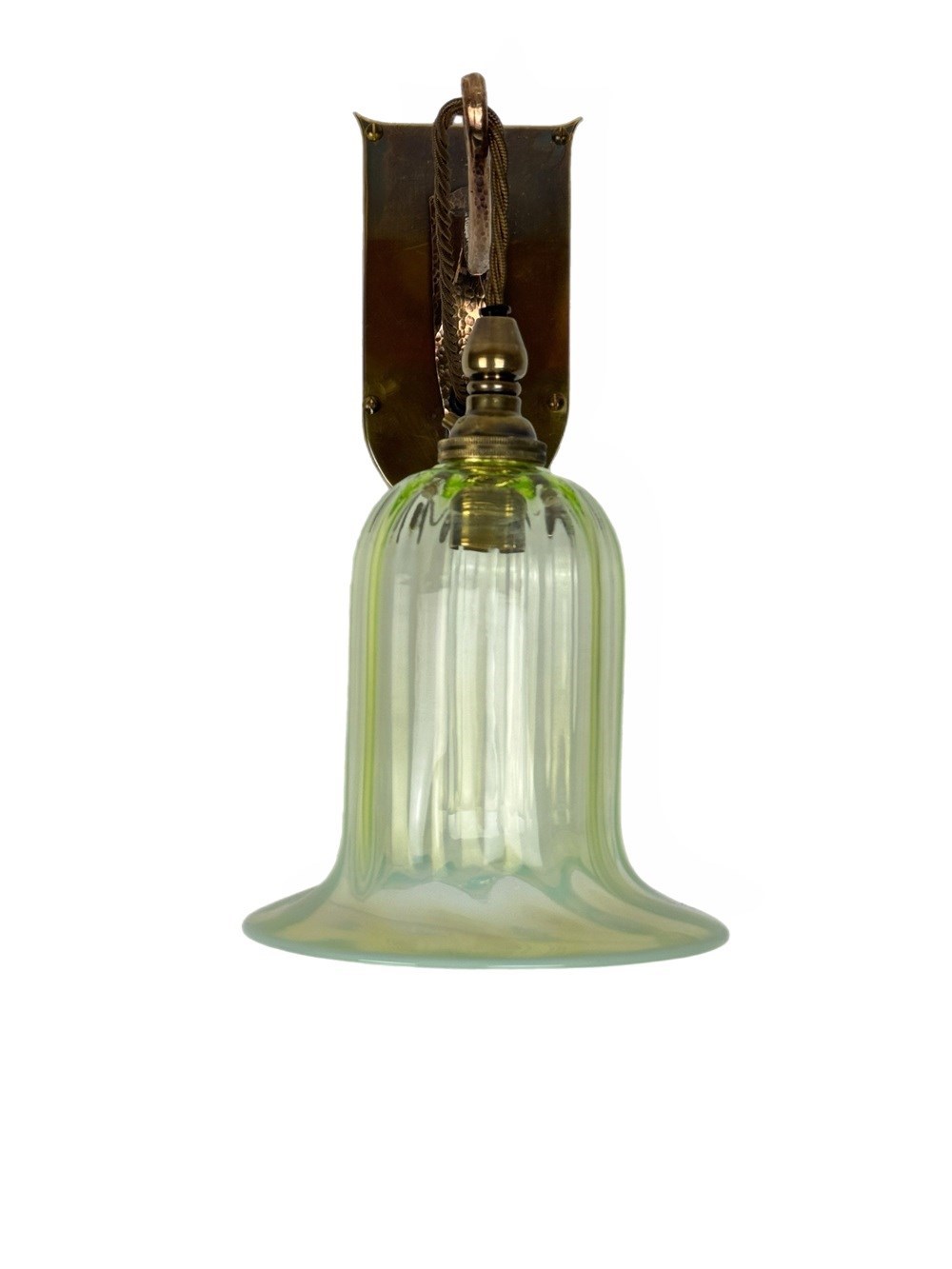 Dimensions – back plate measures 10cm x 19cm. Projection from wall 32cm. Overall height from top of backplate to bottom of glass shade 35cm. Width of shade 13.5cm.