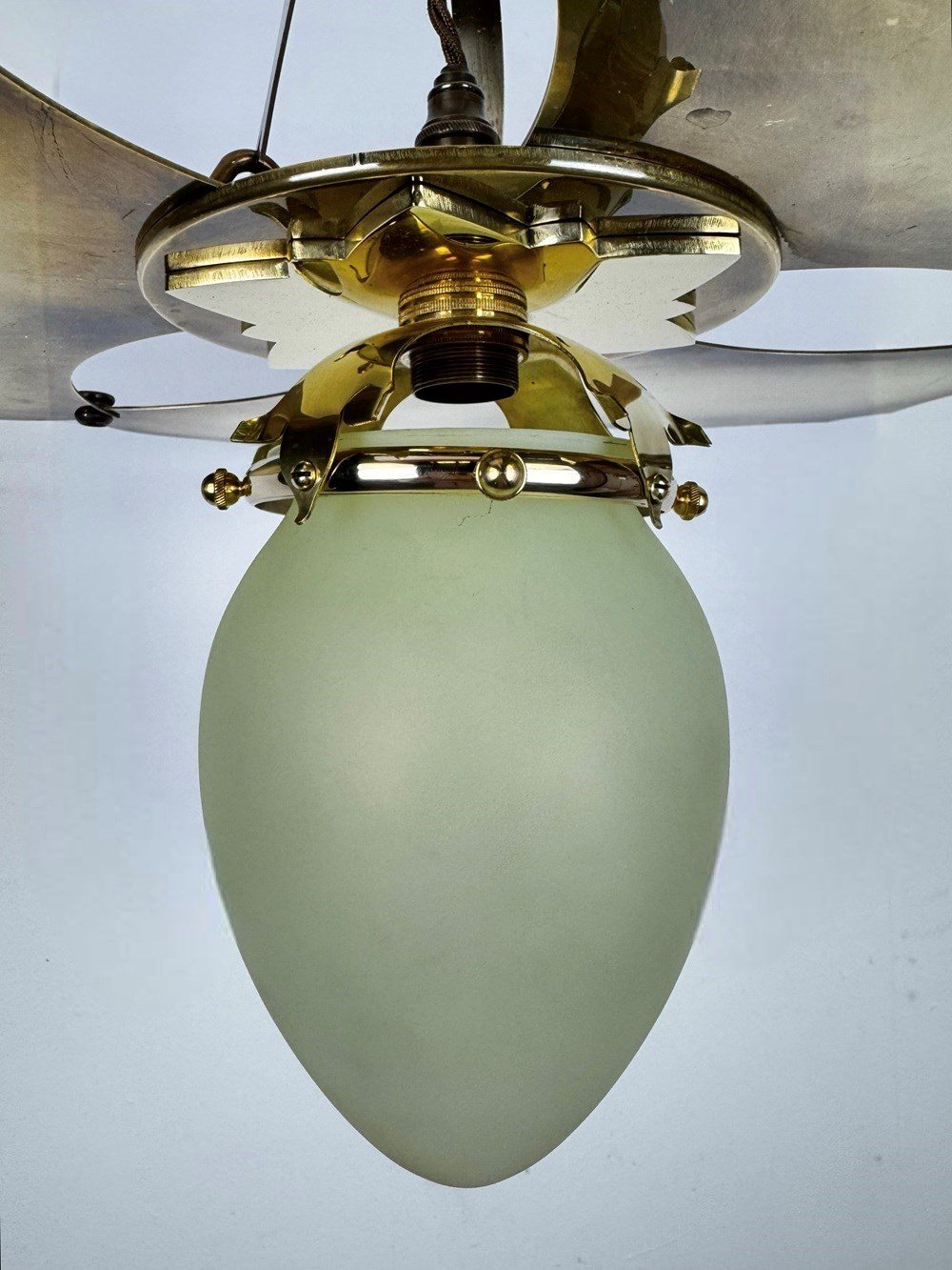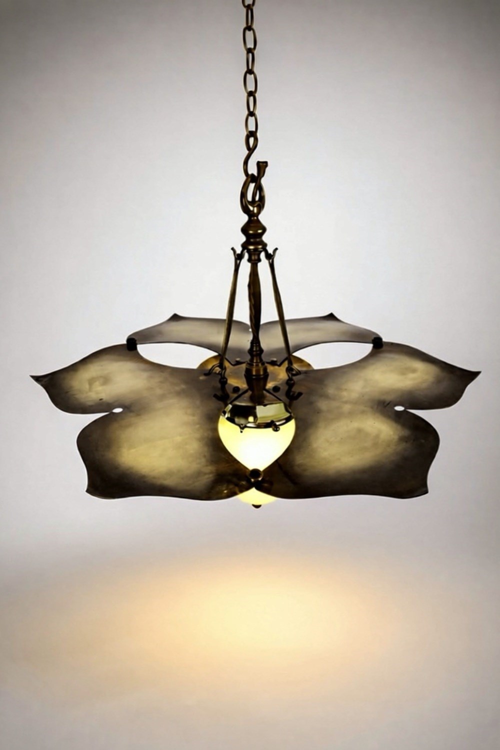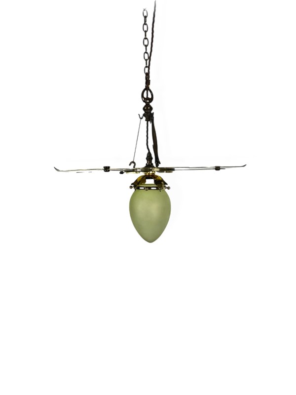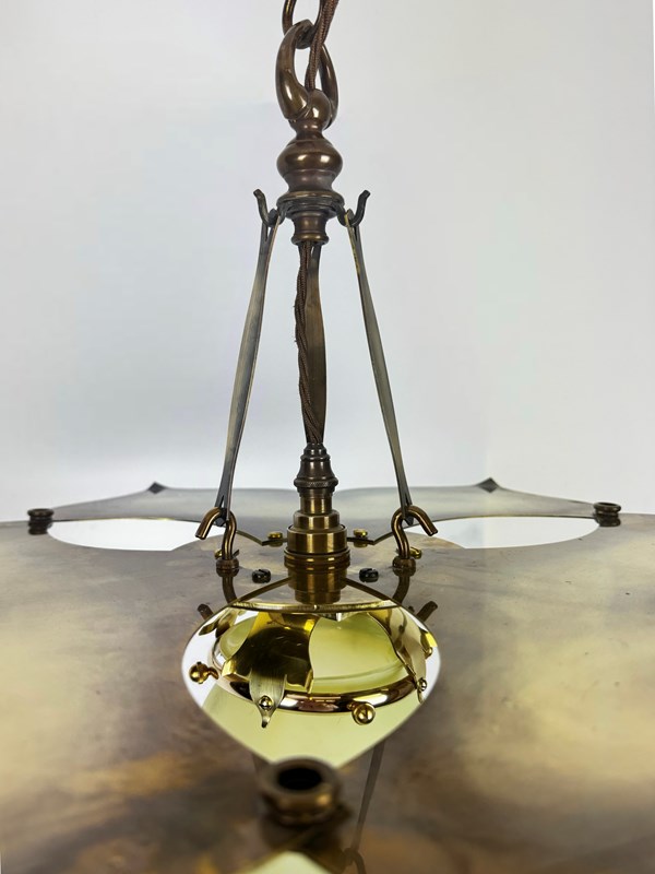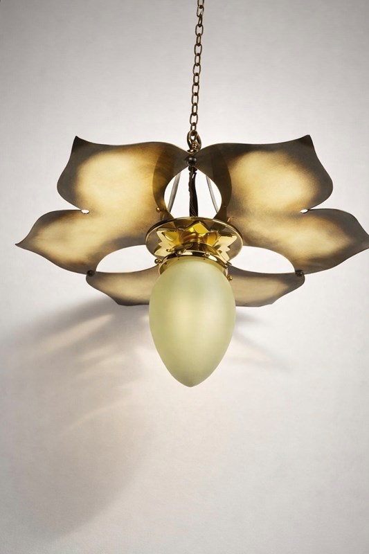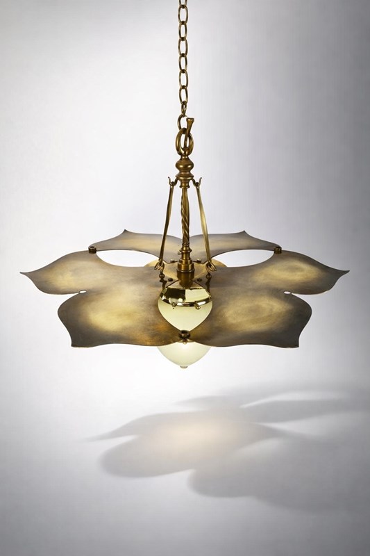Hand made in our South Derbyshire workshop. This chandelier is inspired by a design by WAS Benson and epitomises Arts and Crafts style.
