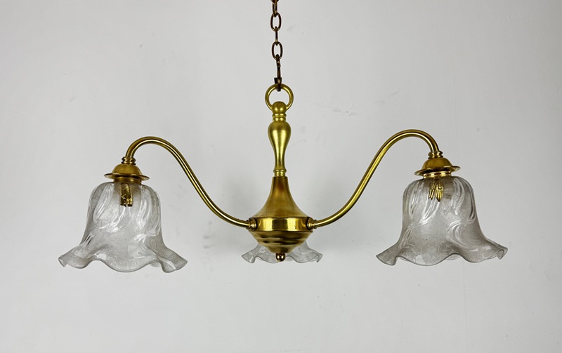Three Arm Art Nouveau Brass Chandelier (56218)