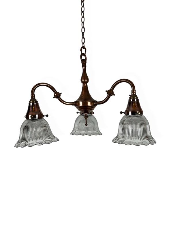 Three Arm Chandelier With Holophane Glass Shades (56220)