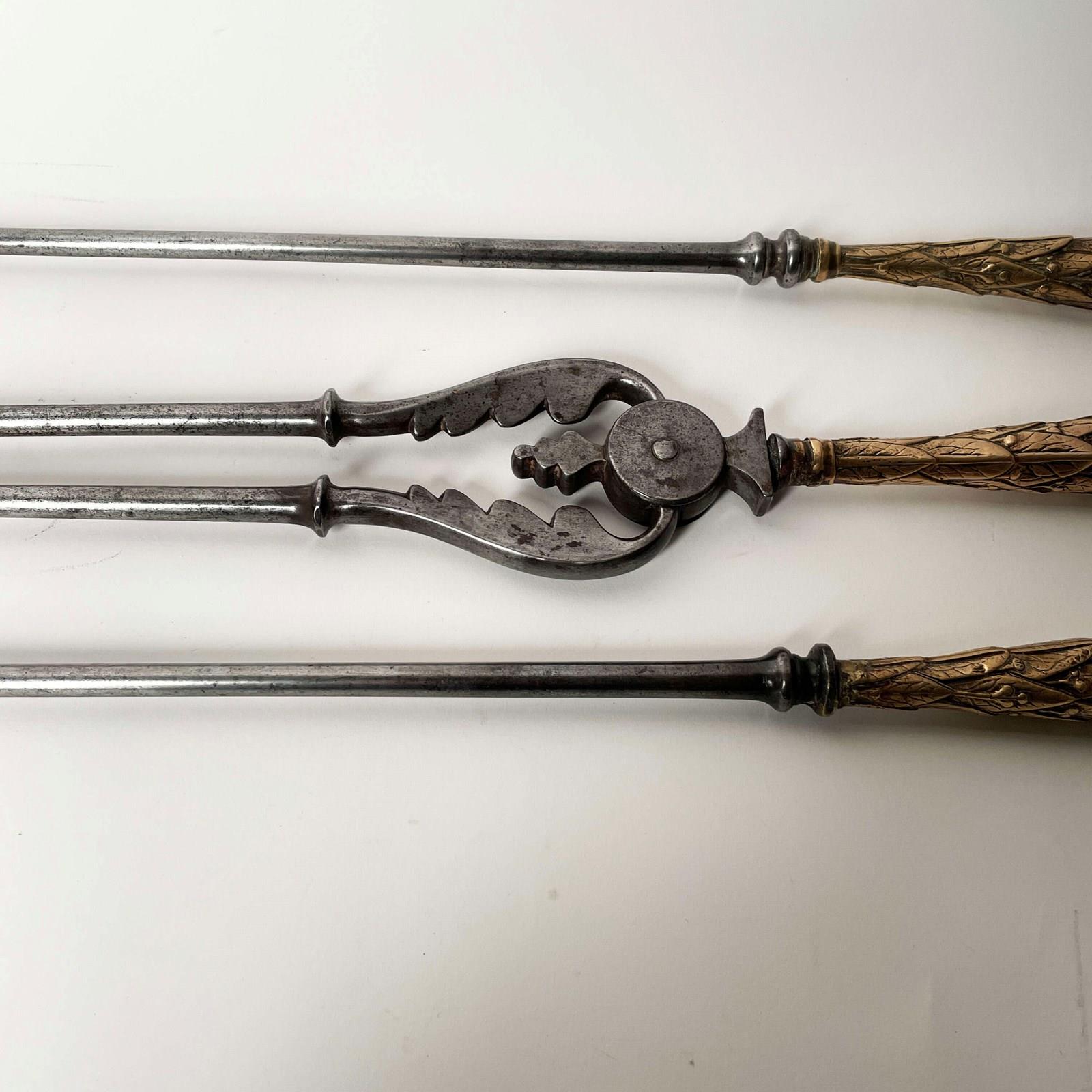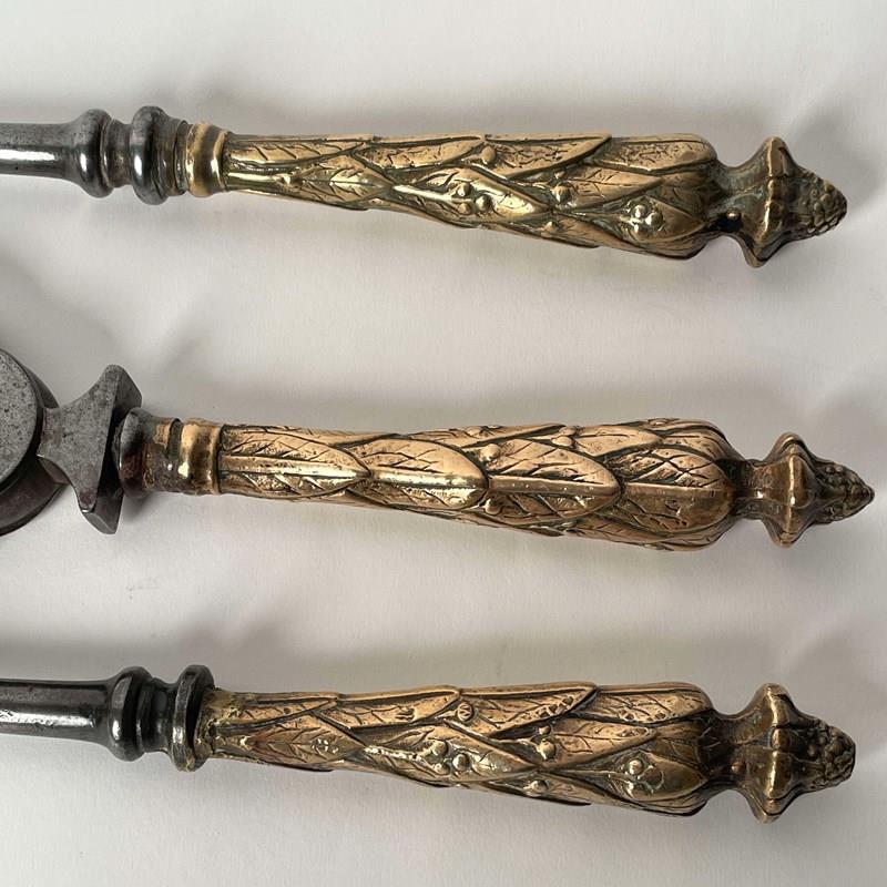 A Set Of 3 Georgian Steel And Gilt Brass Fire Irons
