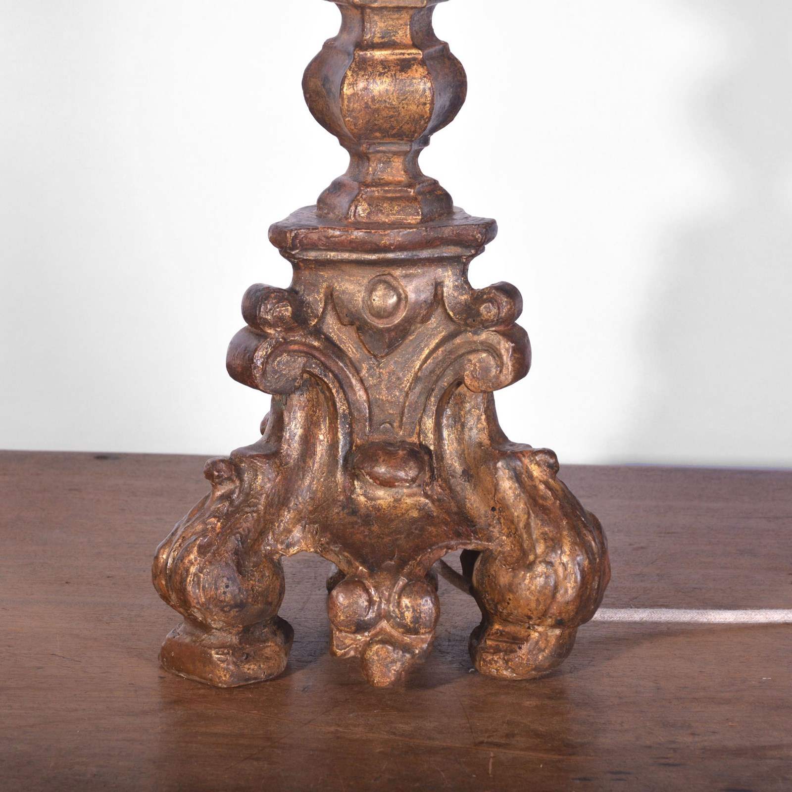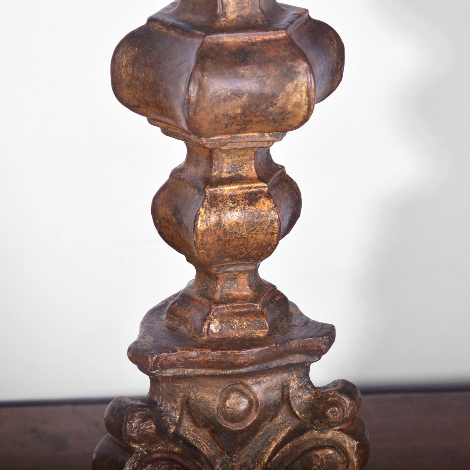 18Th Century Spanish Giltwood Altar Candlestick Lamp