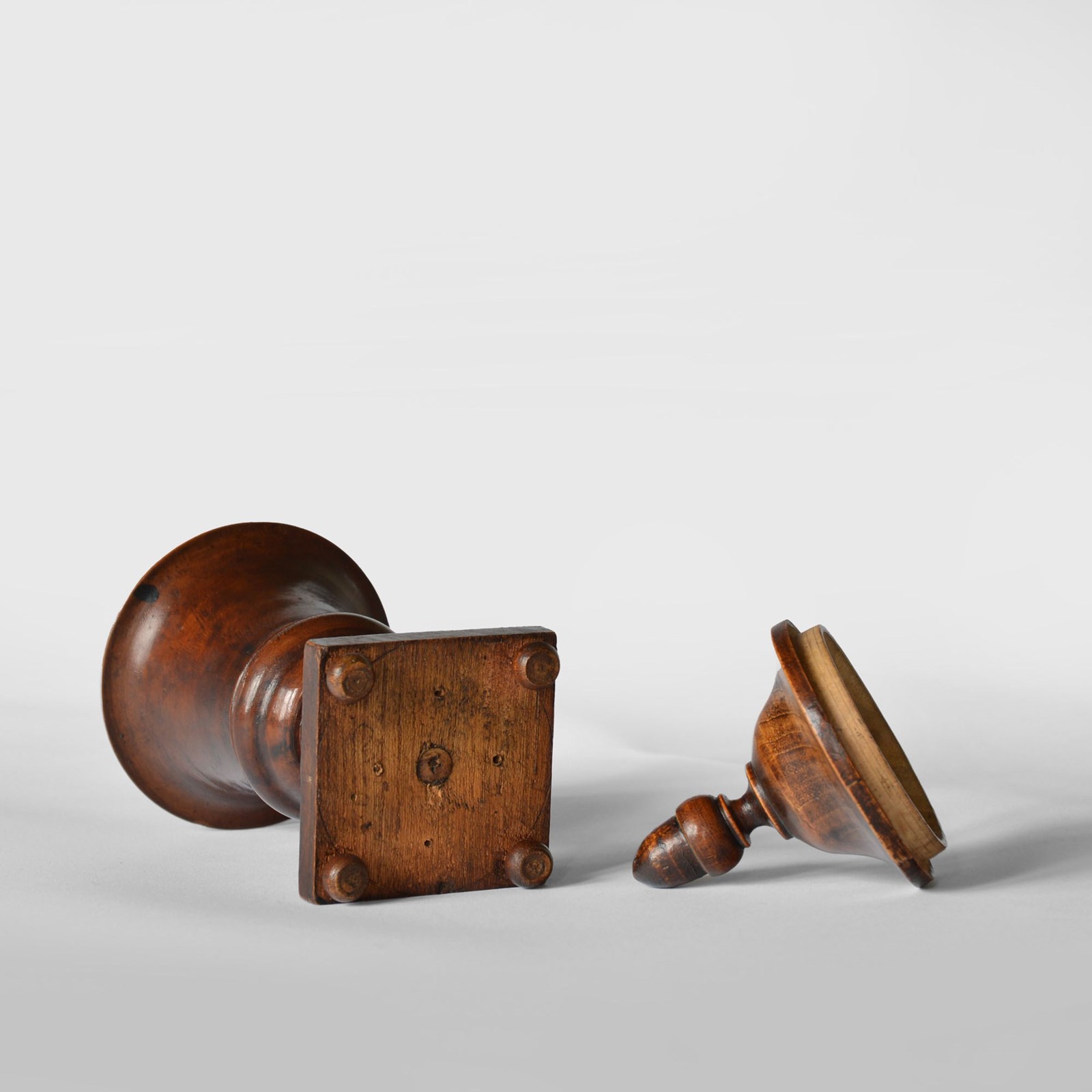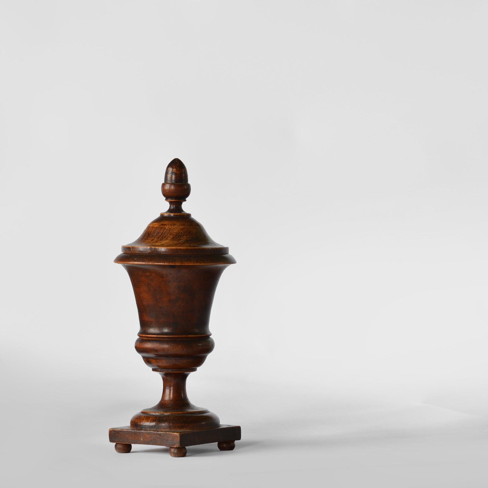 The domed lid with acorn finial, the urn of classical campana form to domed foot over the square base with bun feet.