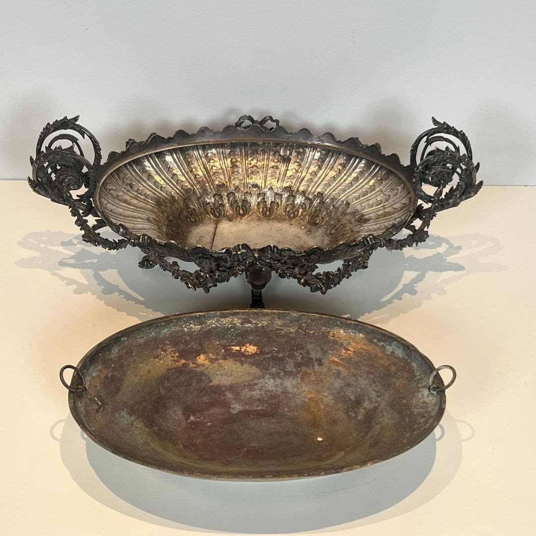 A Silver-Plated, Chased Metal Centerpiece Decorated With Scrolls, Medallions, An