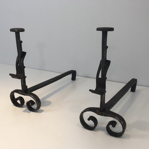 Black lacquered and chrome design fireplace tools on stand. This piece can stand on the floor or be fixed on the wall. French work. Circa 1970