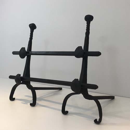Black Lacquered And Chrome Design Fireplace Tools On Stand.