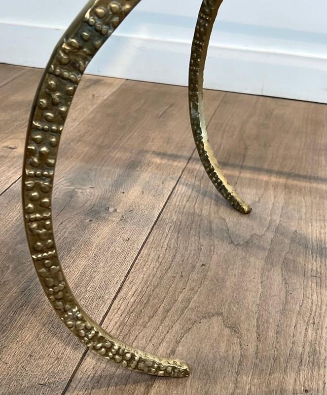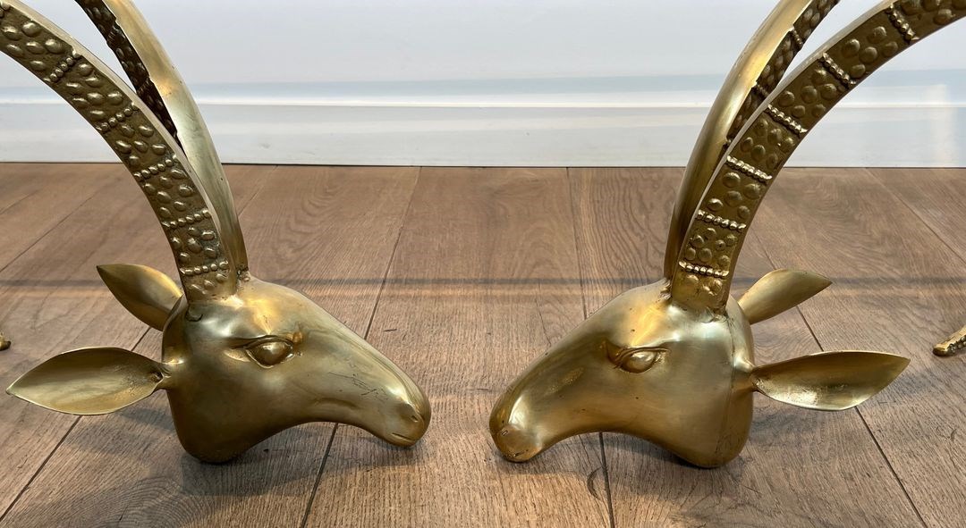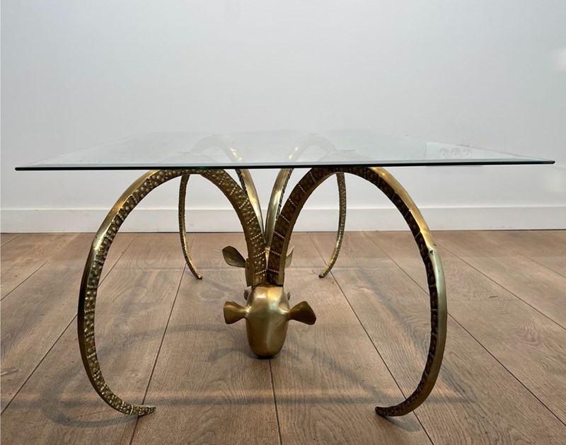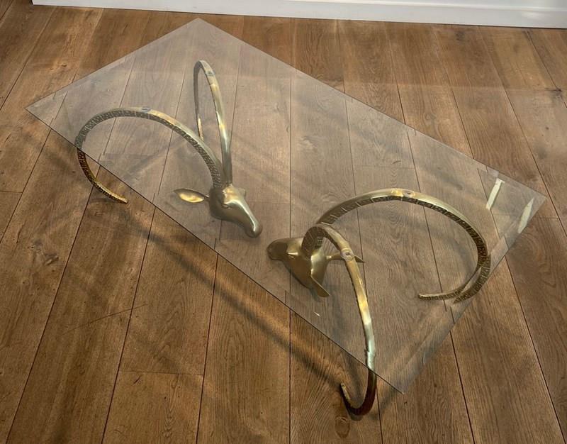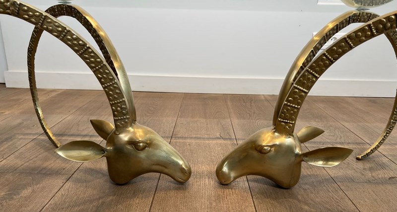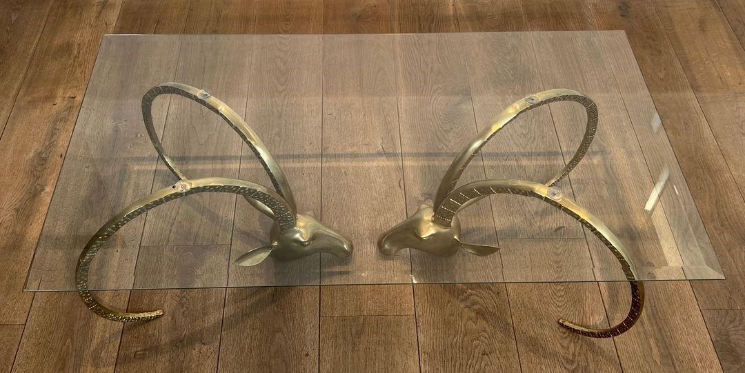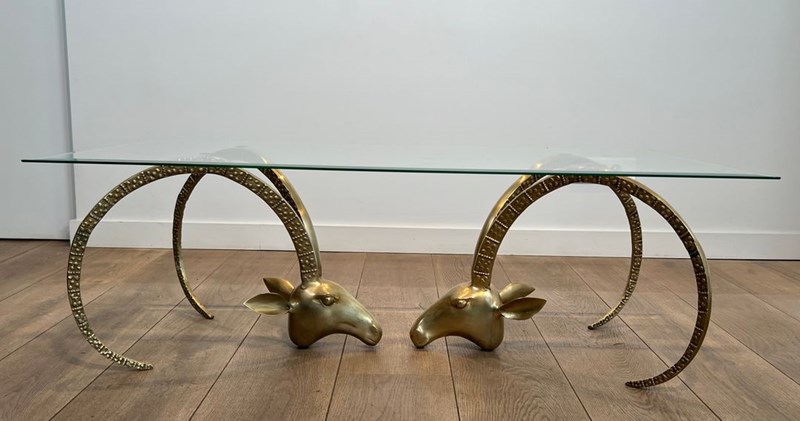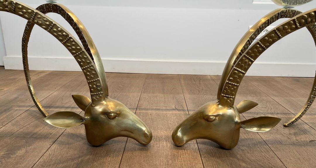 Brass Coffee Table Called "Aux Mouflons" Representing Two Ibex Heads Facing Each