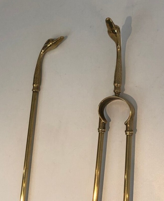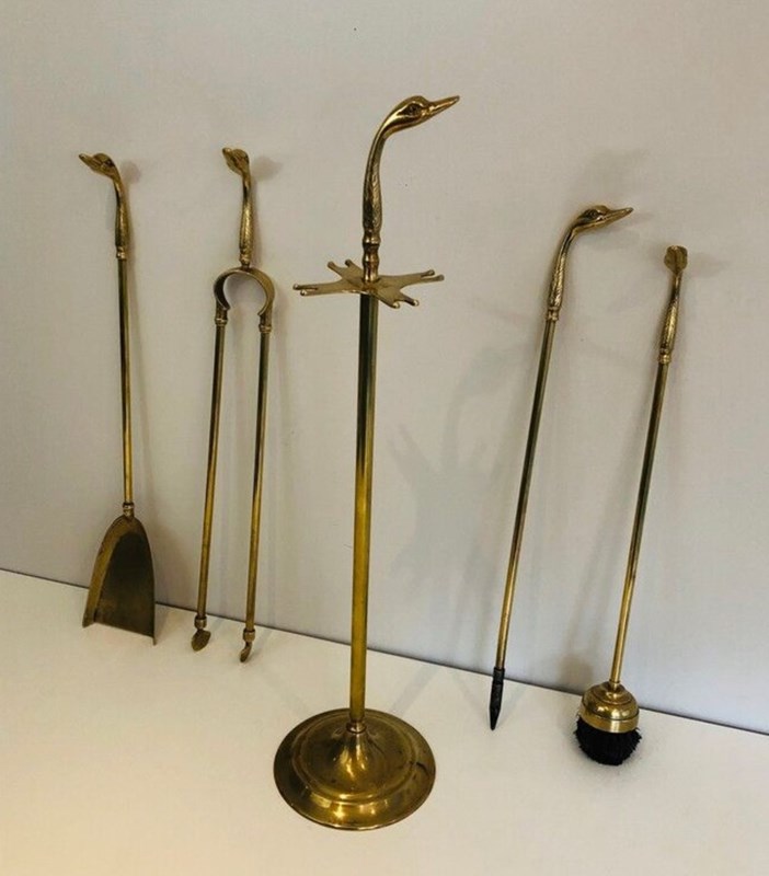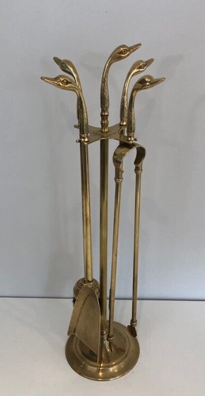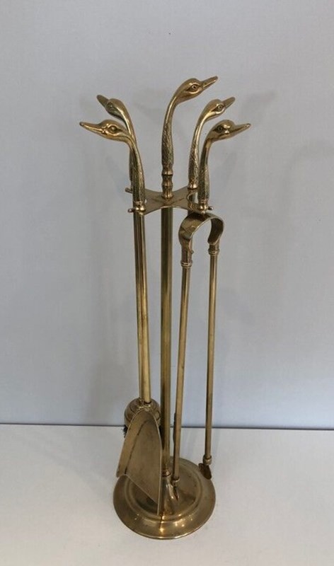Brass Duck Heads Fireplace Tools On Stand. French Work