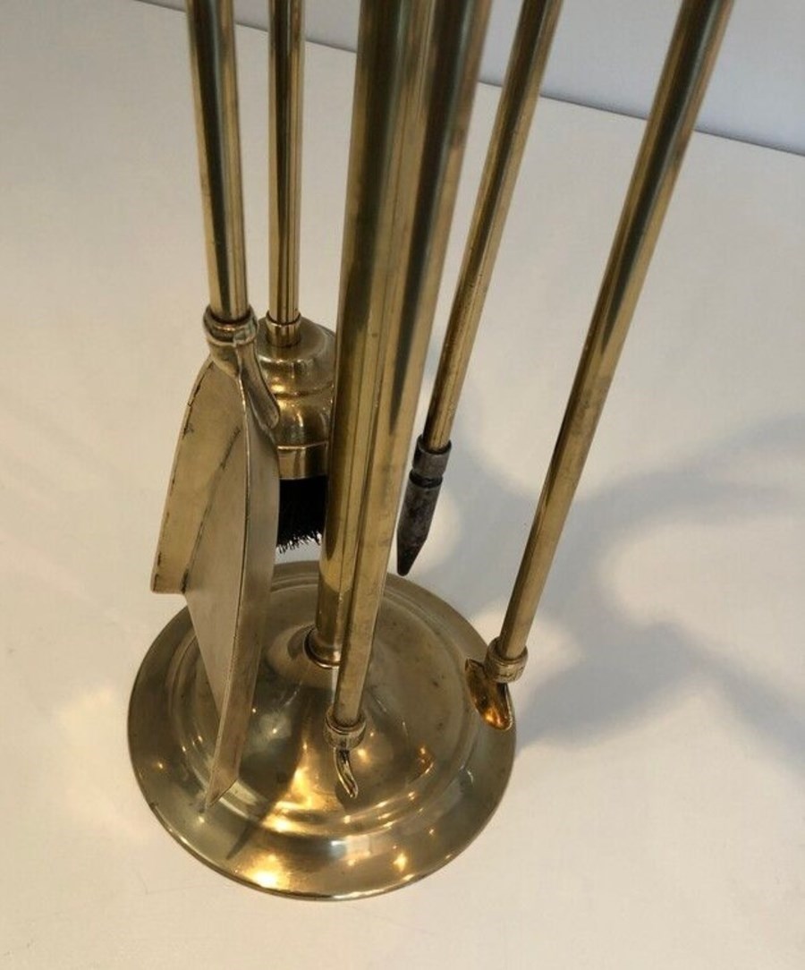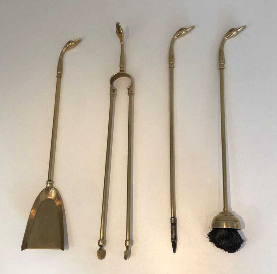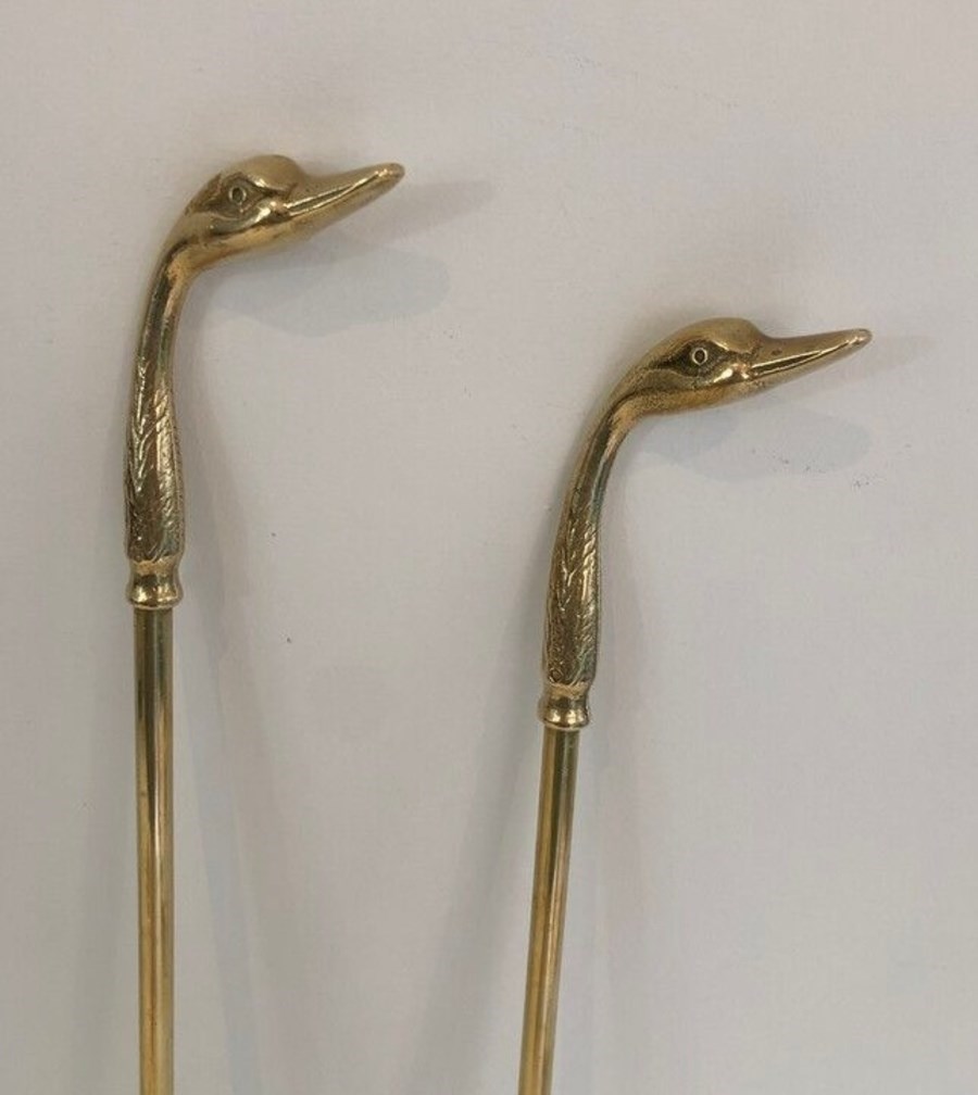 Brass duck heads fireplace tools on stand. French work in the Style of Maison Jansen. Circa 1940