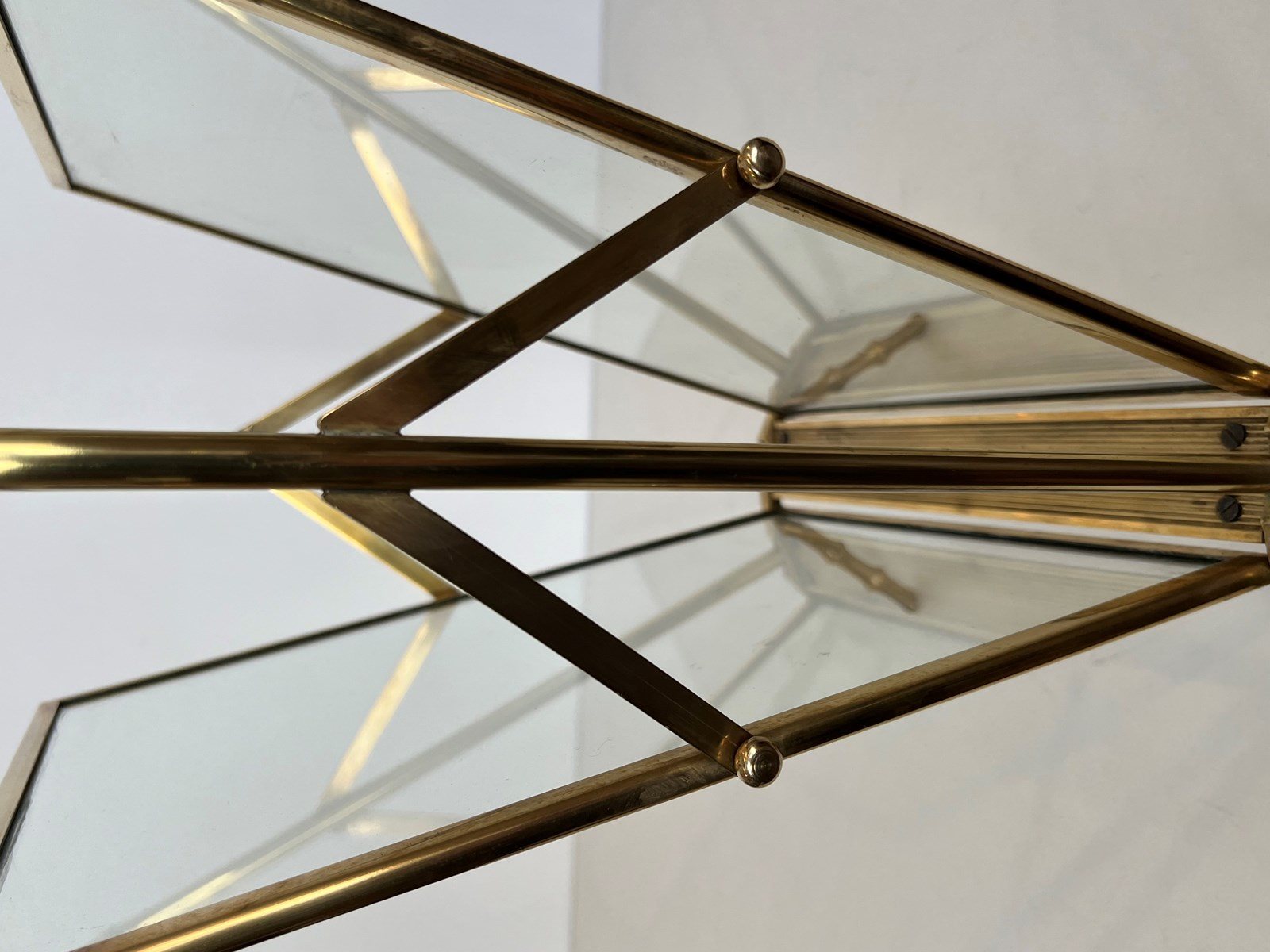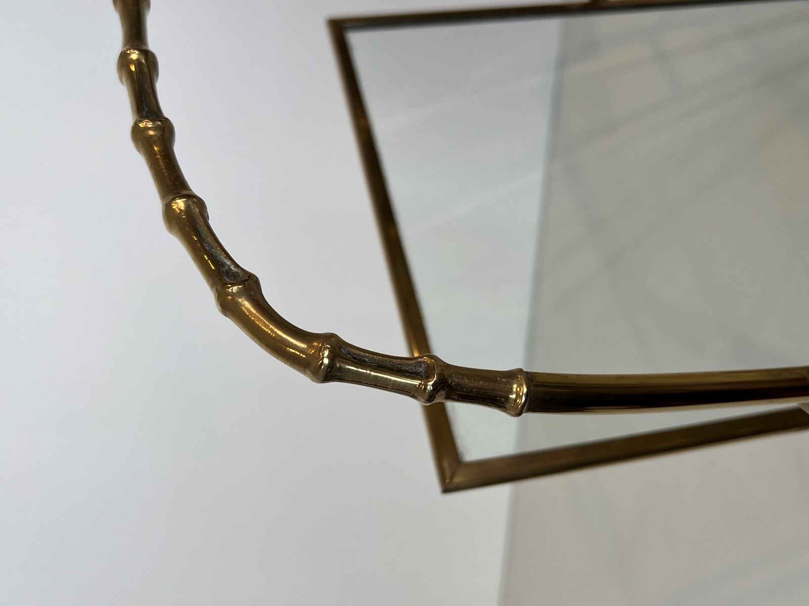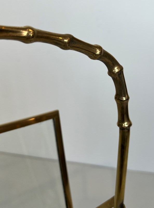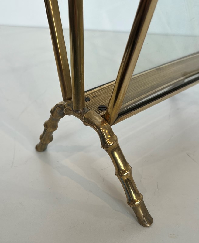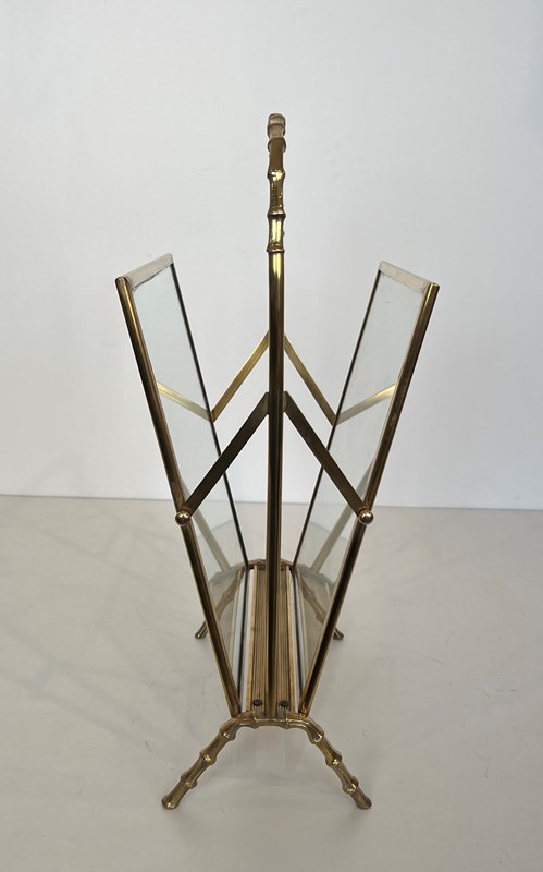 Brass Faux-Bamboo Magazine Rack With Clear Glass Panels On Each Side.