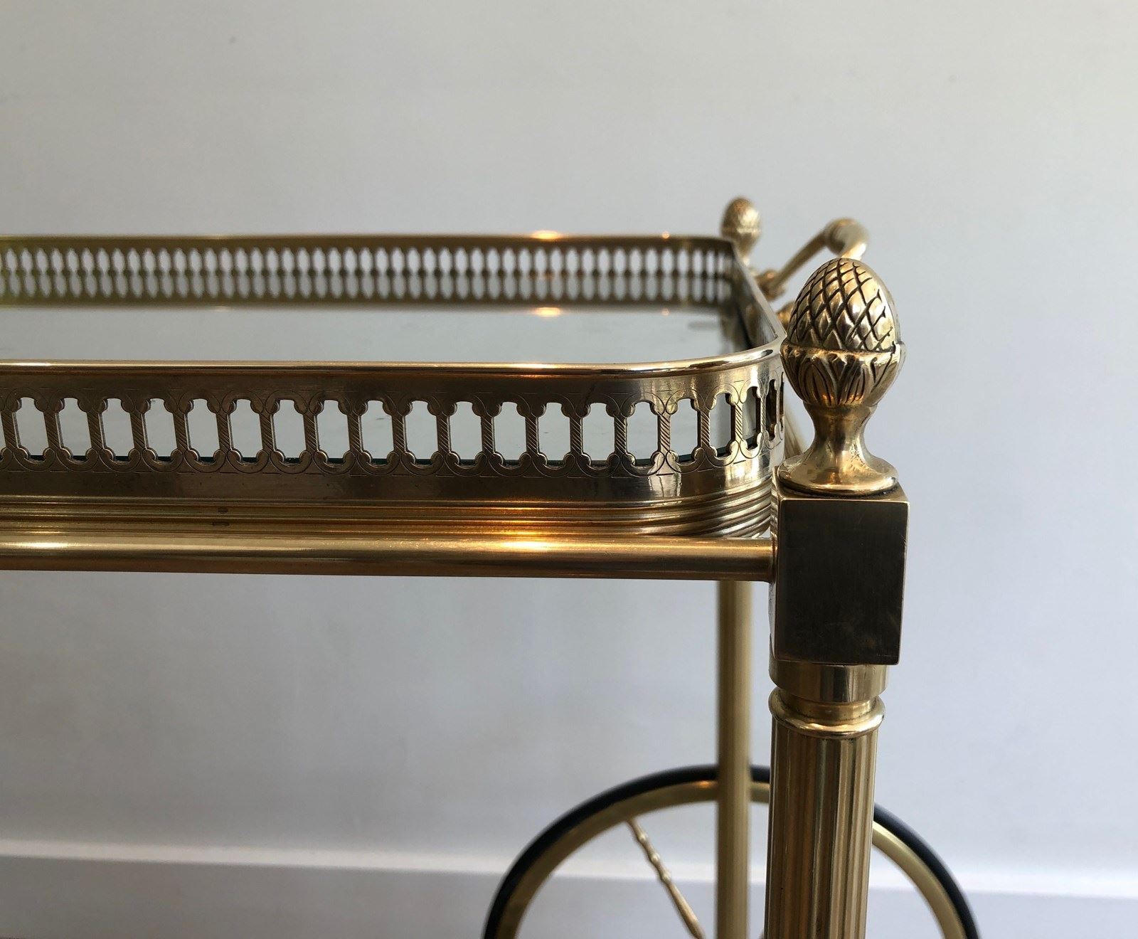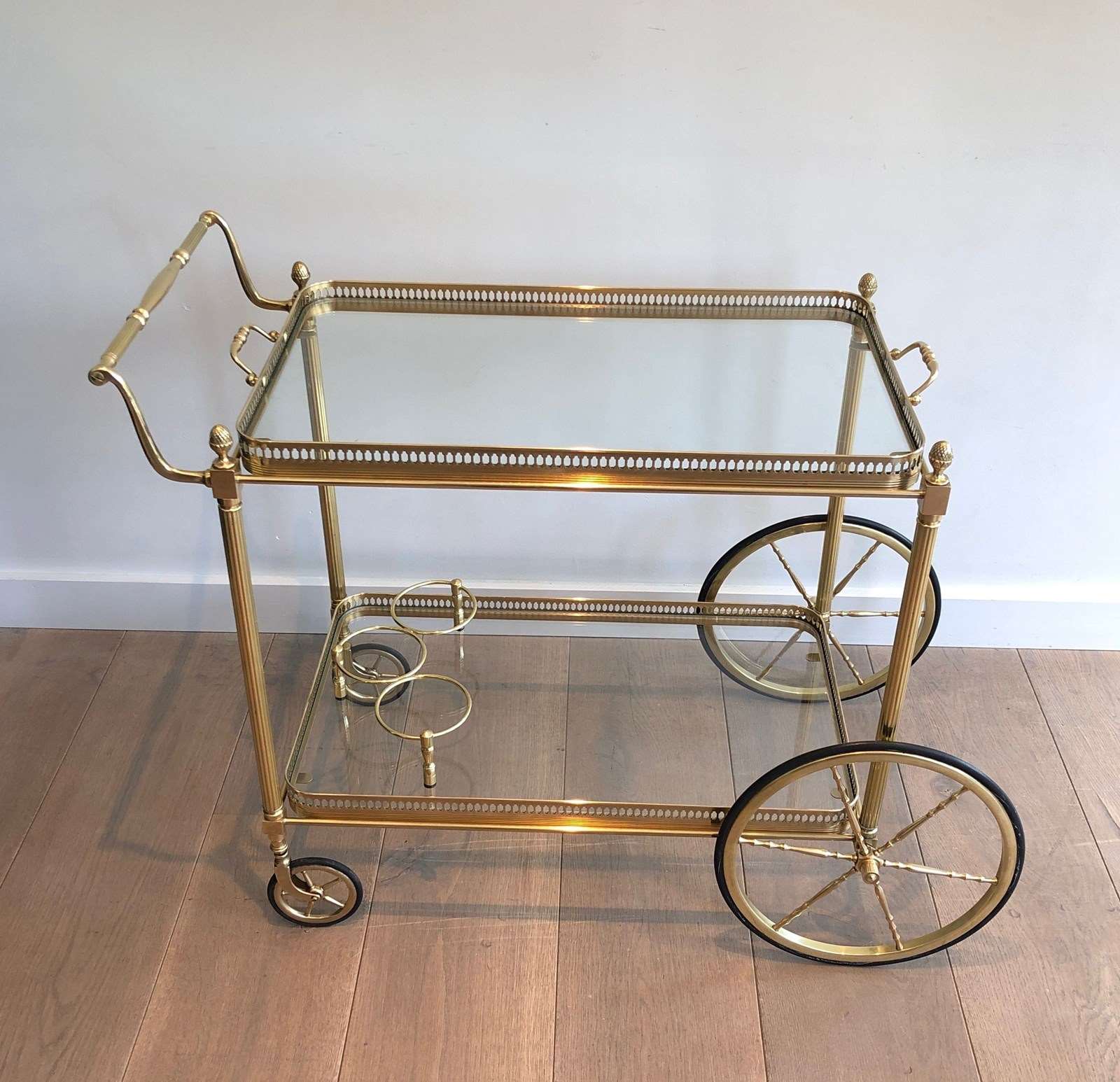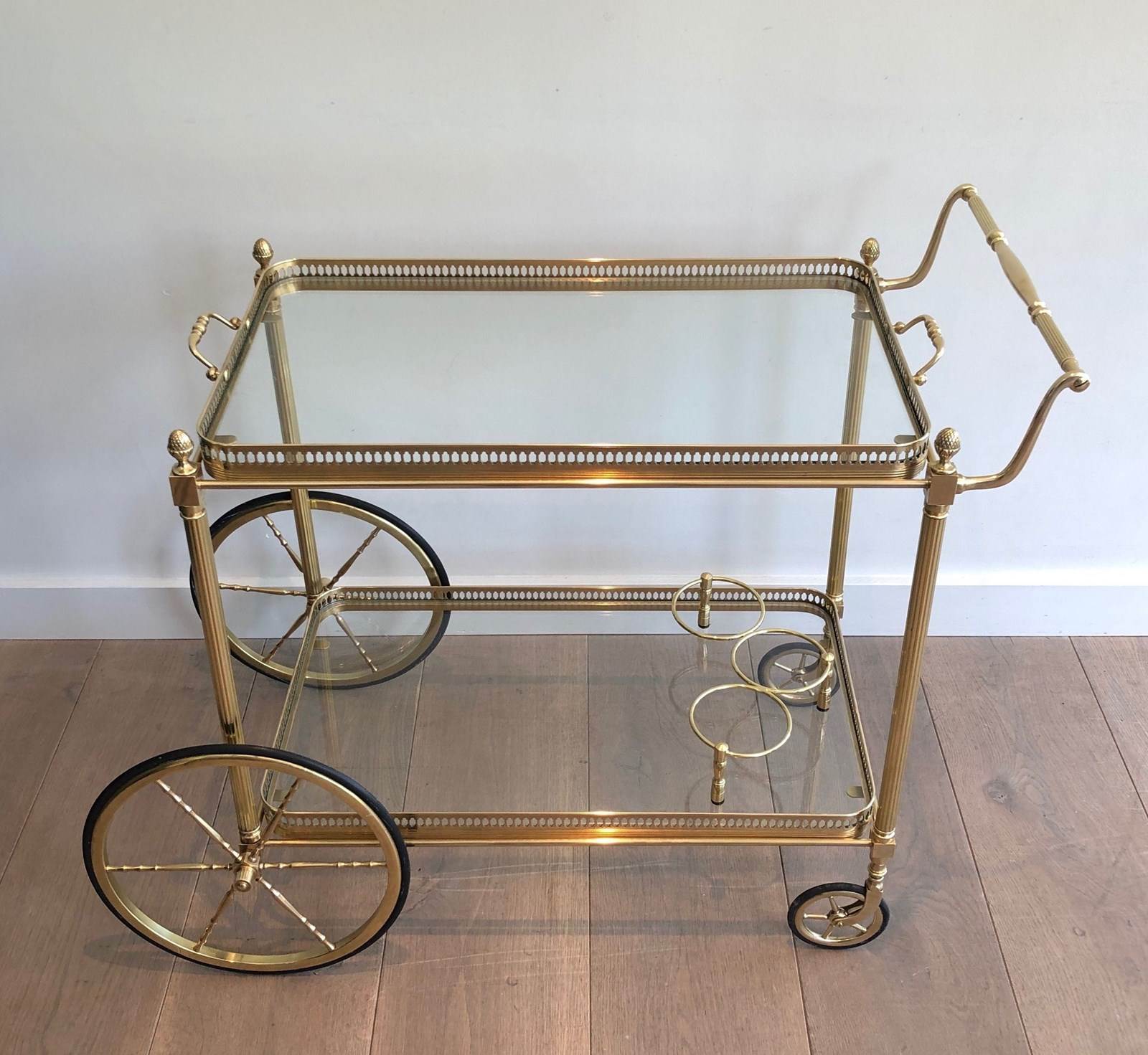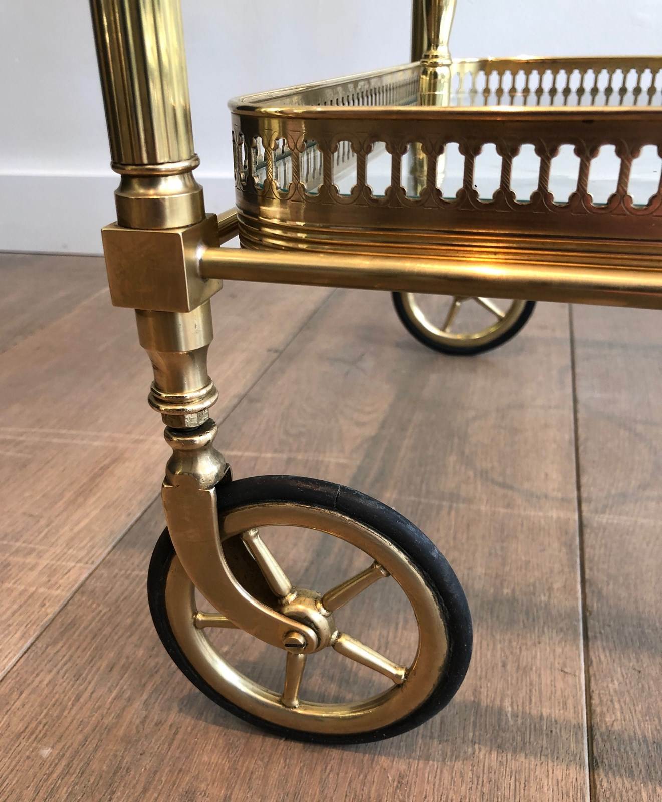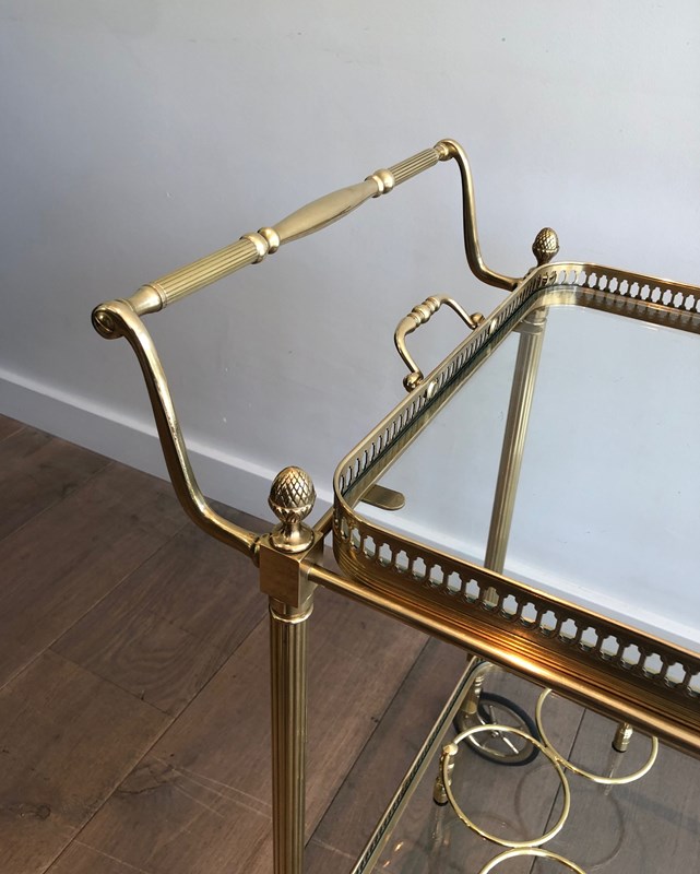 Brass Neoclassical Style Drinks Trolley With Two Removable Trays