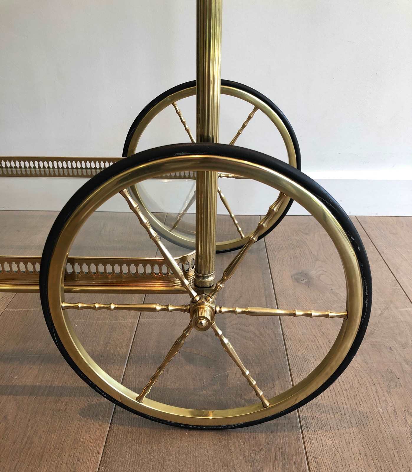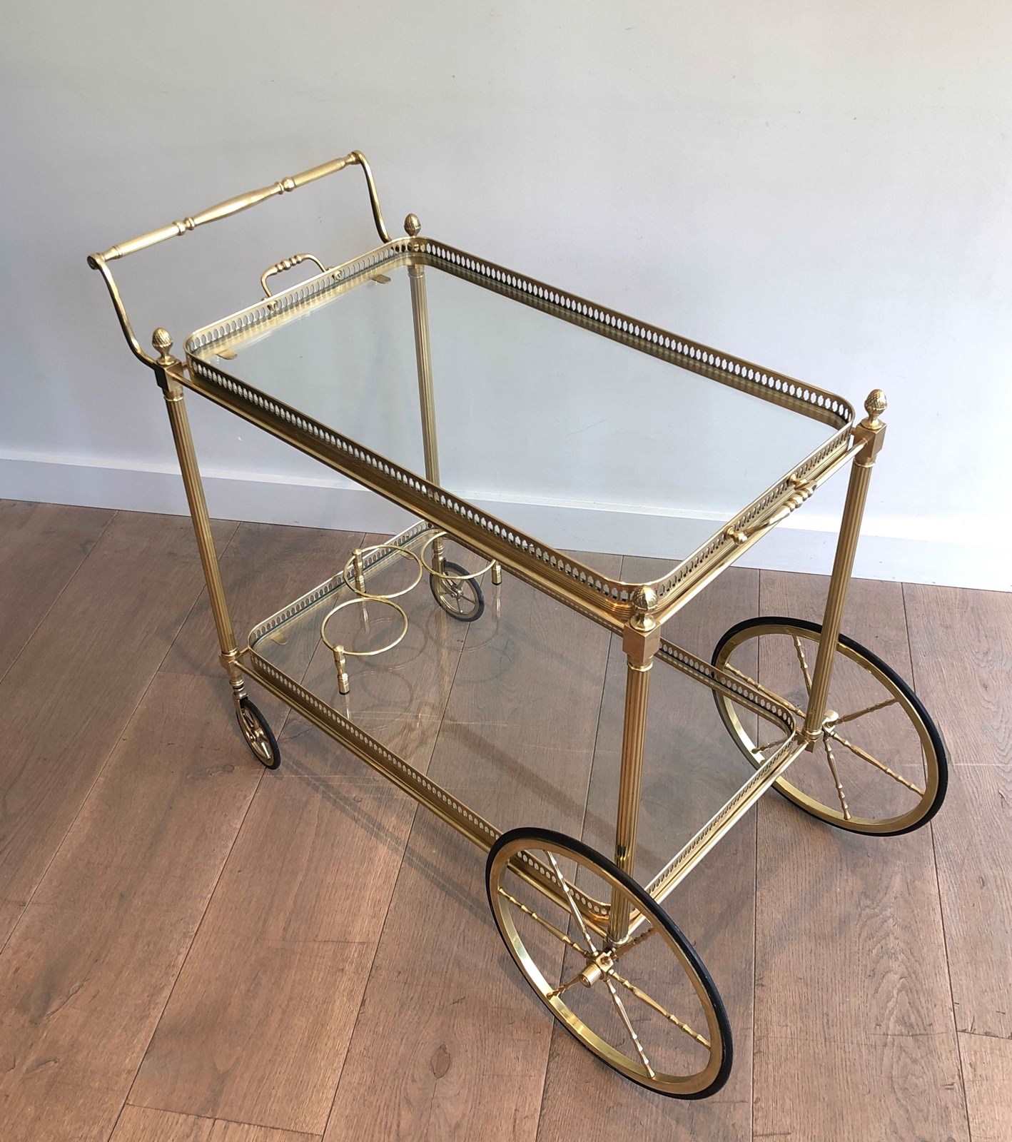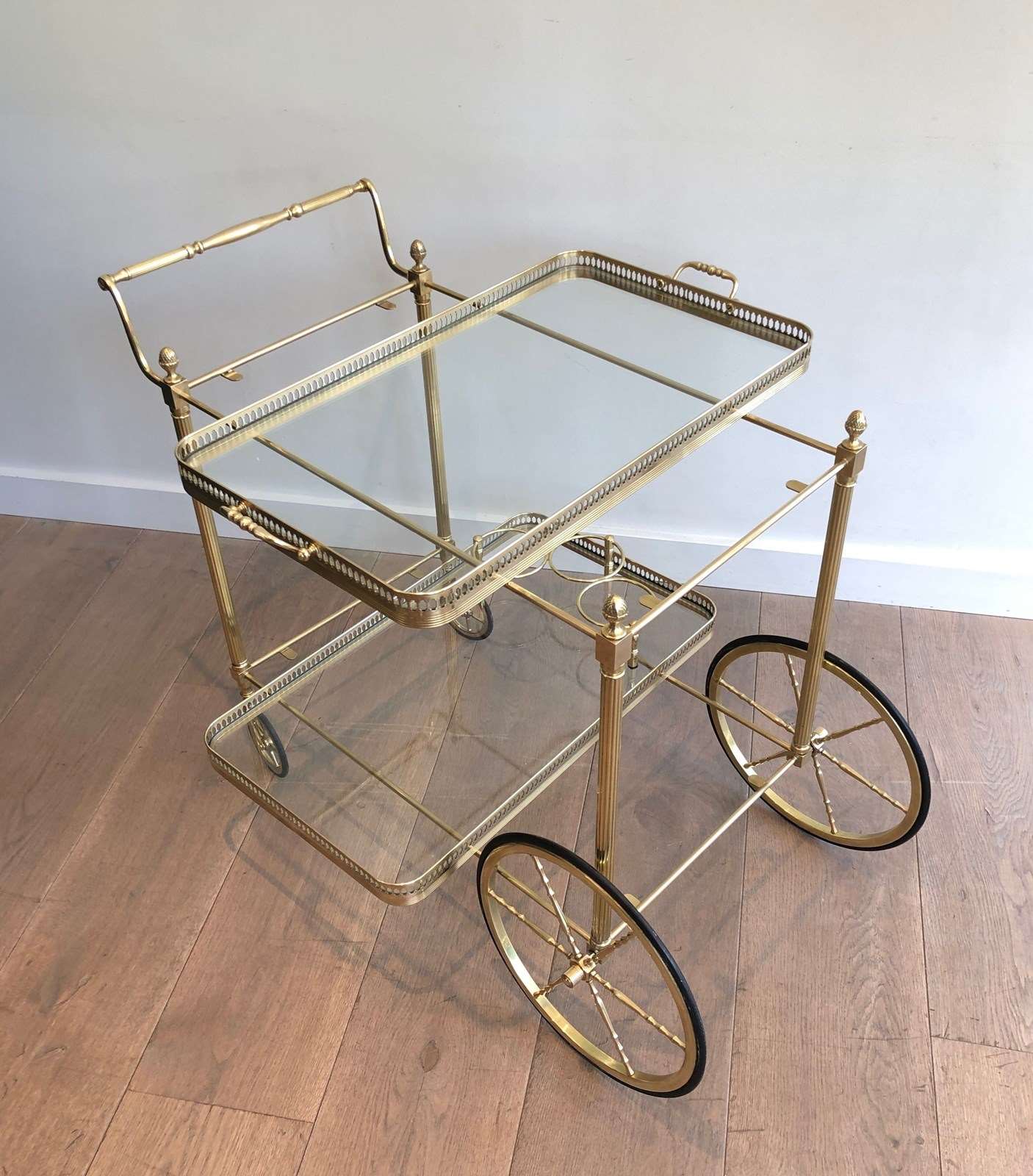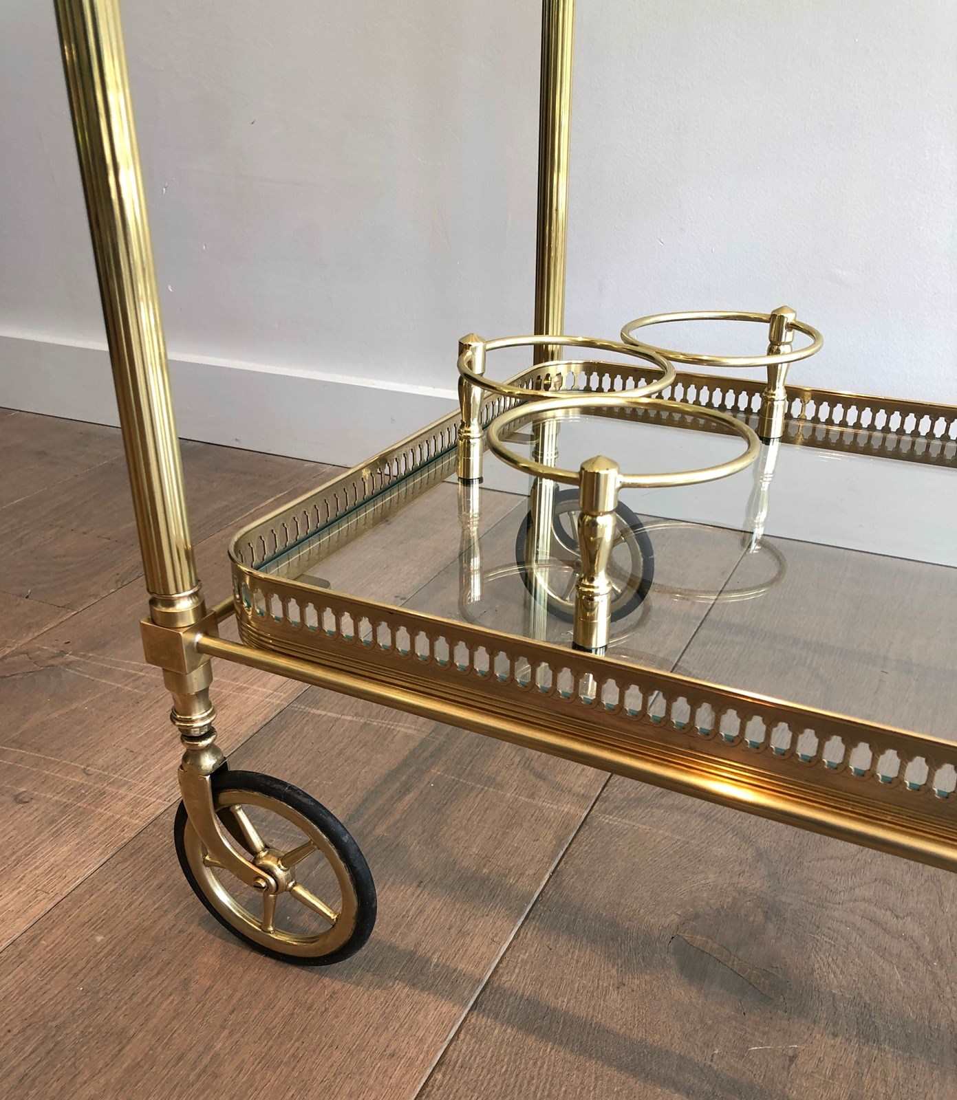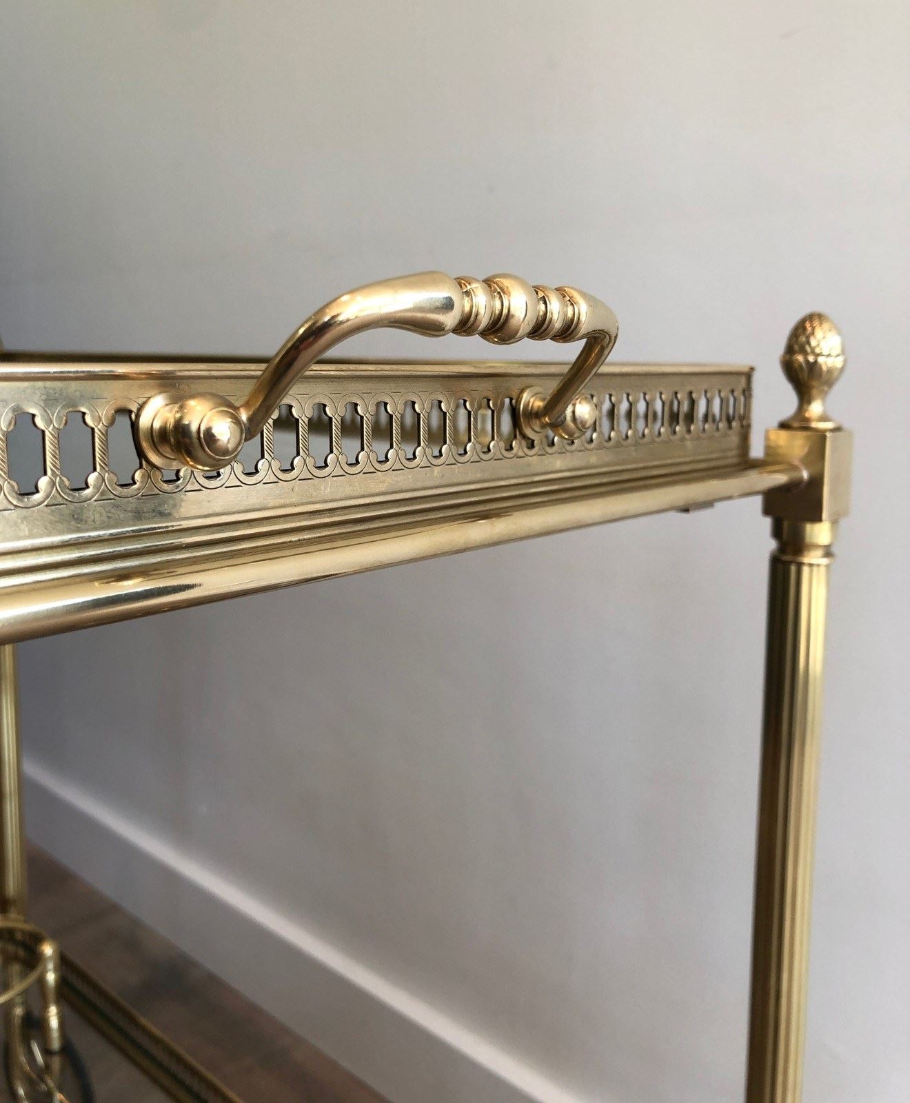 Brass Neoclassical Style Drinks Trolley With Two Removable Trays