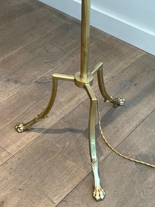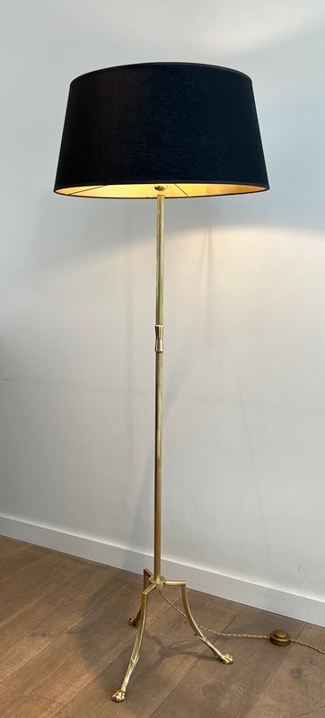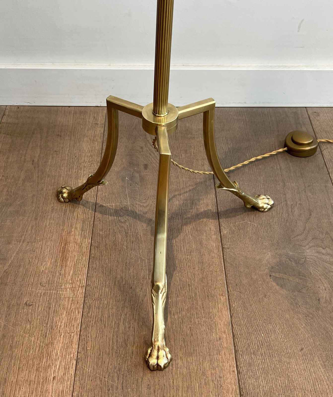 Brass Neoclassical Style Tripode Floor Lamp With Claw Feet. French Work