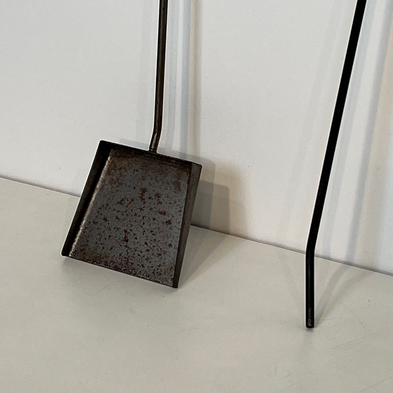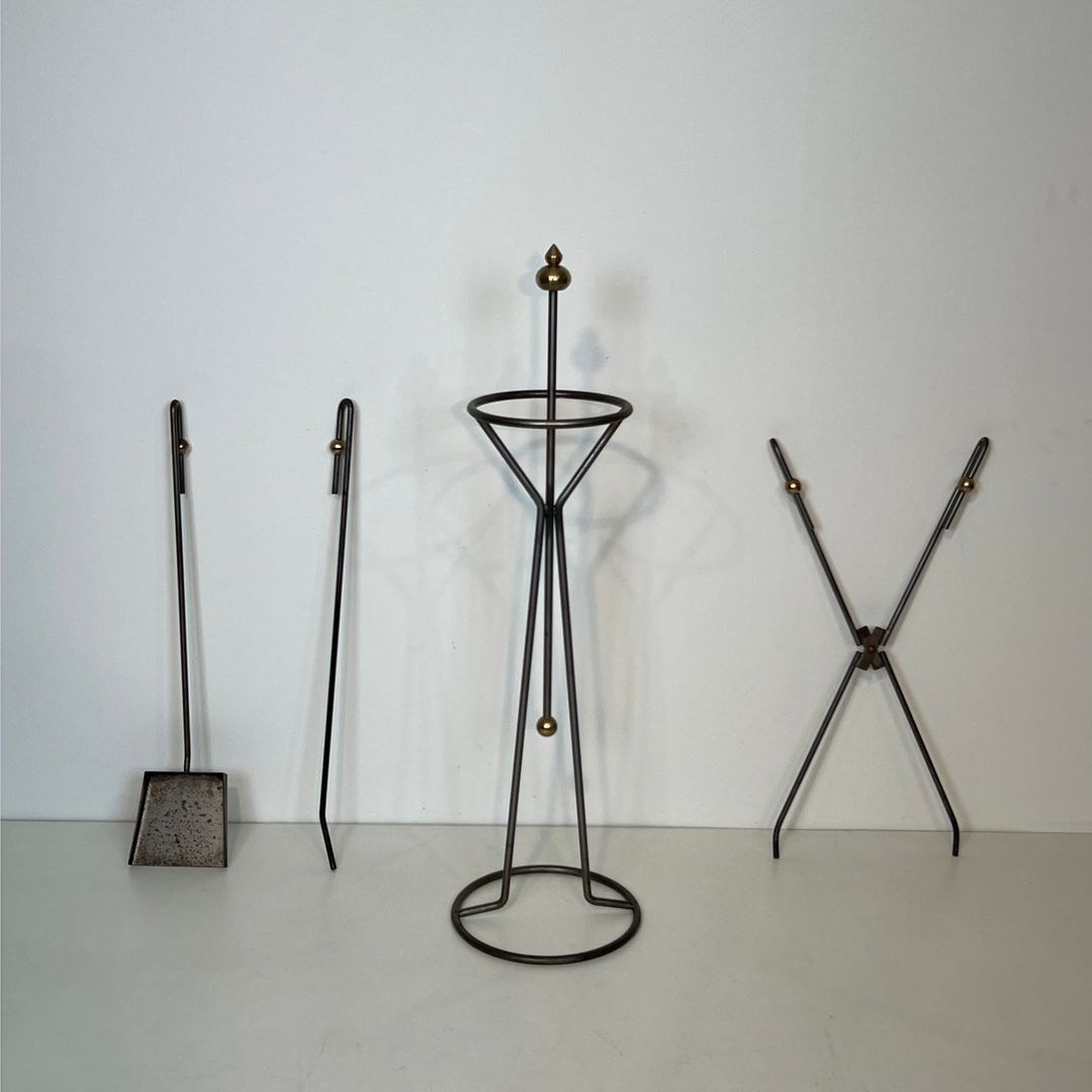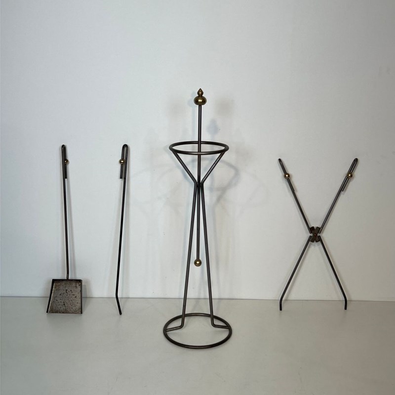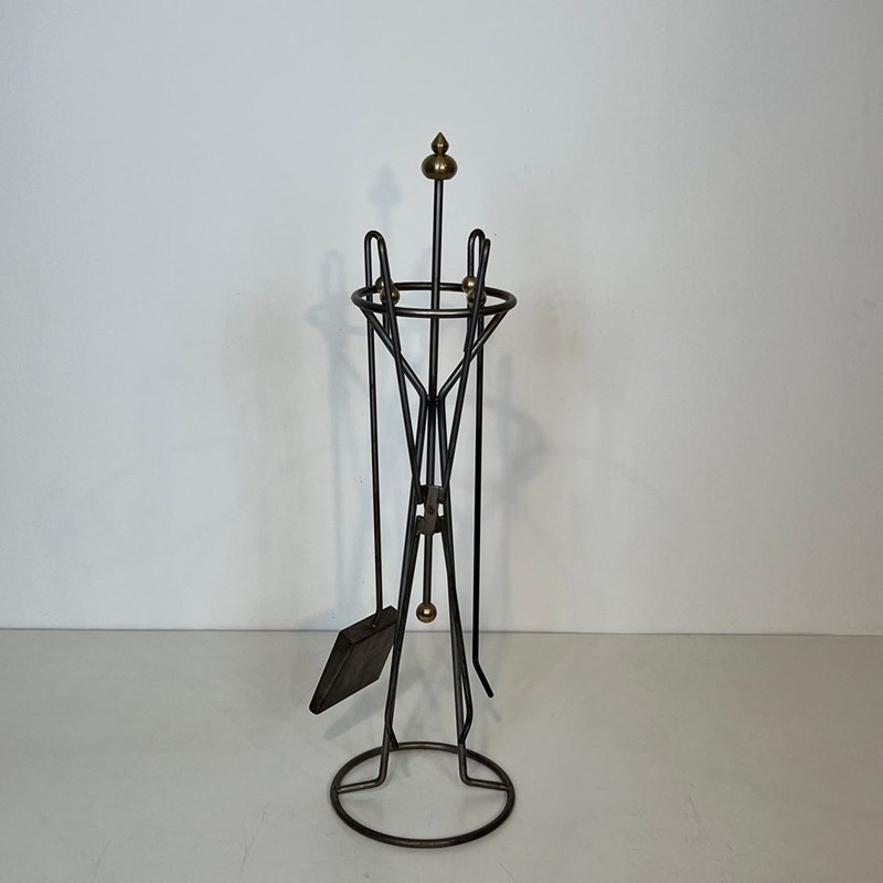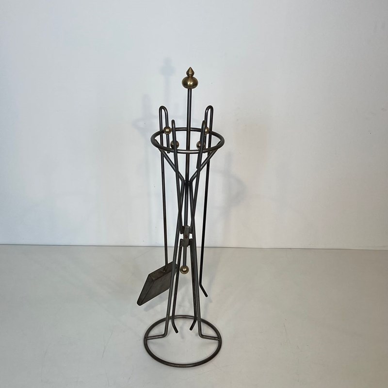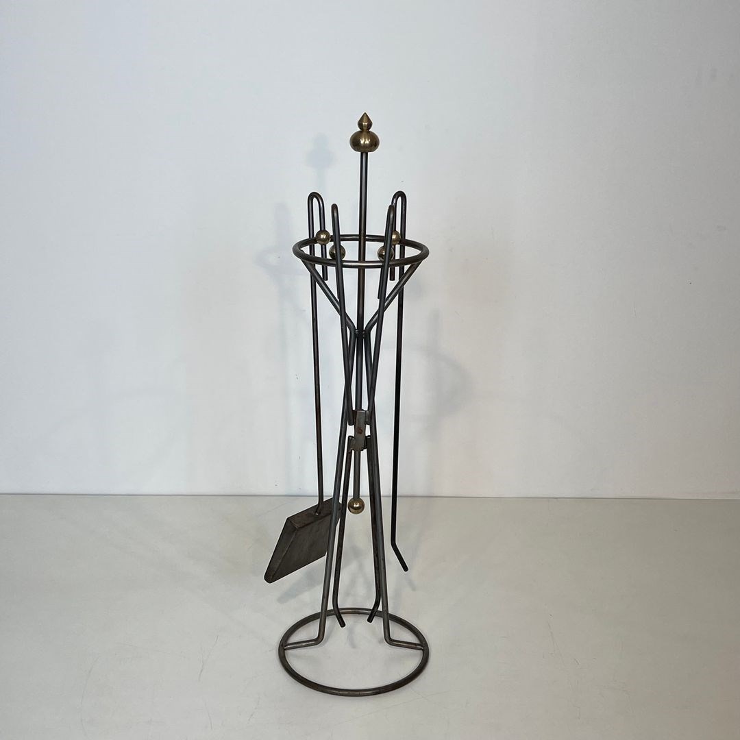 Brushed Steel Design Fireplace Tools. French Work. Circa 1970