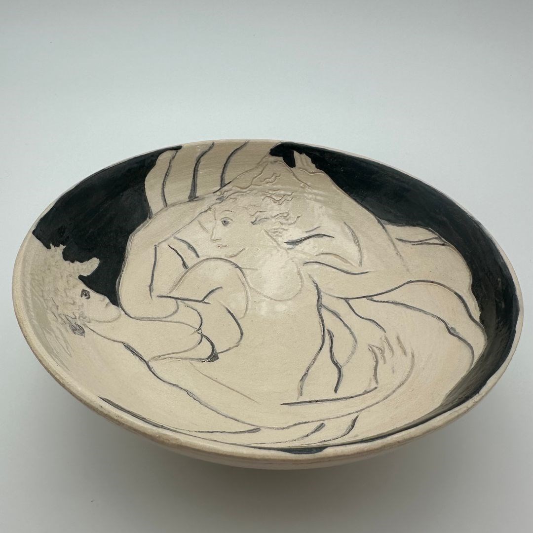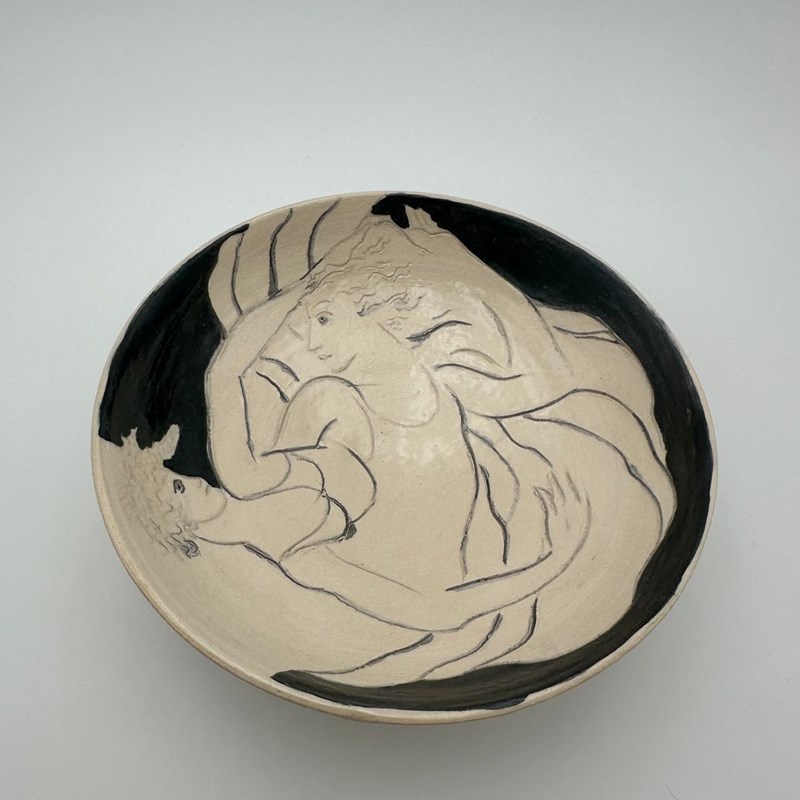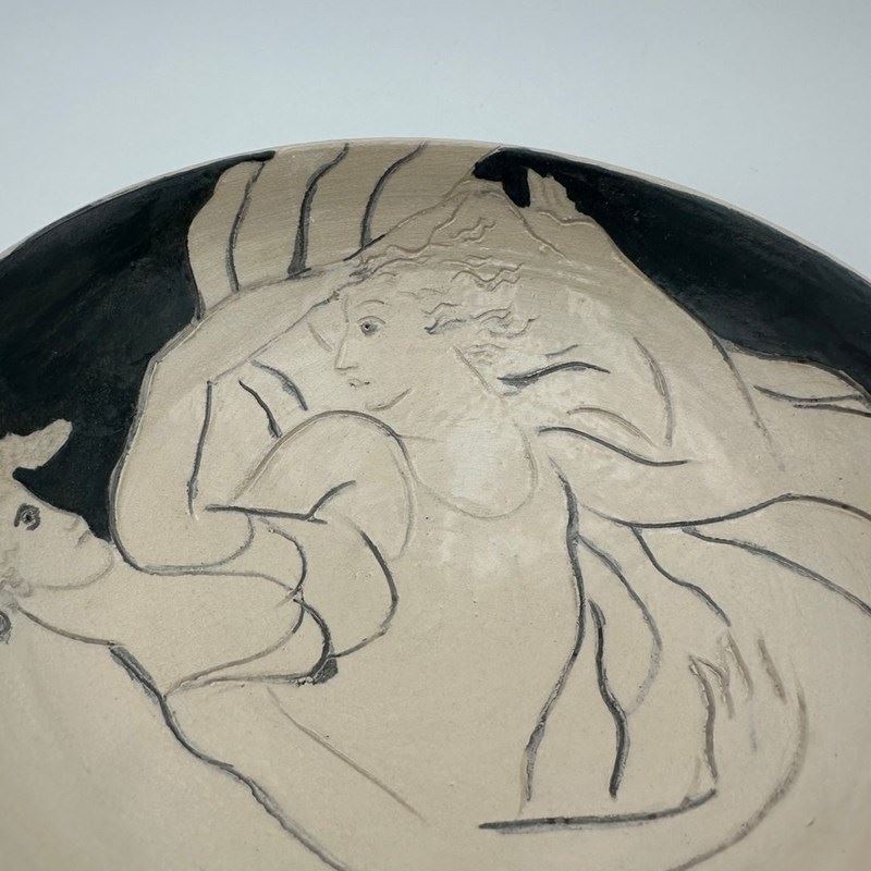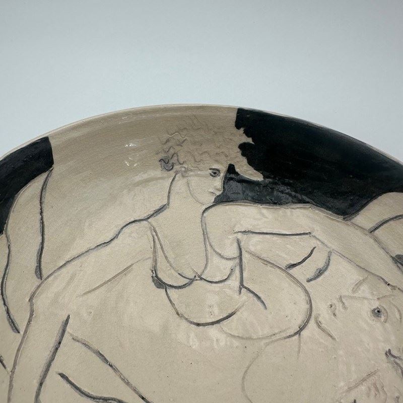 Ceramic Vide-Poche Decorated With A Drawn Representation Of Two Women, Executed