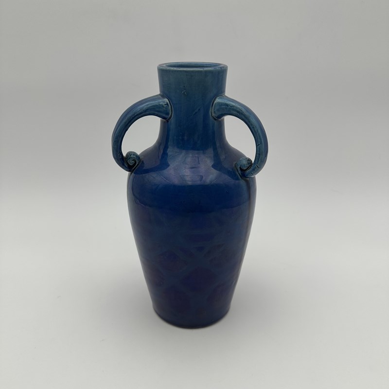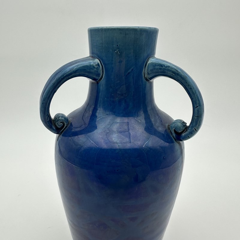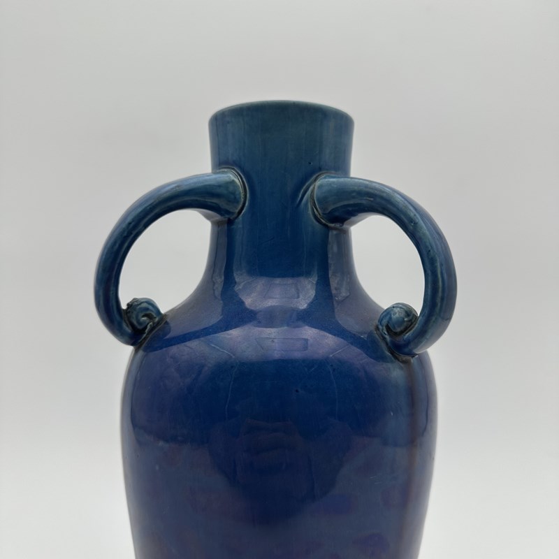 Cobalt Blue Glazed Ceramic Twin-Handled Baluster Vase, 1930S
