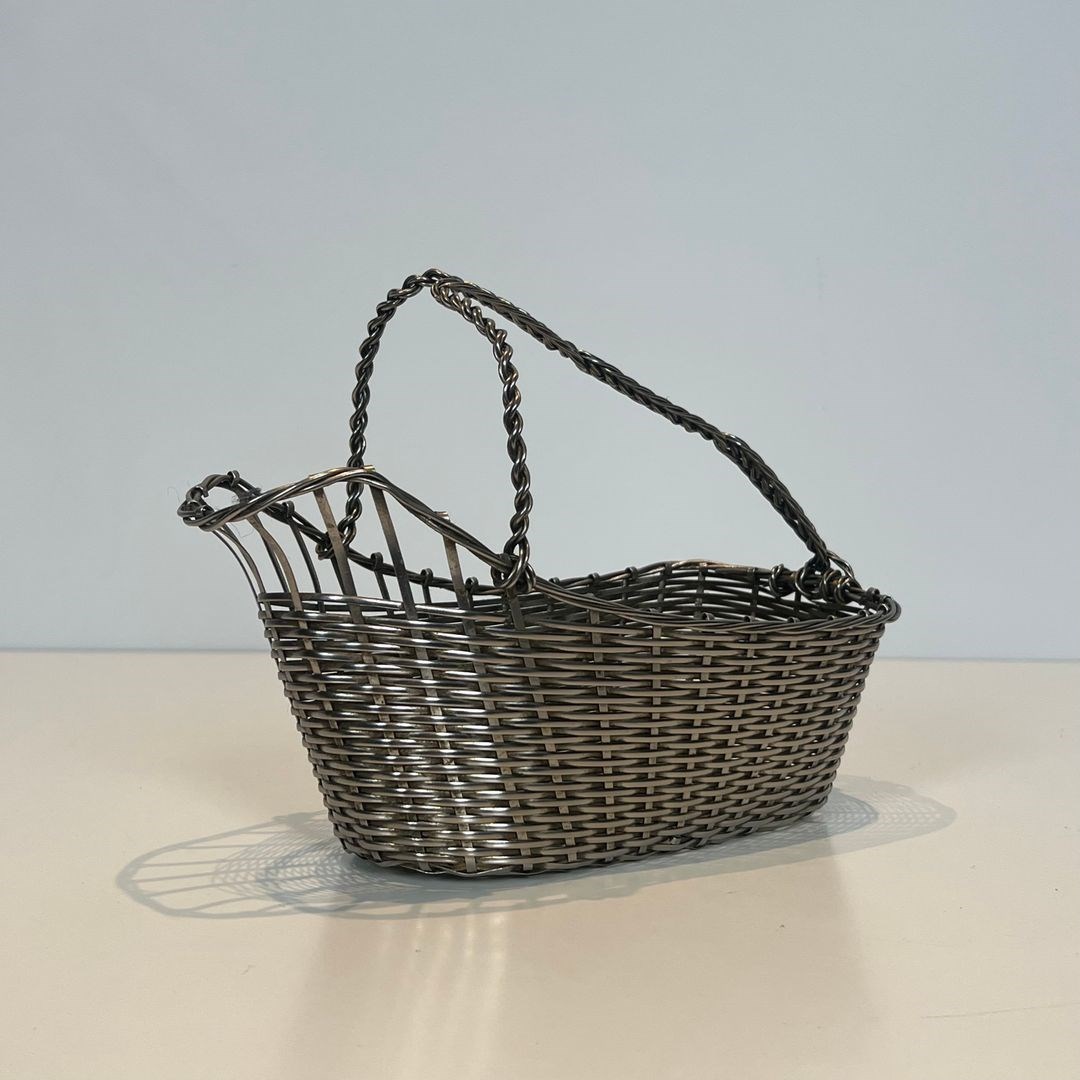 Decanter / bottle holder made of silver-plated metal wire. French work. Circa 1900
