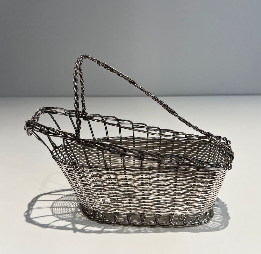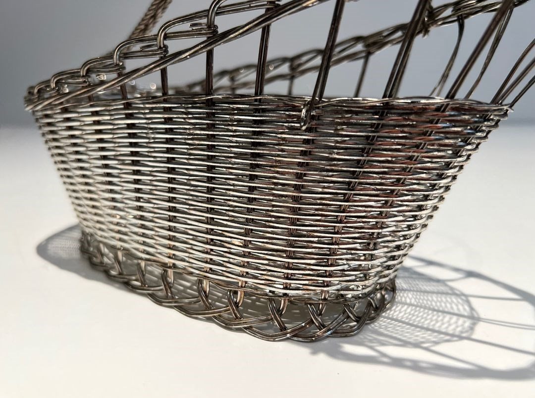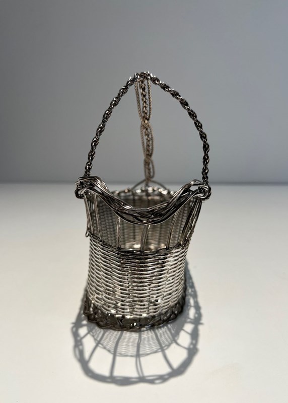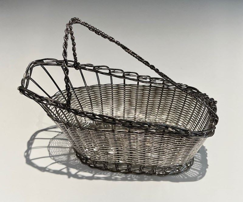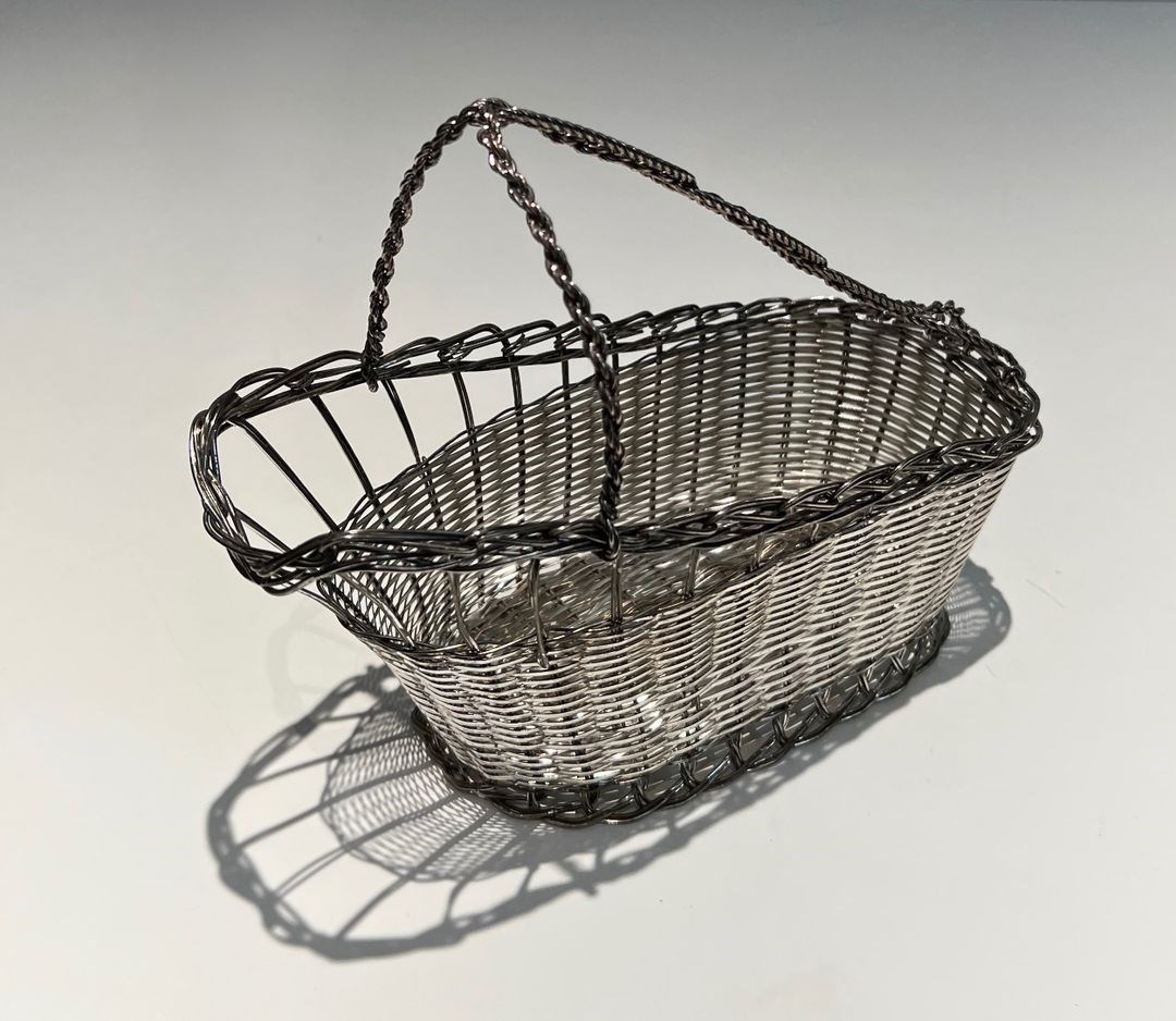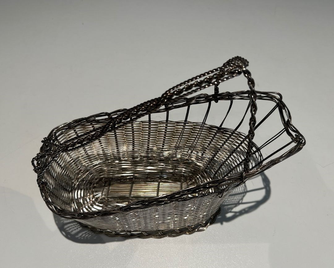 bottle holder made of silver-plated metal wire. French work. Circa 1900Decanter