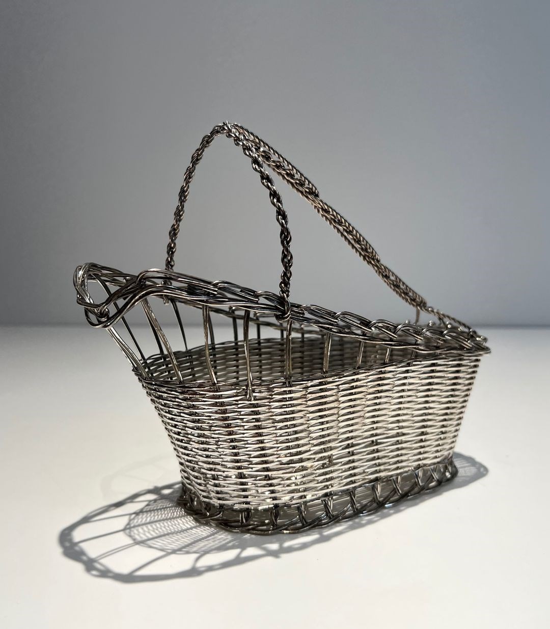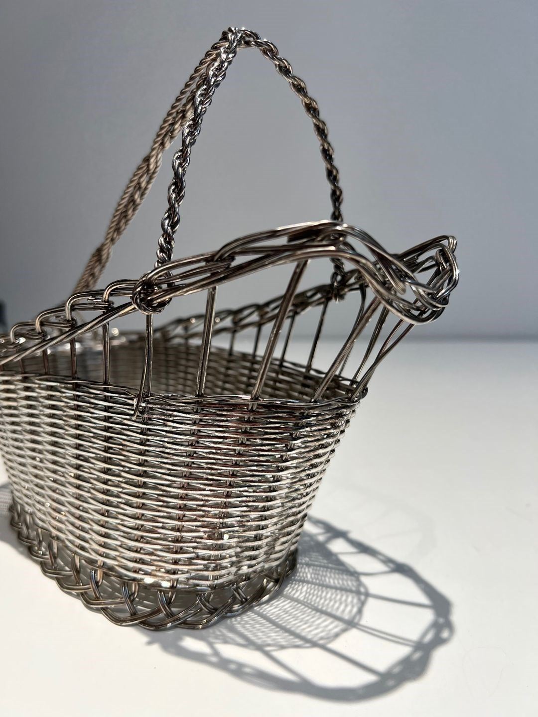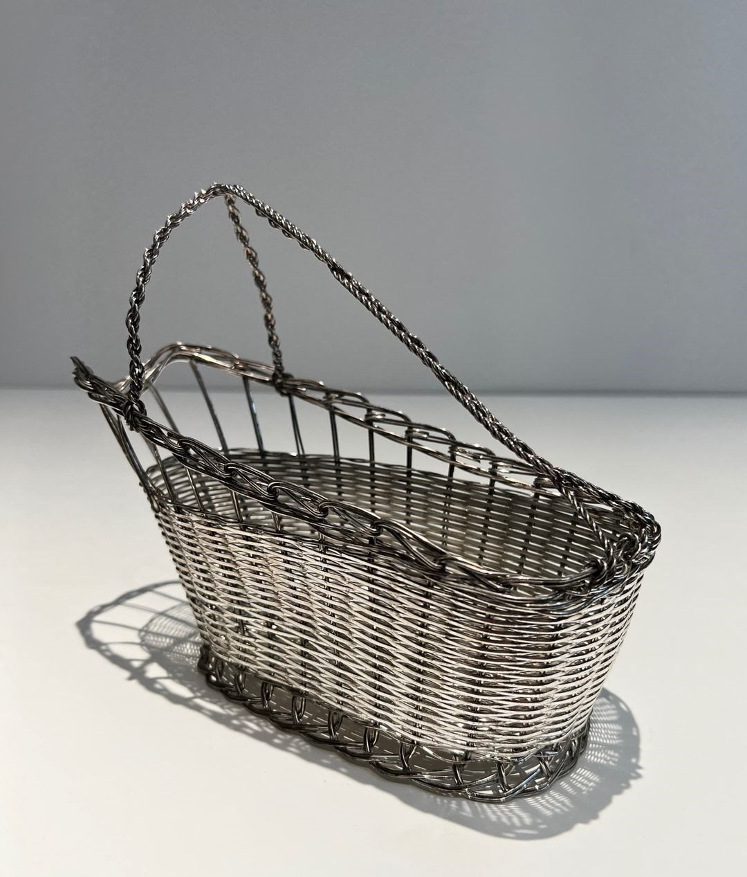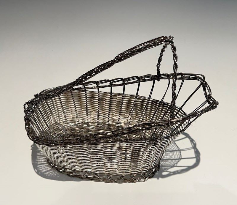 bottle holder made of silver-plated metal wire. French work. Circa 1900Decanter