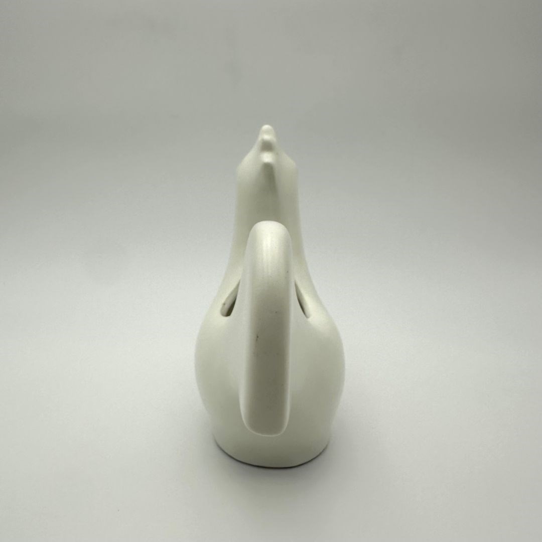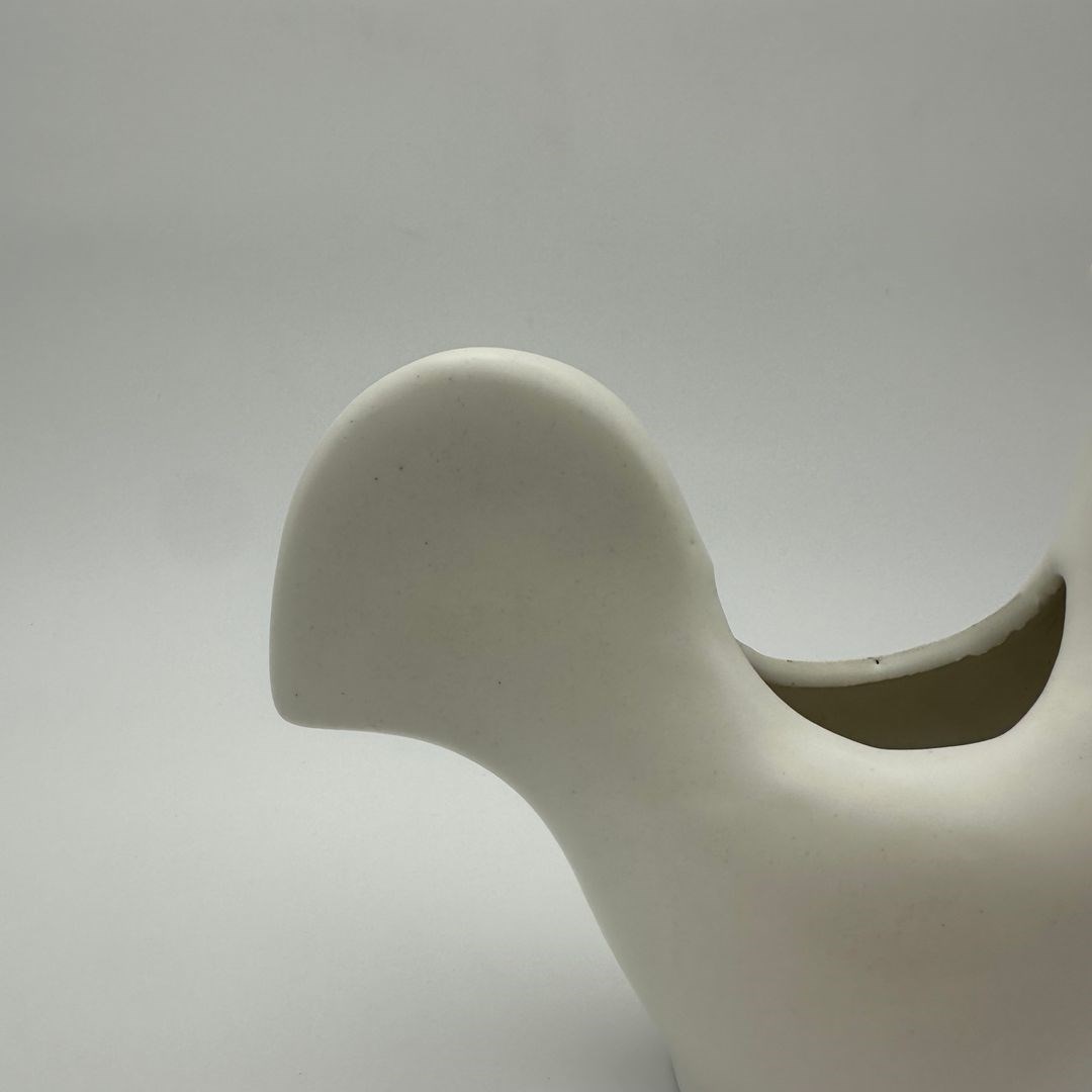 Decorative white ceramic rooster, made in the style of Georges Jouve, renowned for his sculptural and refined forms.