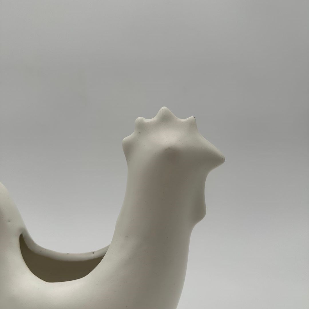 Decorative White Ceramic Rooster, Made In The Style Of Georges Jouve, Renowned F