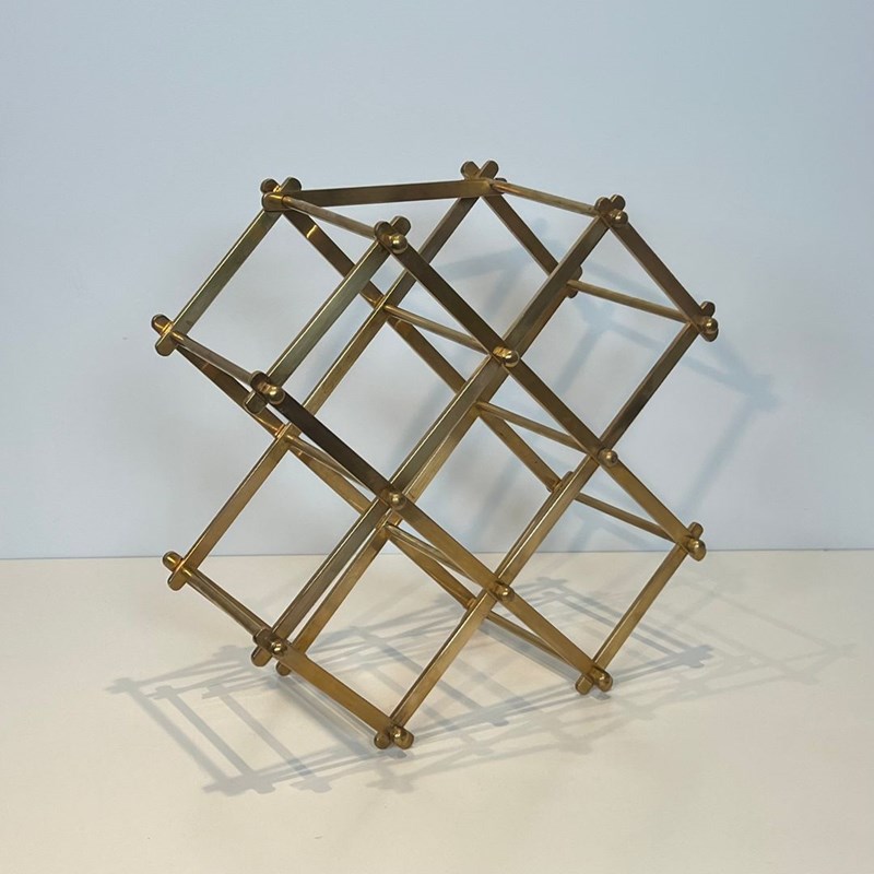 Folding brass bottles holder that can receive 6 bottles. French work. Circa 1940