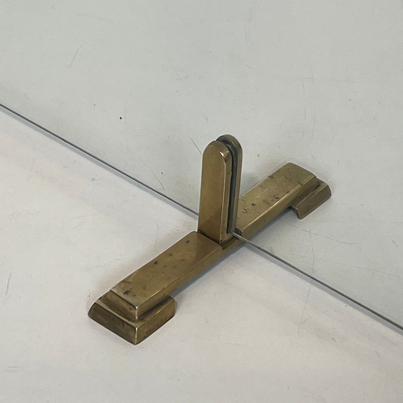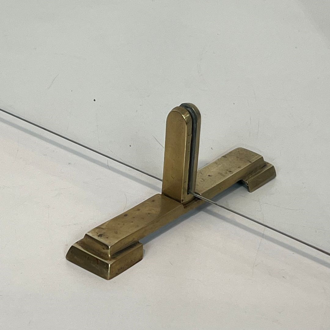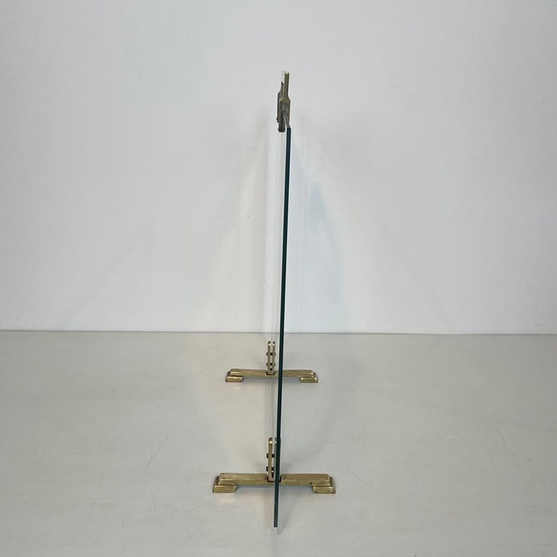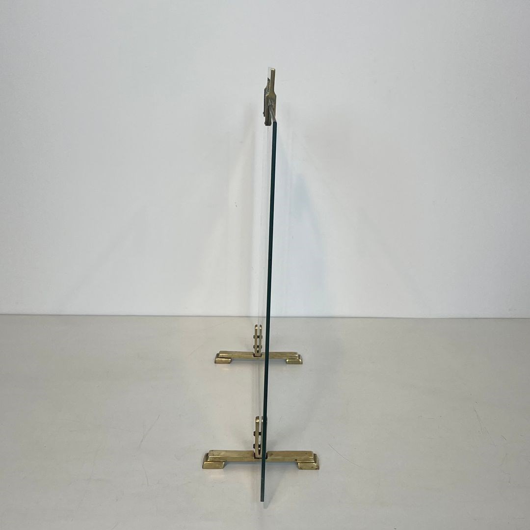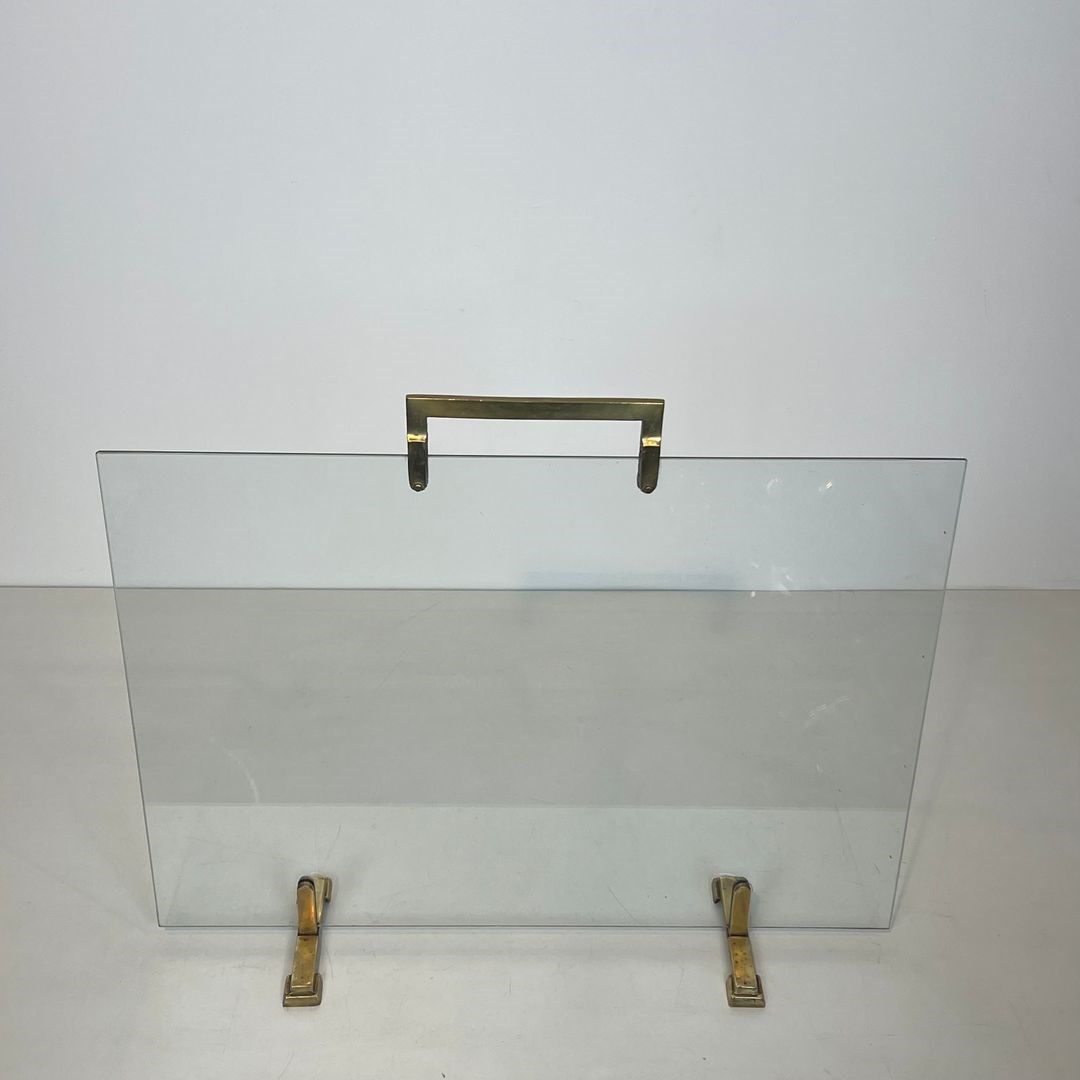 Glass and brass fireplace screen with brass feet. French work. Circa 1970