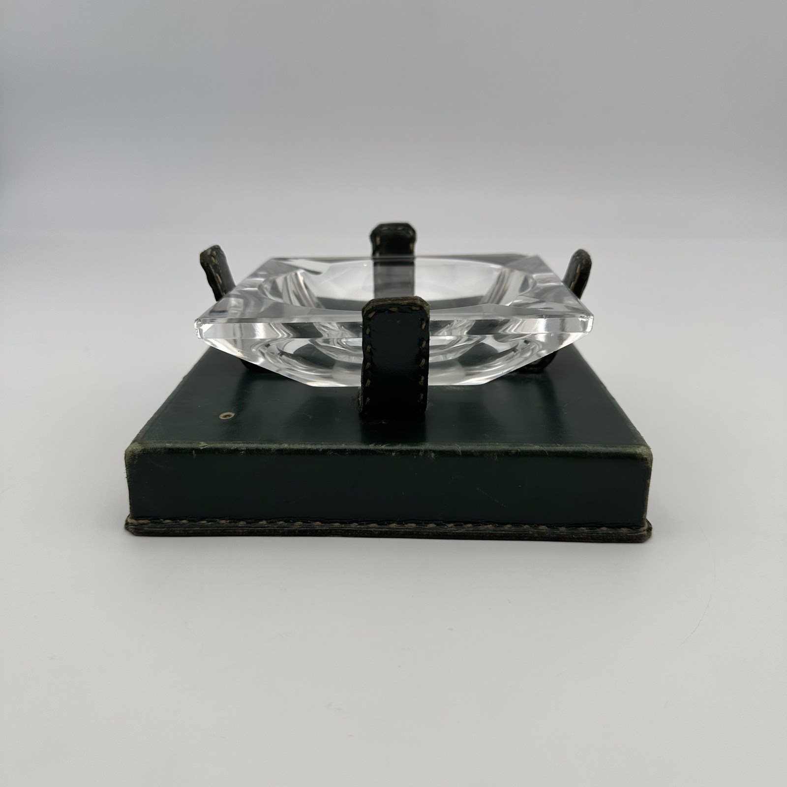 Green Leather And Crystal Ashtray In The Style Of Jacques Adnet, 1950S