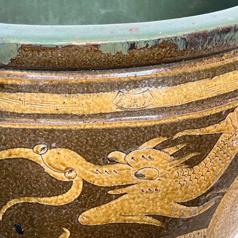 Important Chinese Polychrome Glazed Terracotta Jardinière Decorated With Dragons