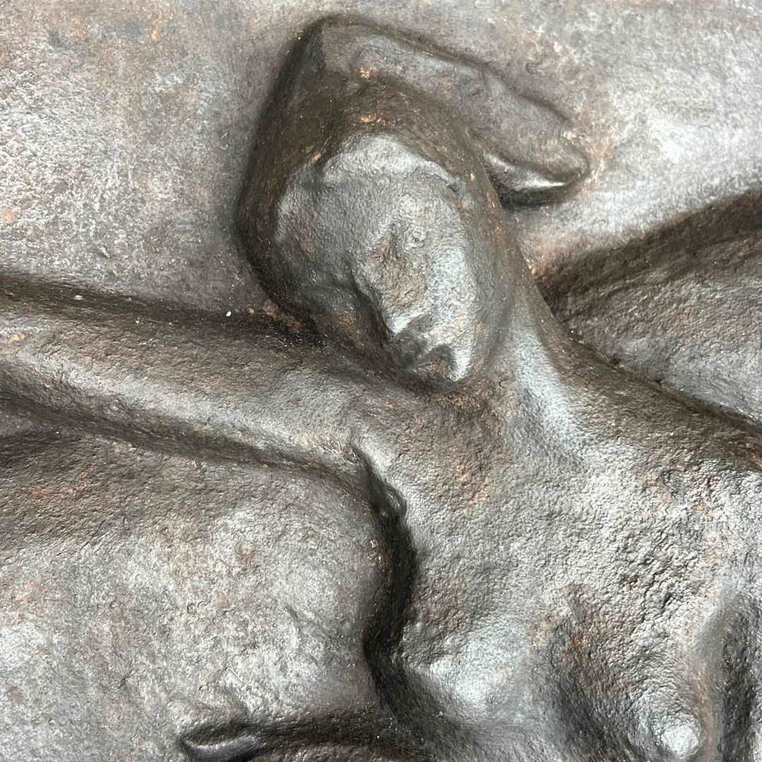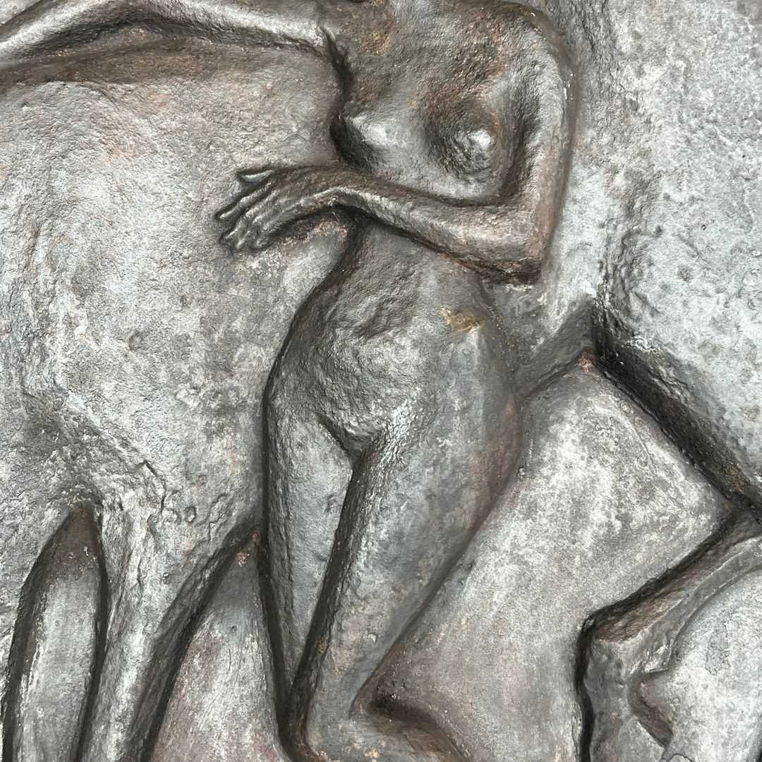 Large Cast Iron Fireback Representing A Nude Woman Caressing Her Horse
