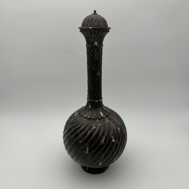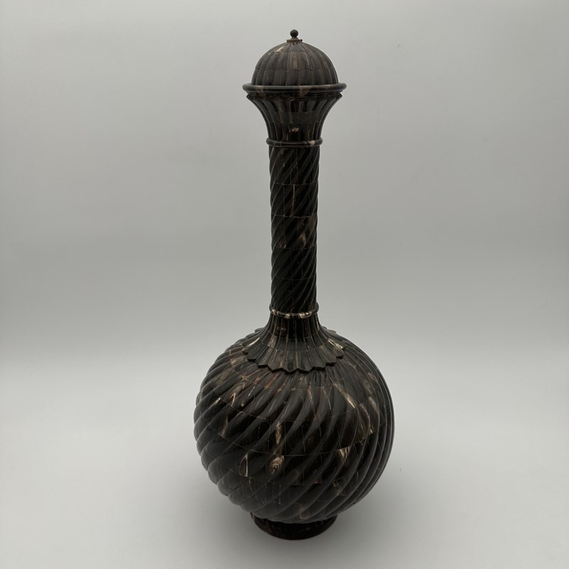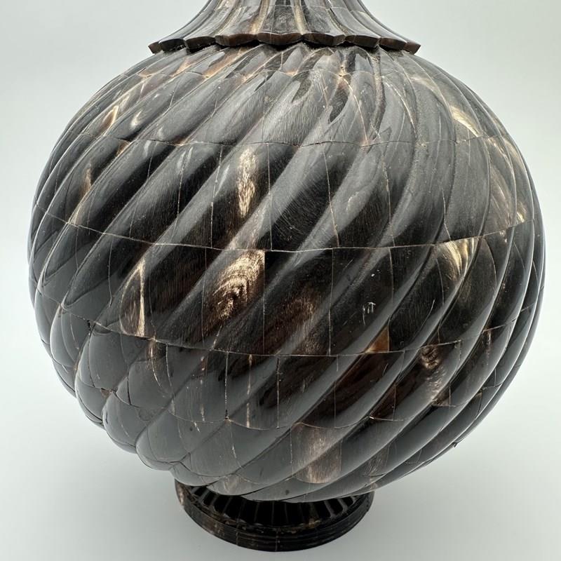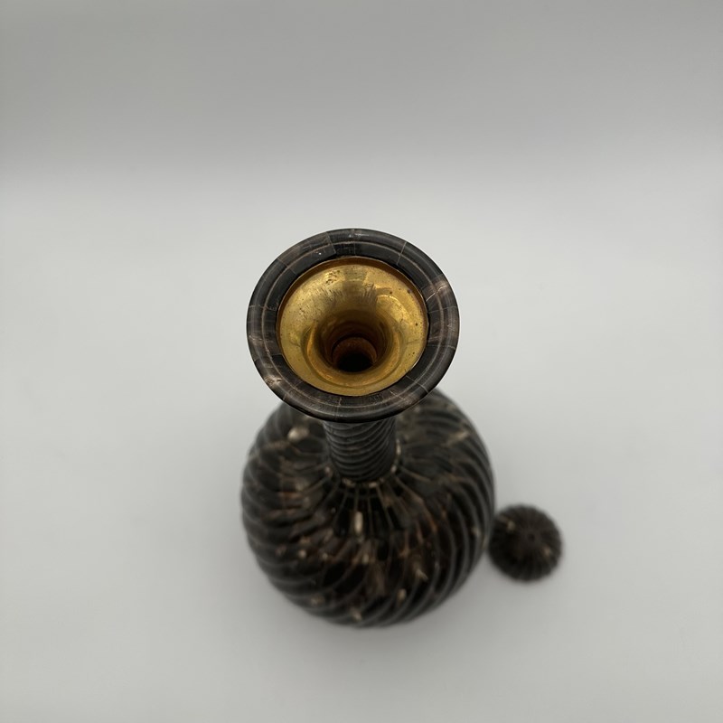 Large Ceremonial Bottle In Twisted Horn Veneer And Brass, 1980S