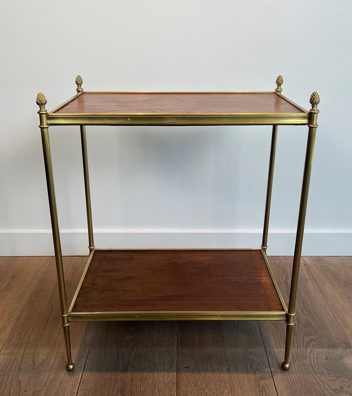 Mahogany and brass side table with 2 tiers. French work by Maison Jansen. Circa 1940