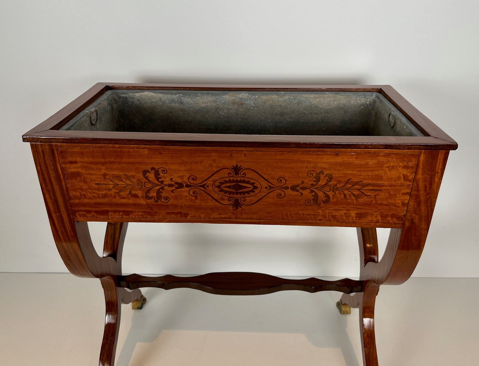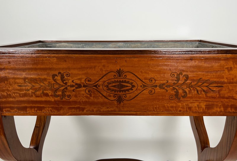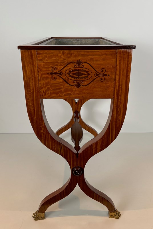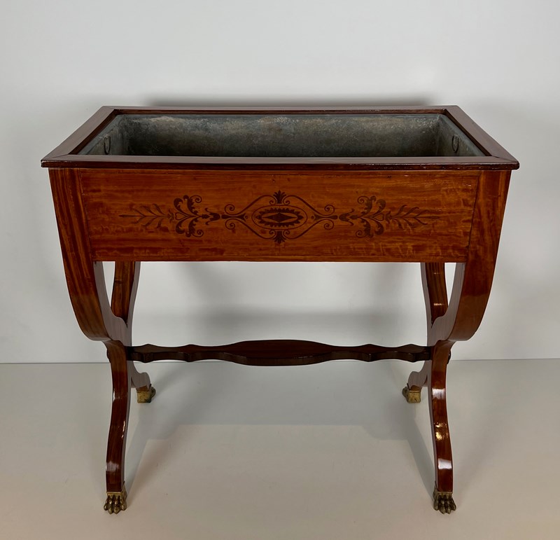 Mahogany Planter Inlaid With Amaranth, Featuring A Zinc Tub