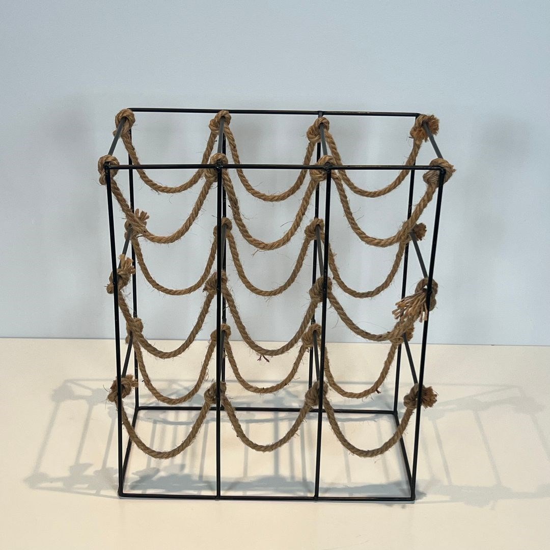 Metal and Rope bottles holder. French work. Circa 1970