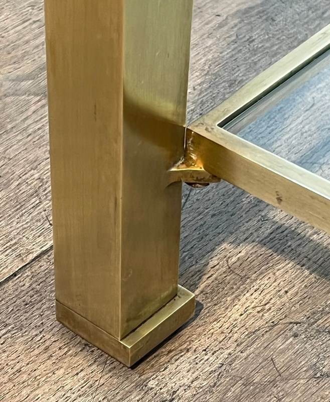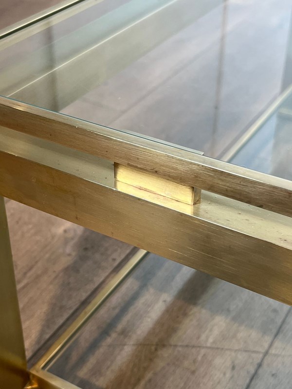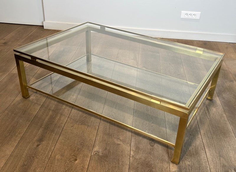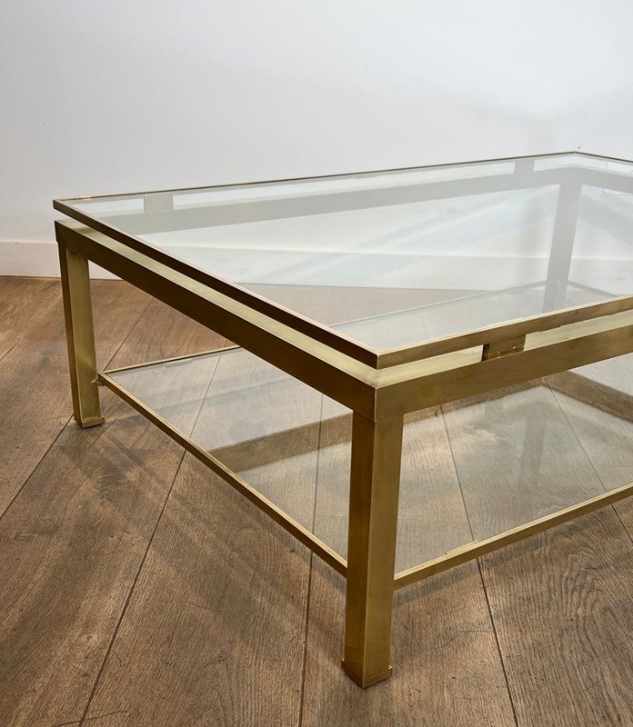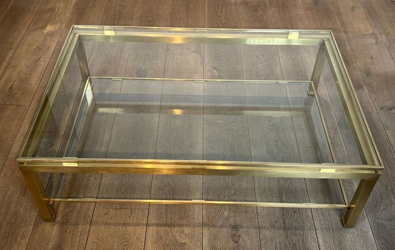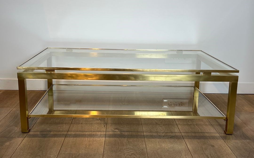Modernist Brass Coffee Table With Glass Shelves