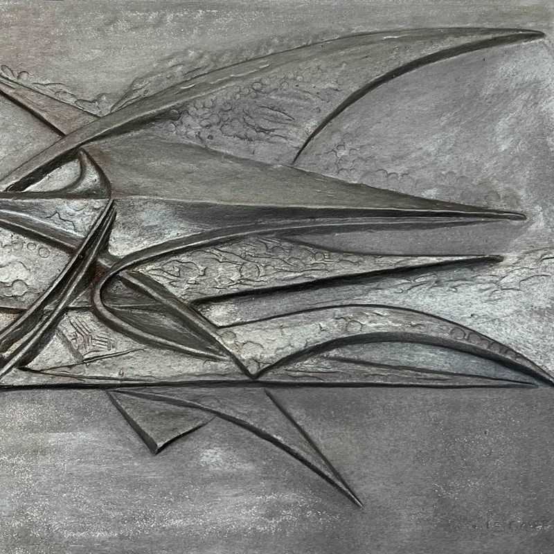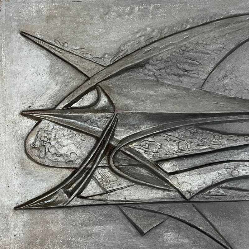 Modernist Cast Iron Fireback. Signed G Lecoff? by foundery Stern. French. Circa 1950
