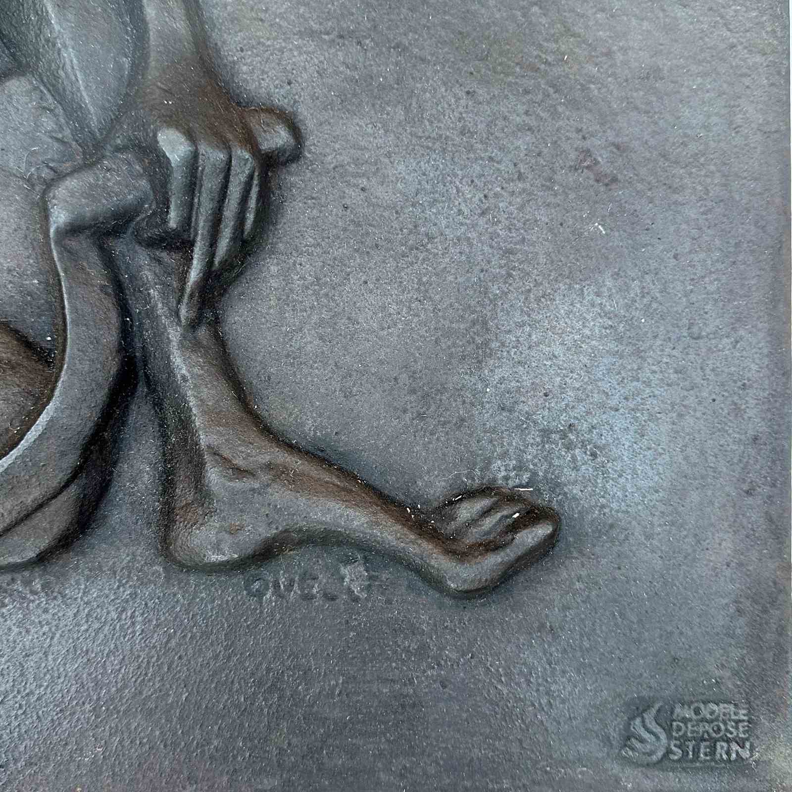 Modernist Cast Iron Fireback Representing A Nude Woman