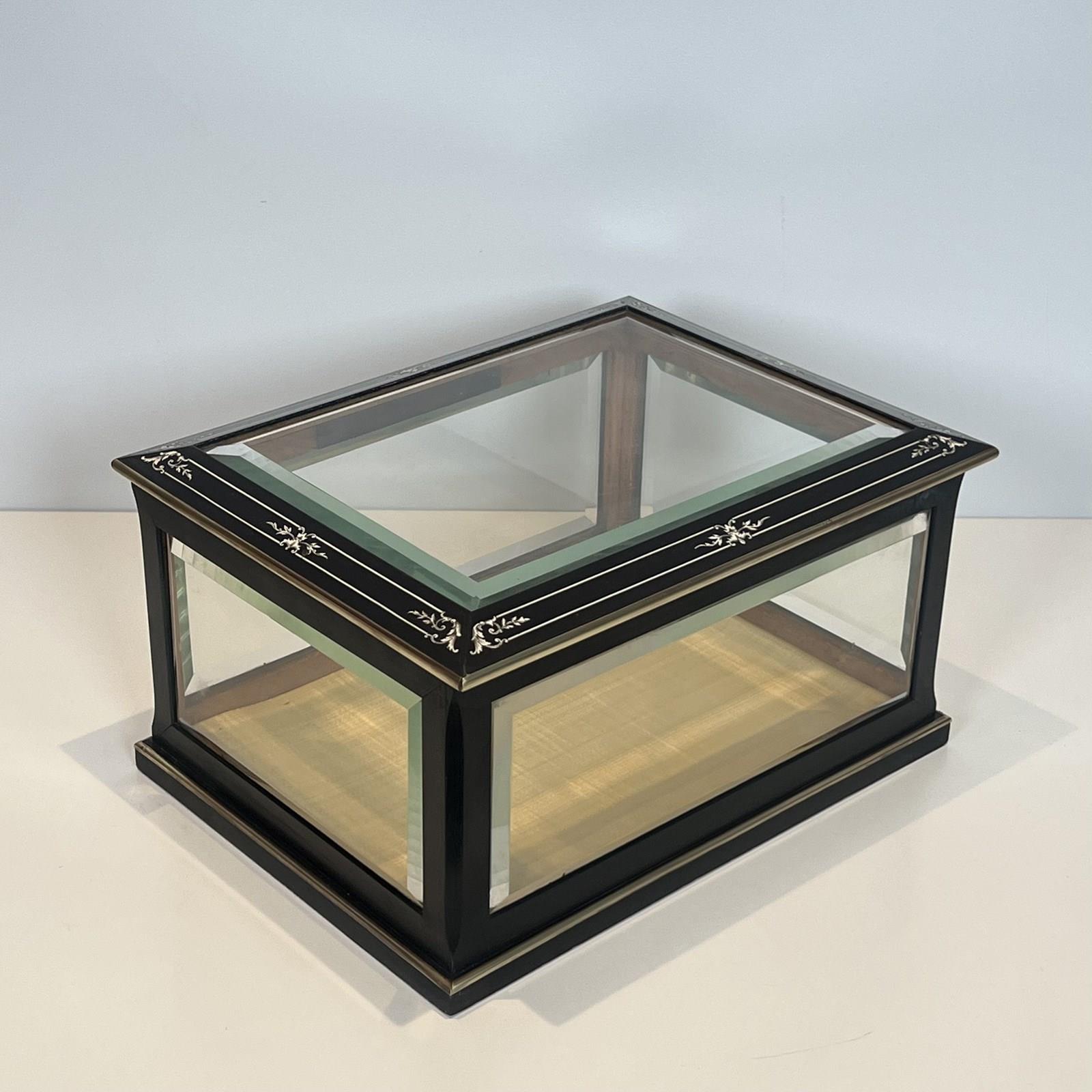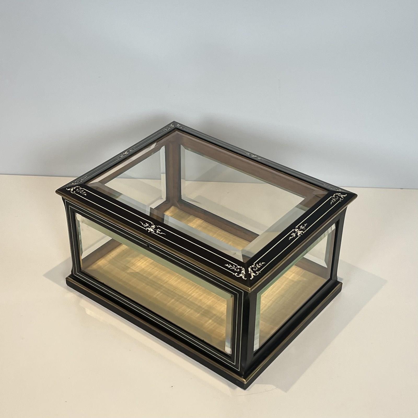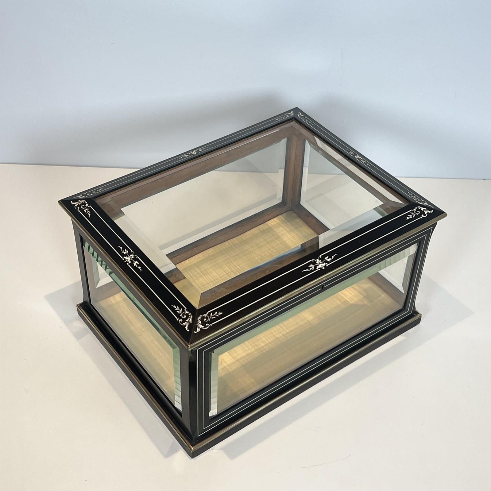 Napoleon III Jewelry Box In Black Lacquered Wood With Beveled Glass Inlaid With