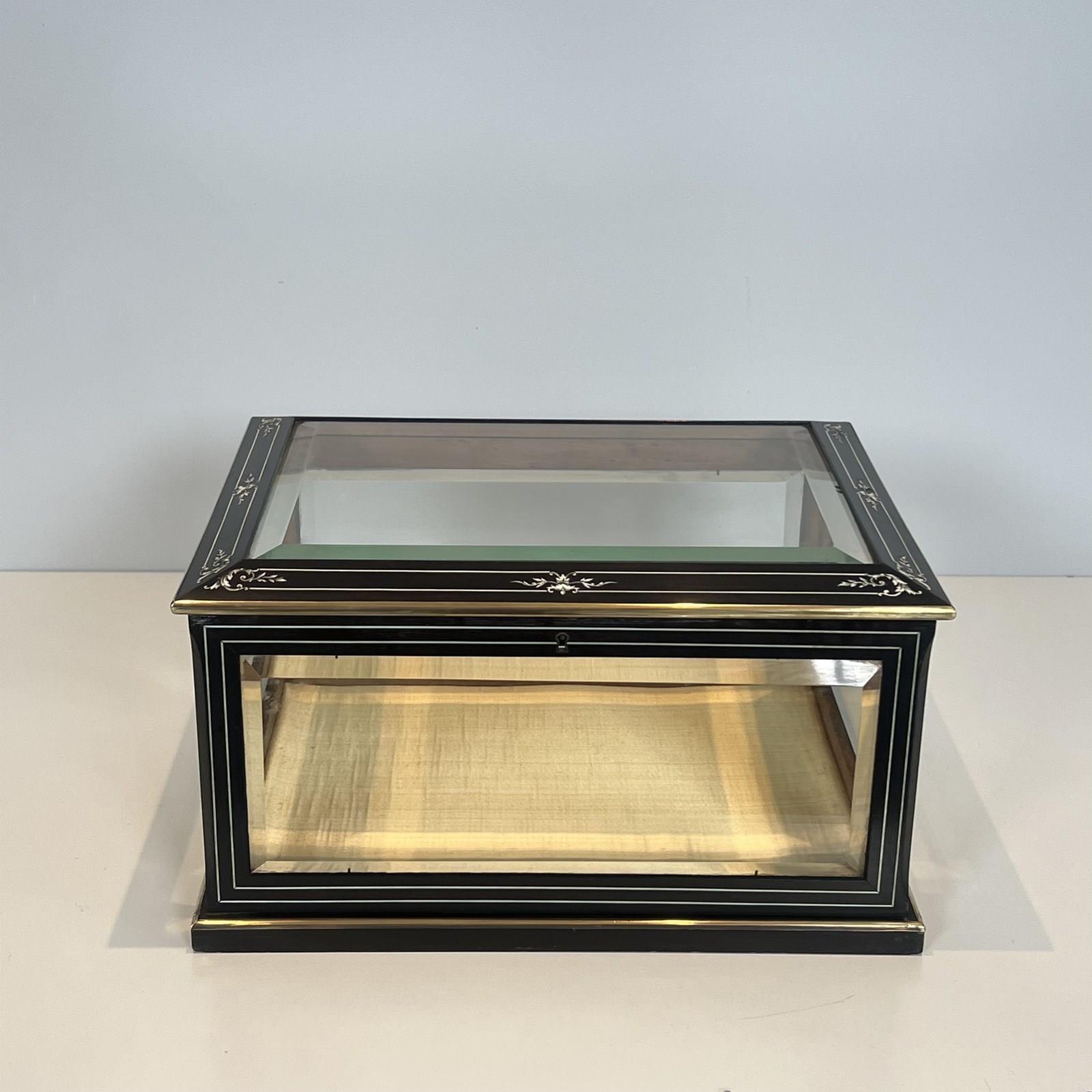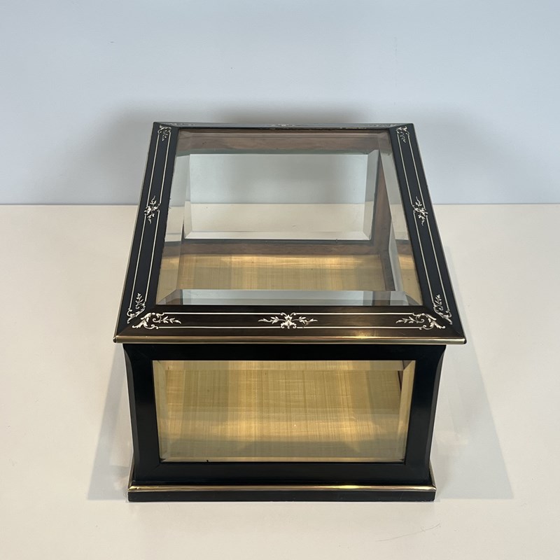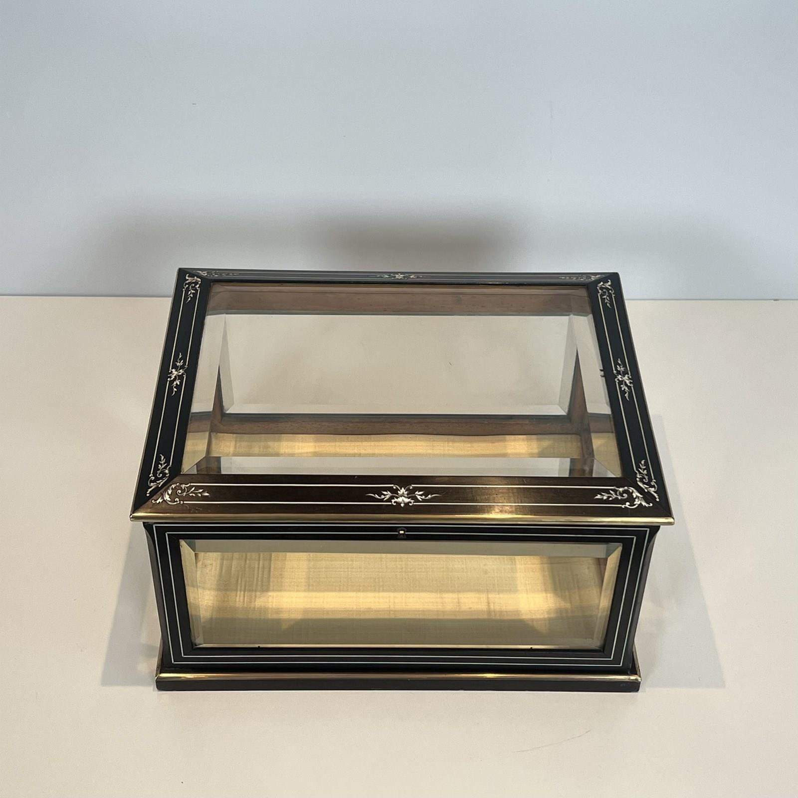Napoleon III Jewelry Box In Black Lacquered Wood With Beveled Glass Inlaid With