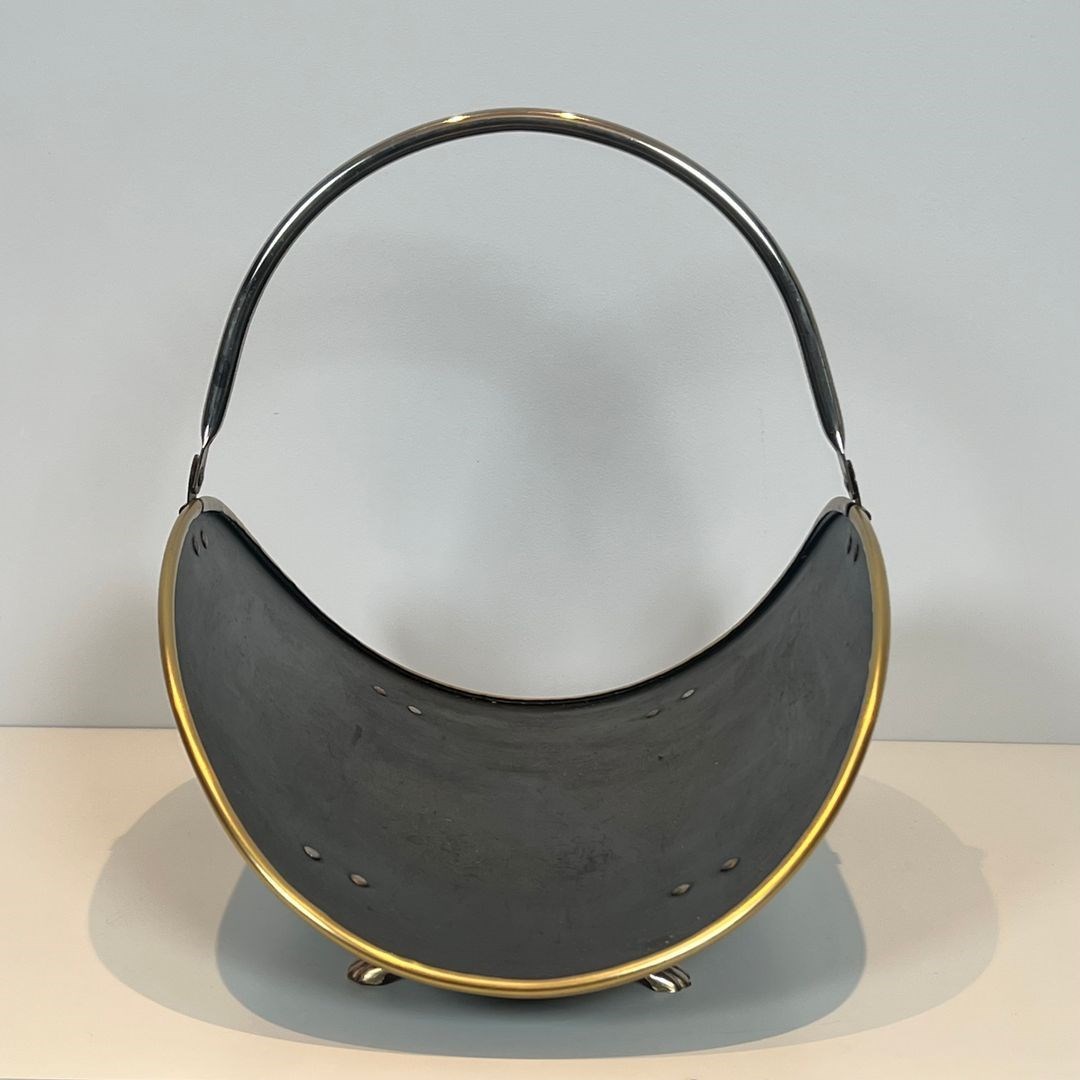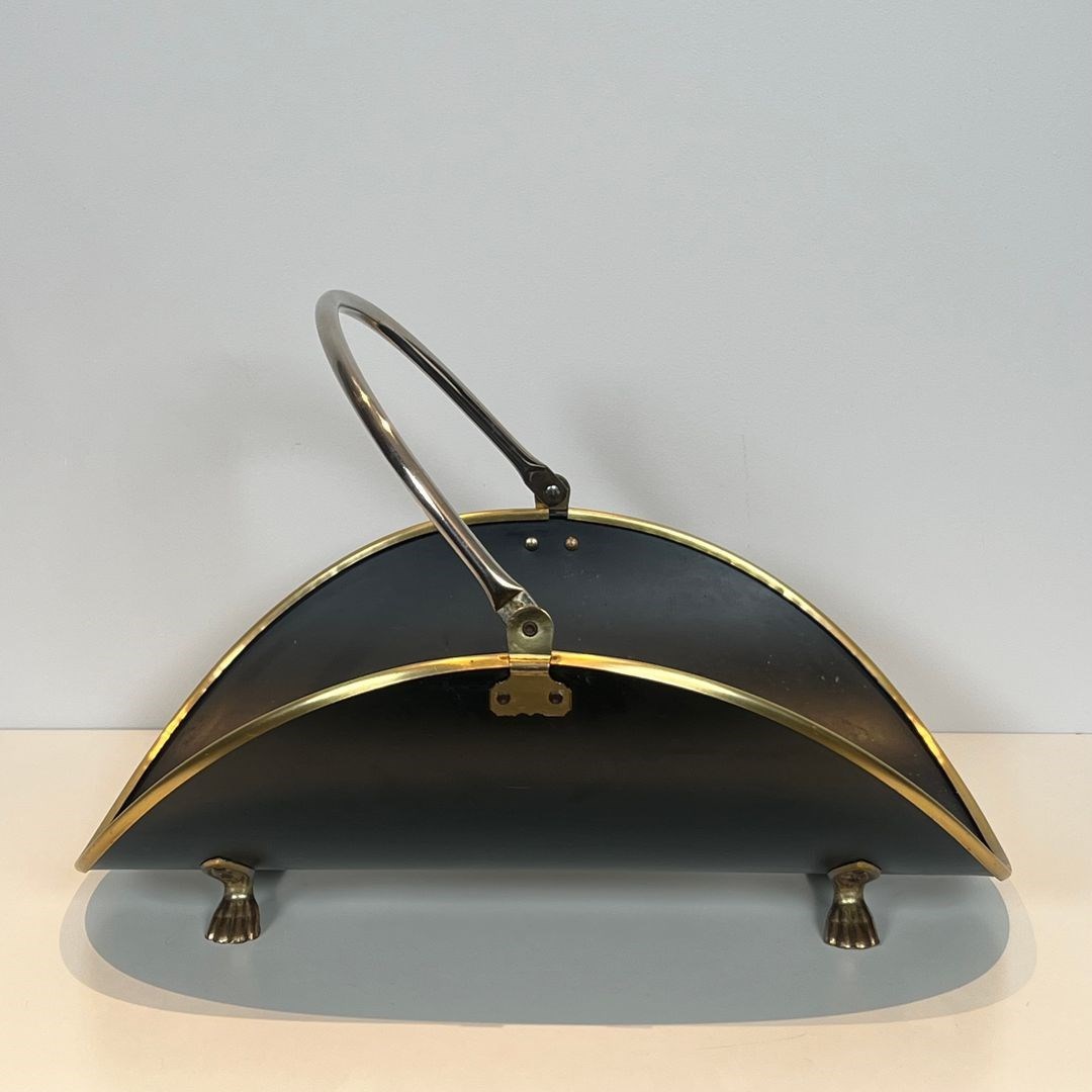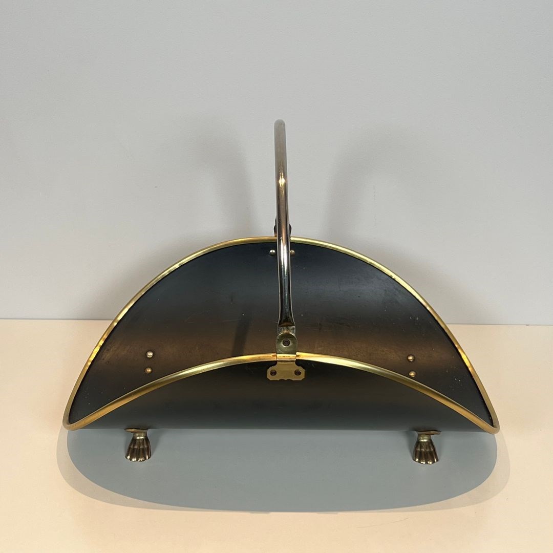 Neoclassical style black lacquered brass and brass log holder. French work. Circa 1970