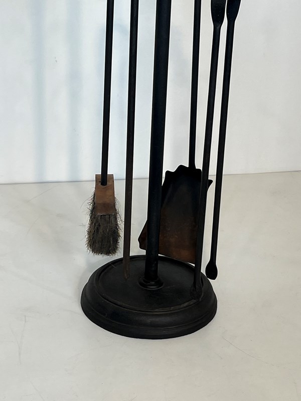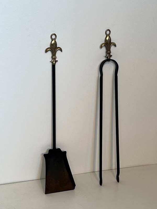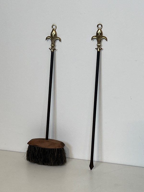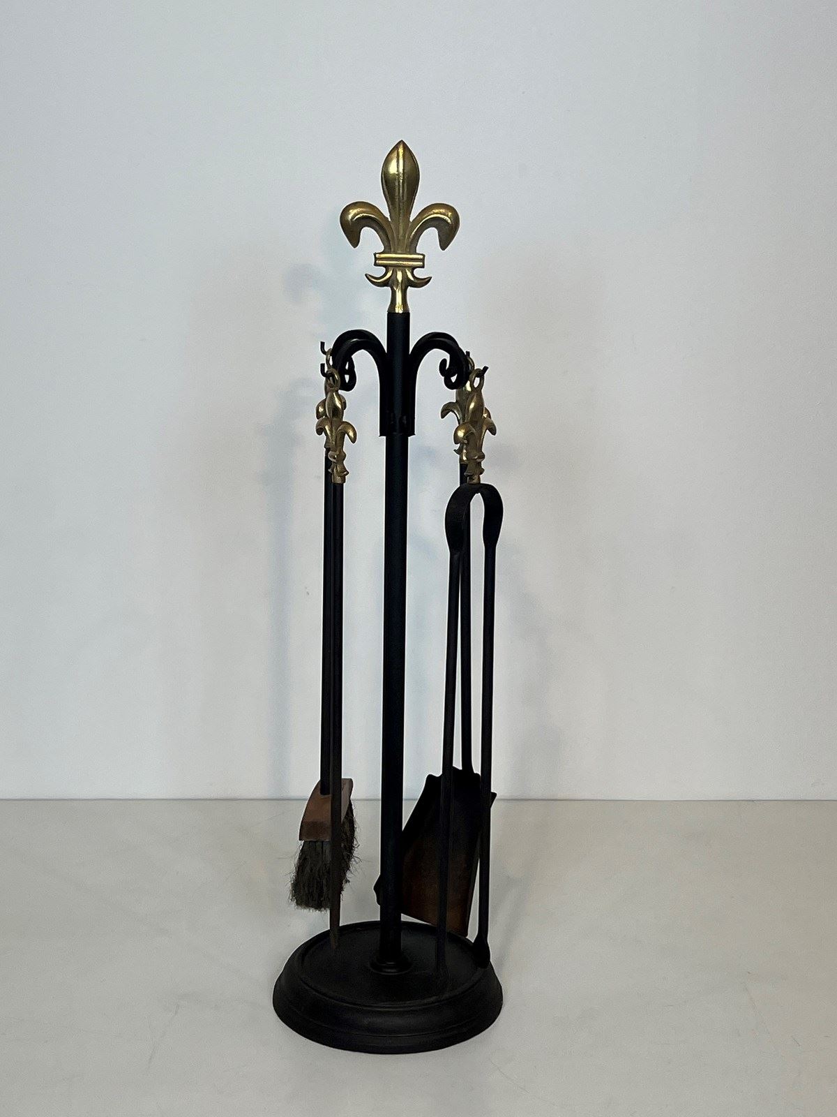 Neoclassical Style Black Lacquered Metal And Brass Fireplace Tools