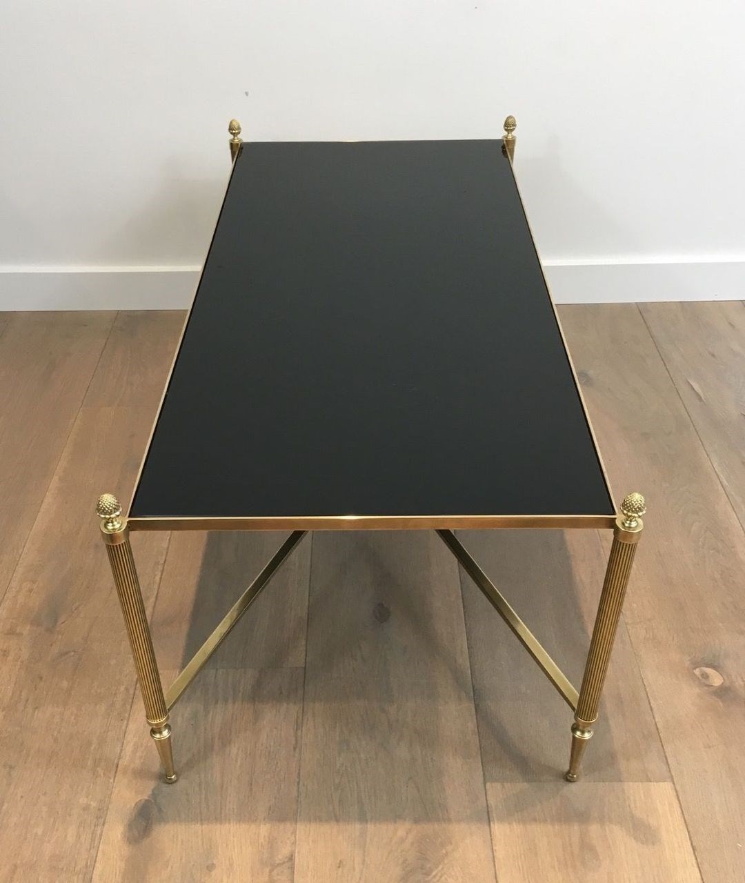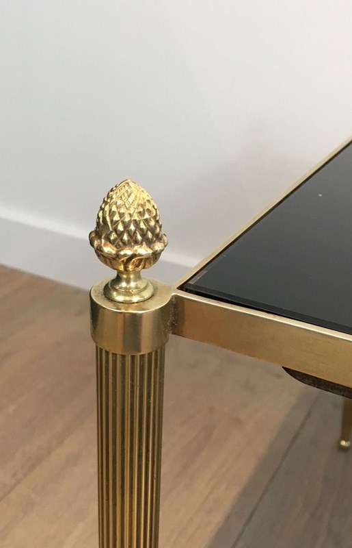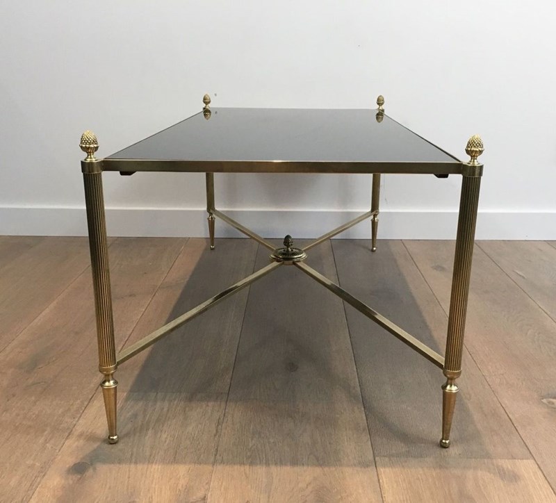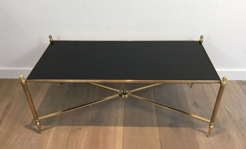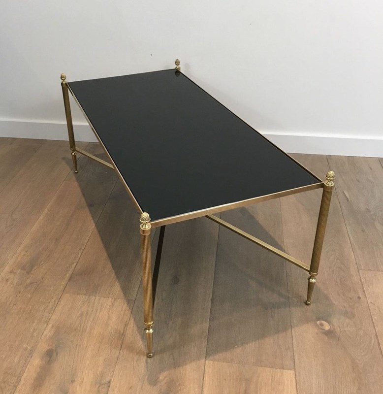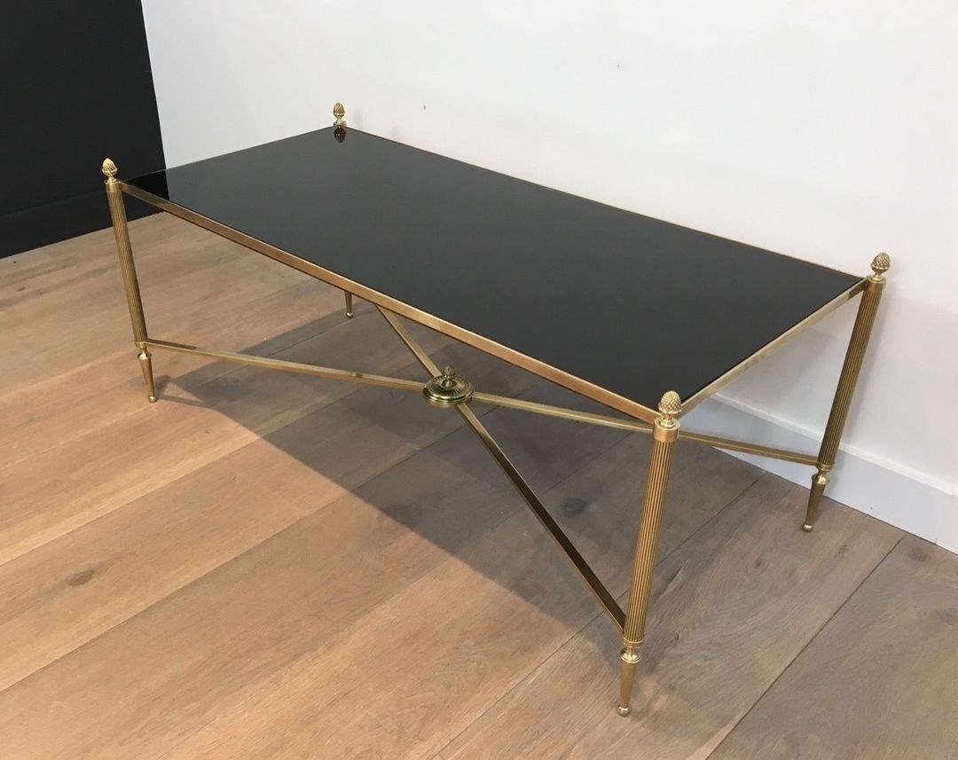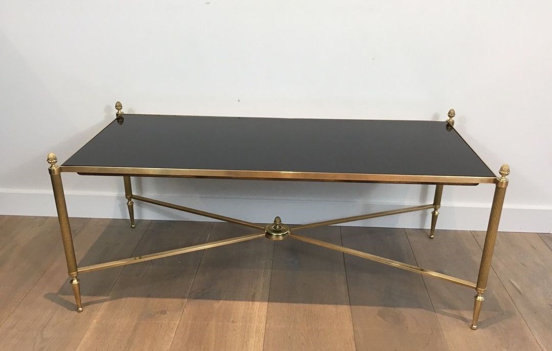 Neoclassical Style Brass Coffee Table With Black Lacquered Glass Top